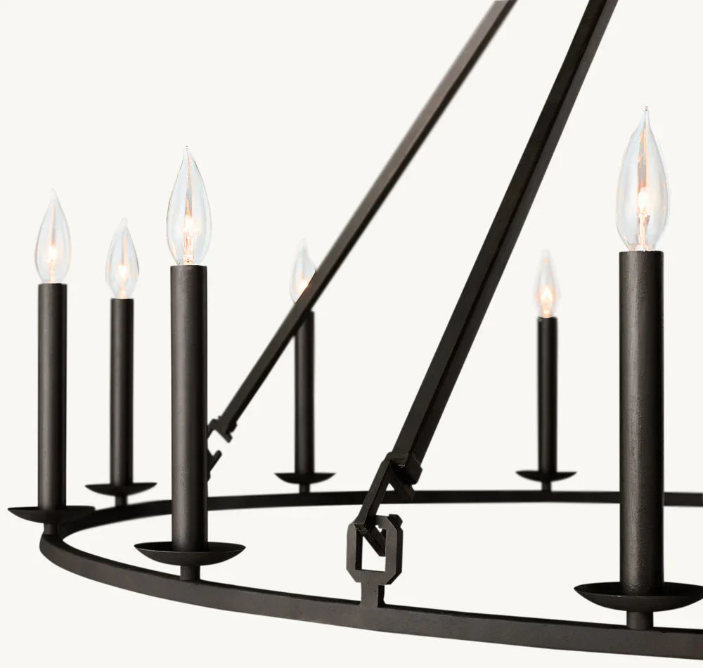 The forthright design of our lantern-style fixture reflects the functional architecture of 19th-century lighting. We've omitted the glass panes that once shielded the candle's flame to allow unobstructed illumination.