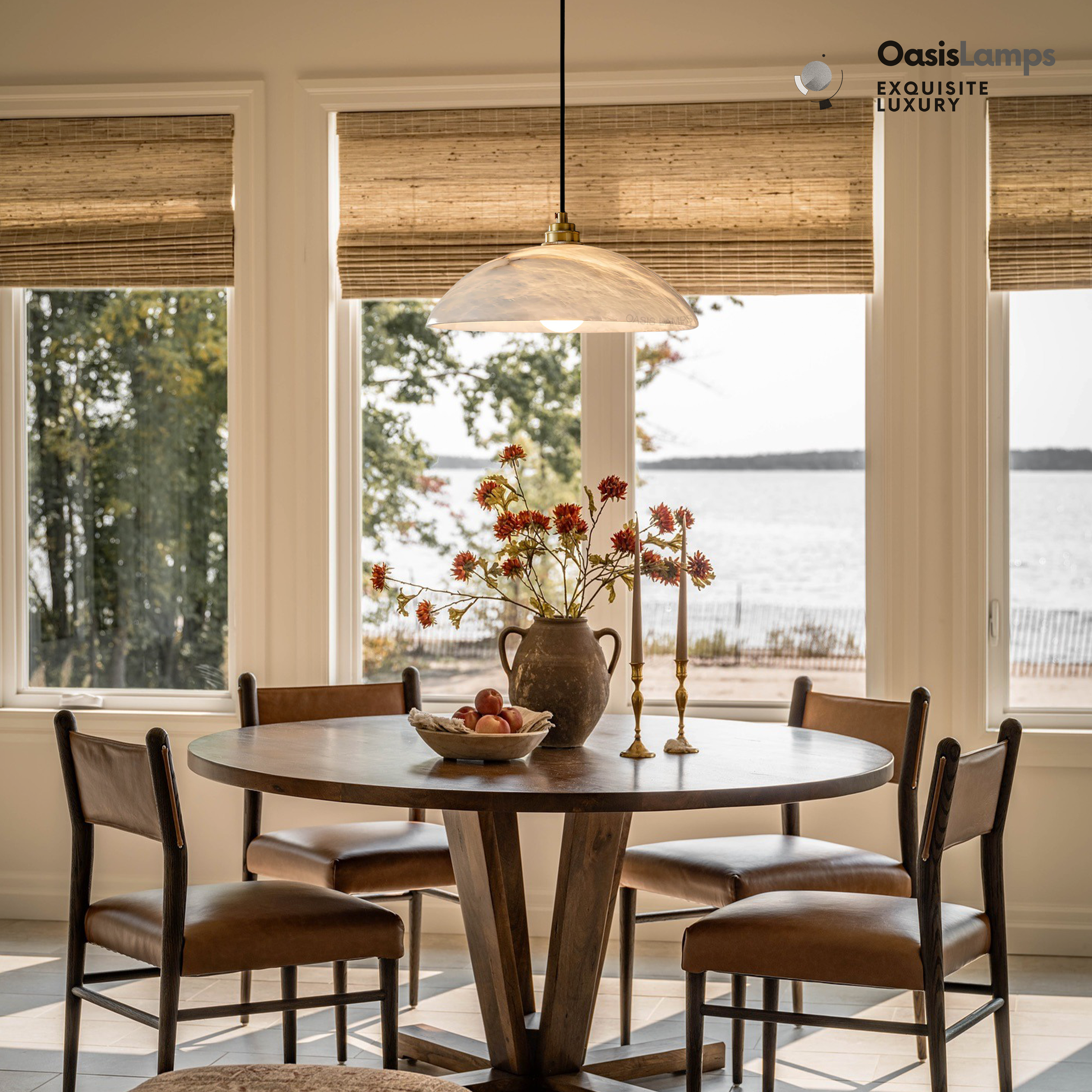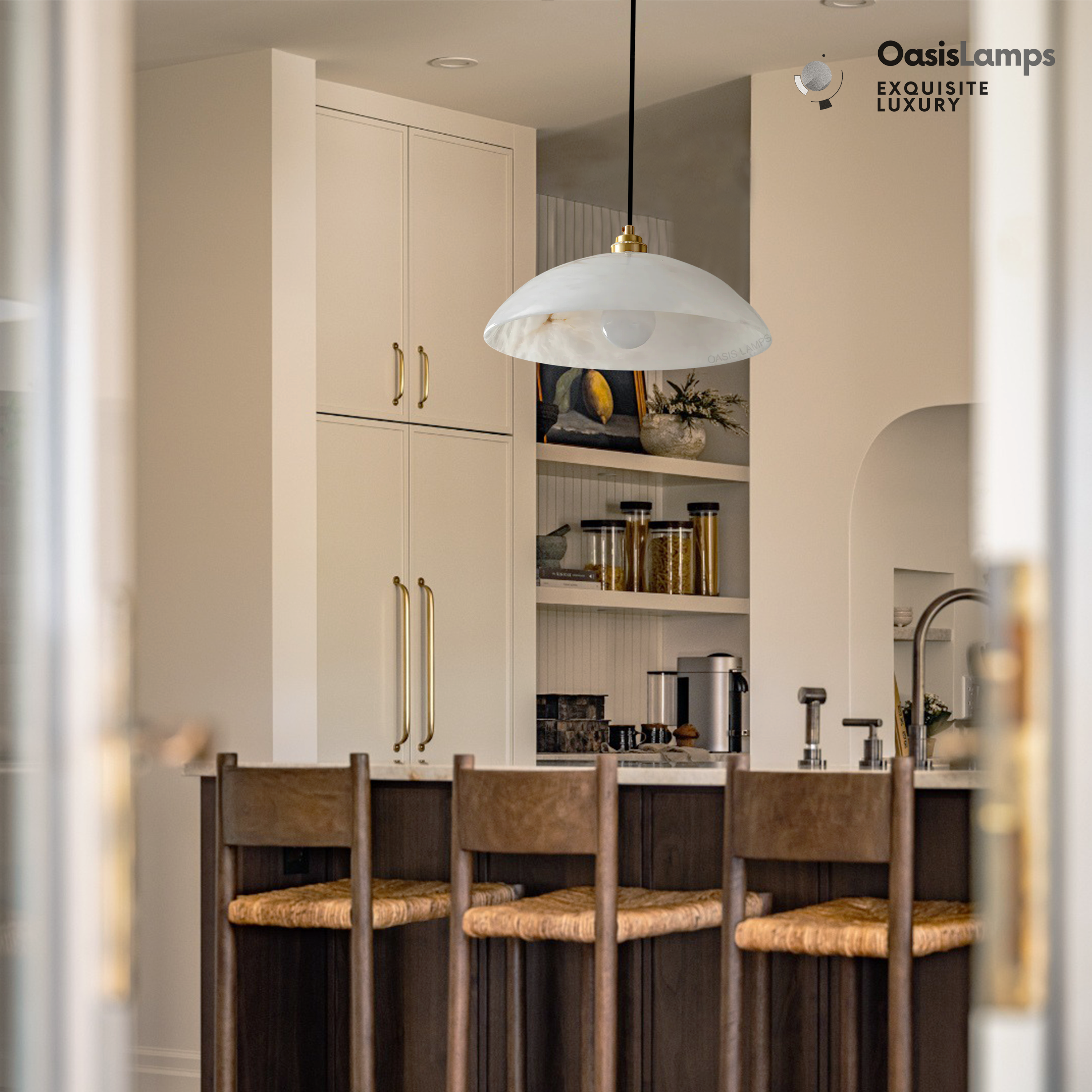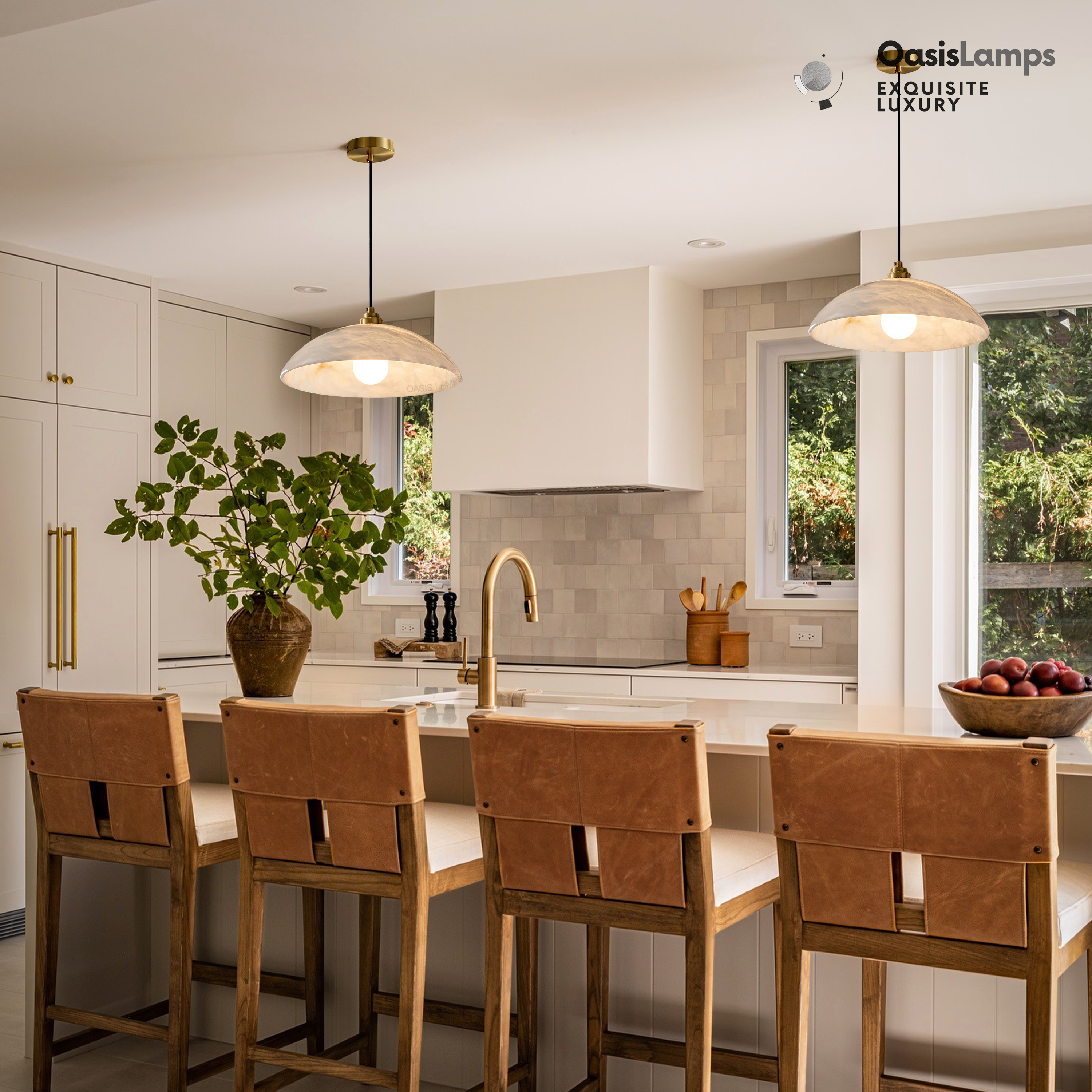 Alabaster Modern Art Pendant makes it a radiant focal point in your space. The alabaster shade is with the pearl like, and it can be combined with different quantity, pure and eye-catching.