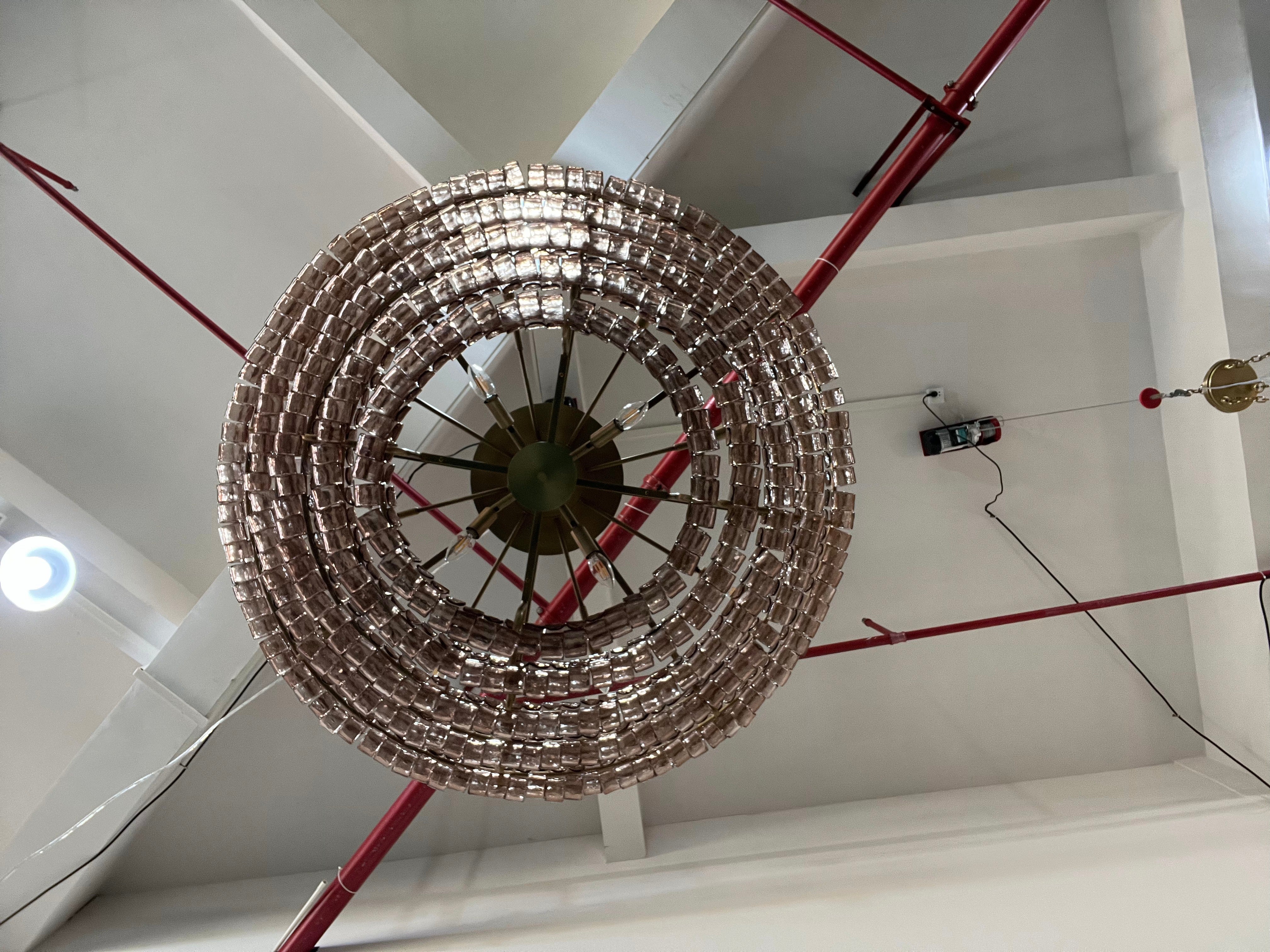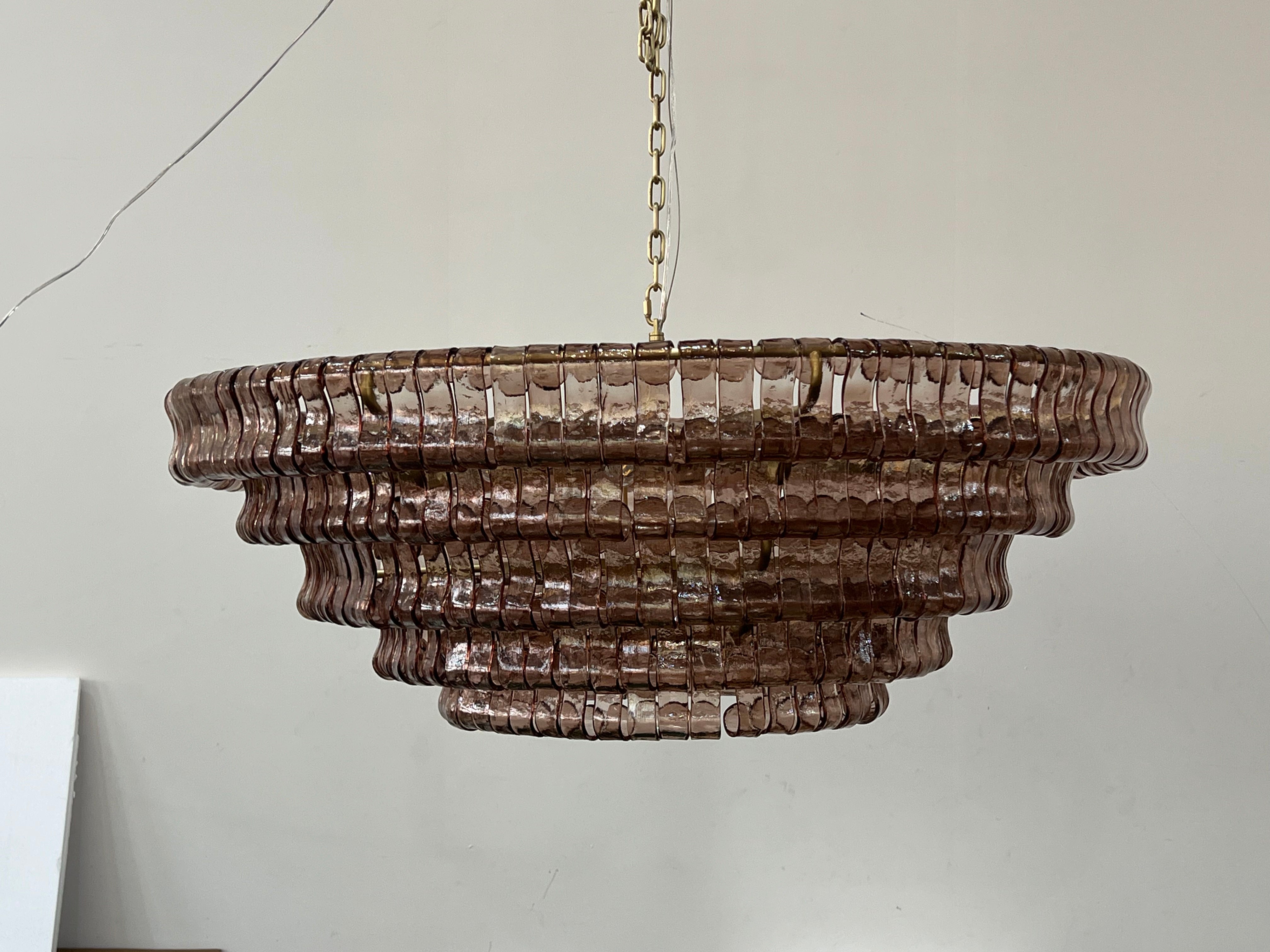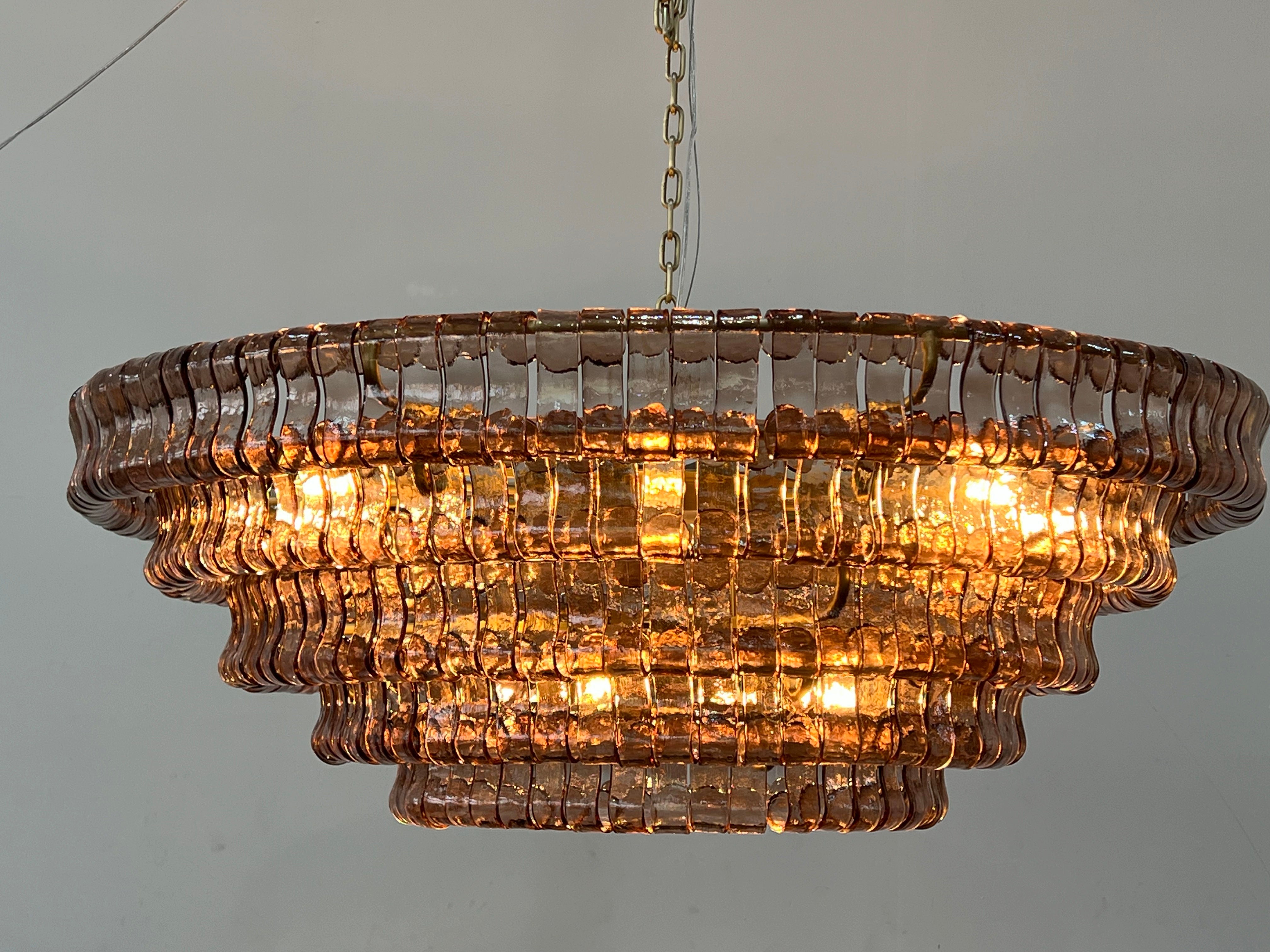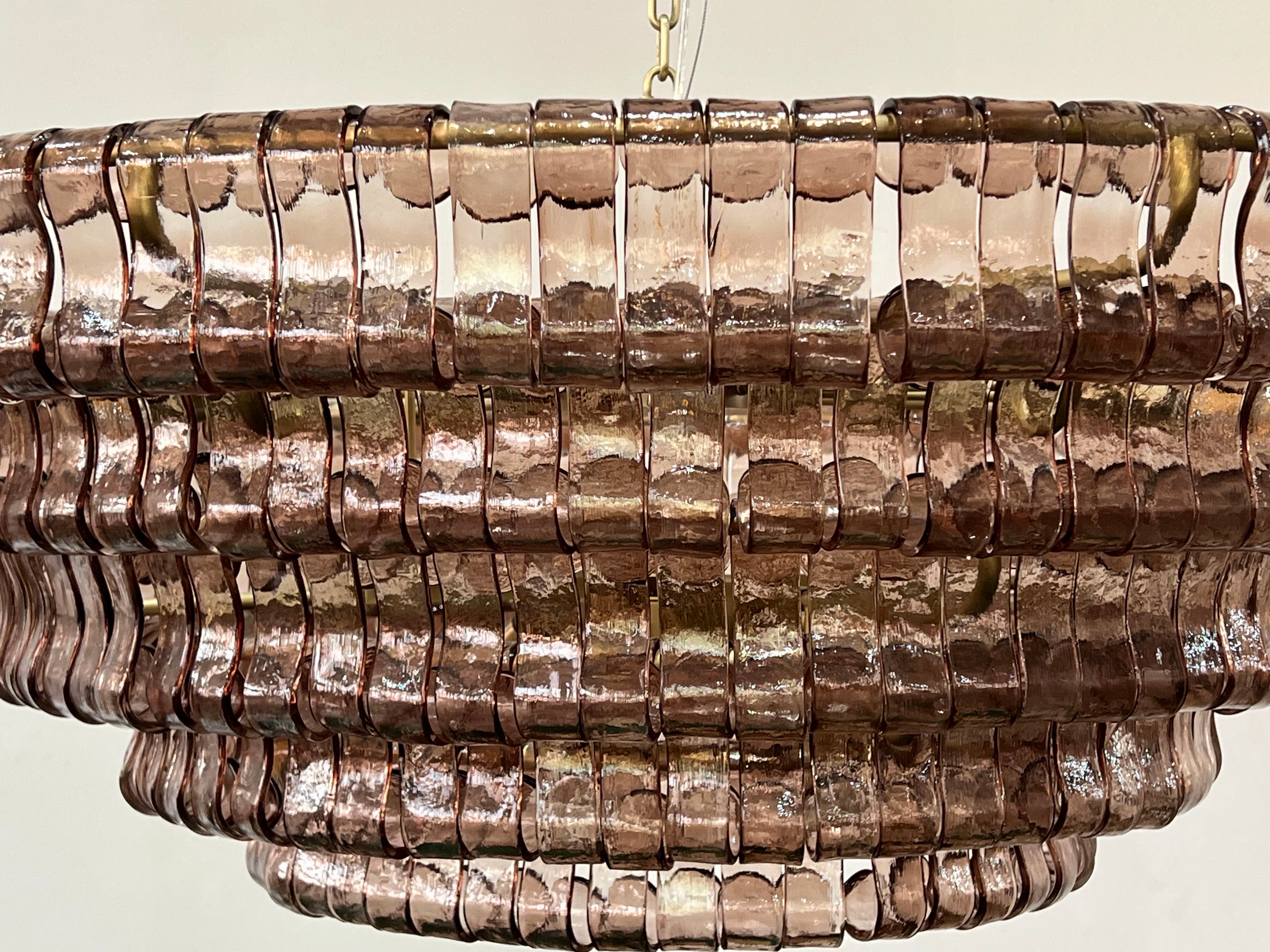 Inspired by famously adorned Italian glass, our Amir Chandelier artfully diffuses light through pieces of curved, textured glass. Complemented by a plated-brass finish, Amir elegantly illuminates any room.