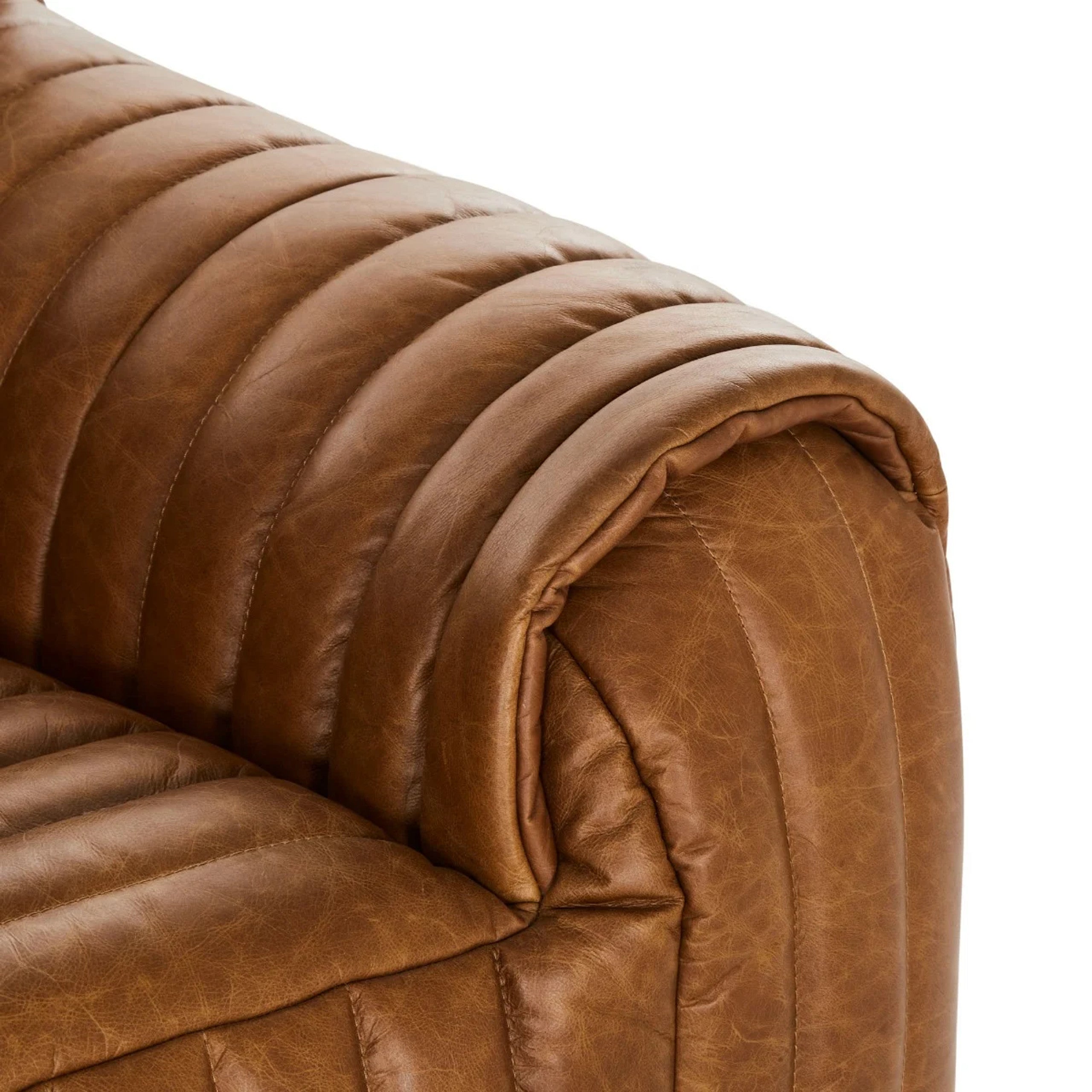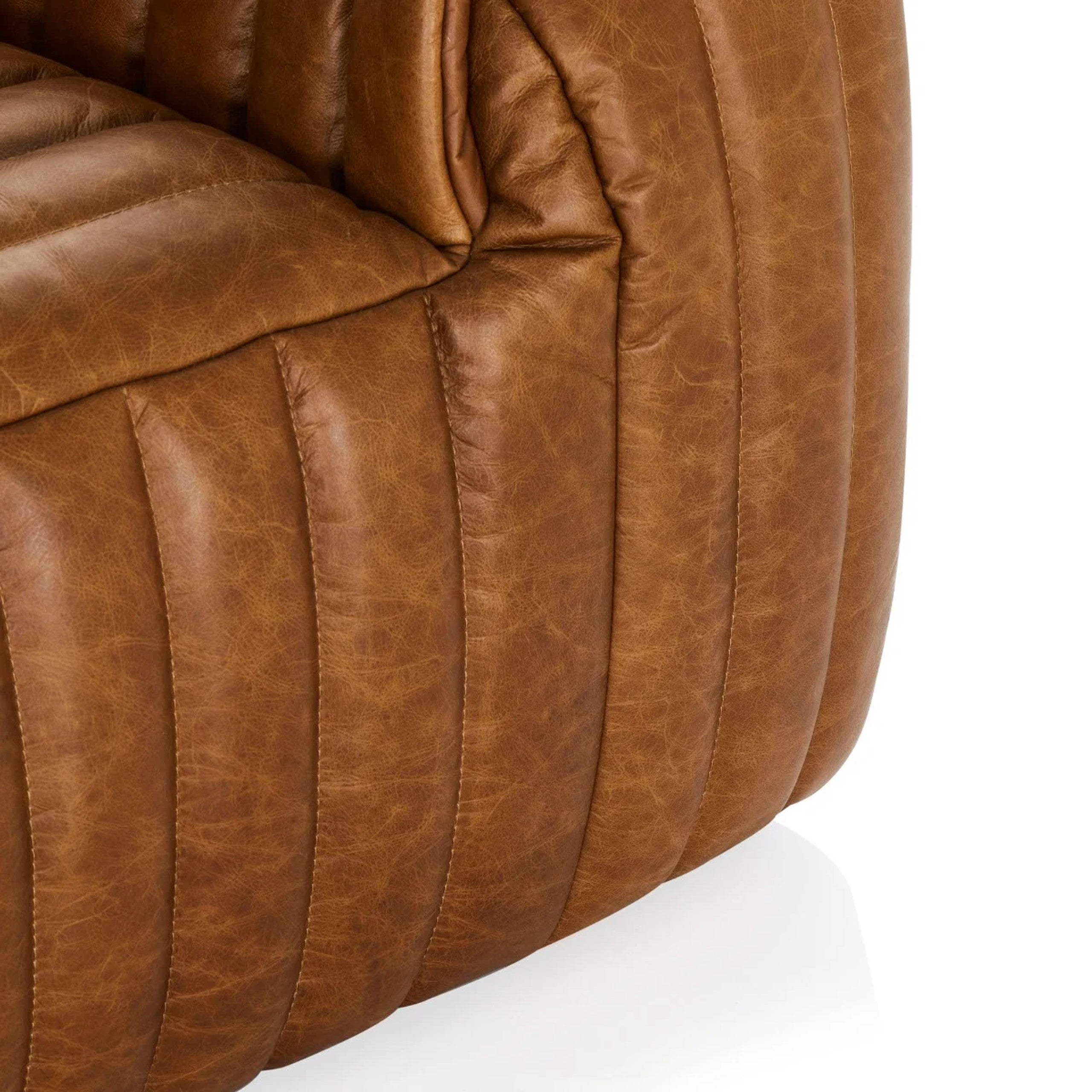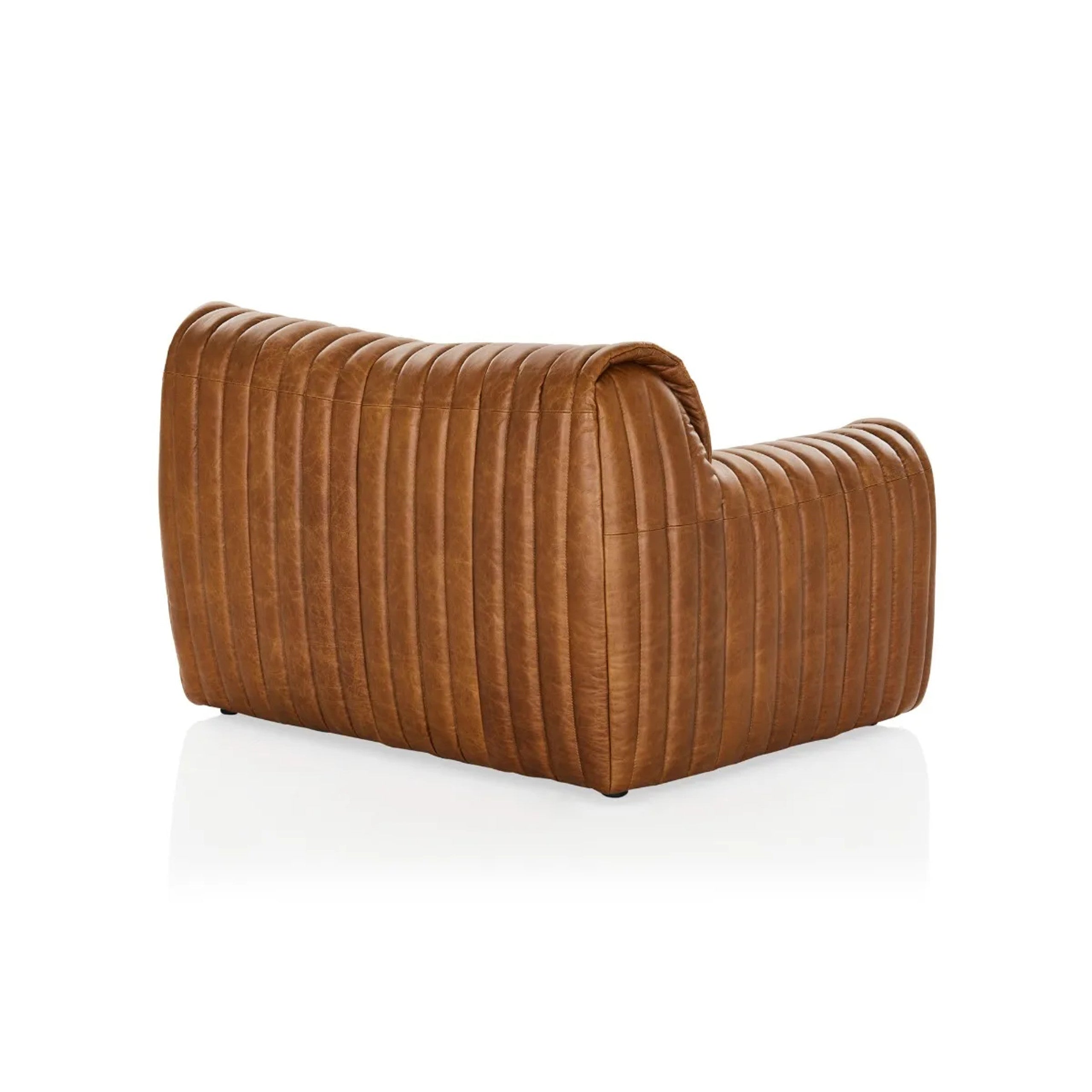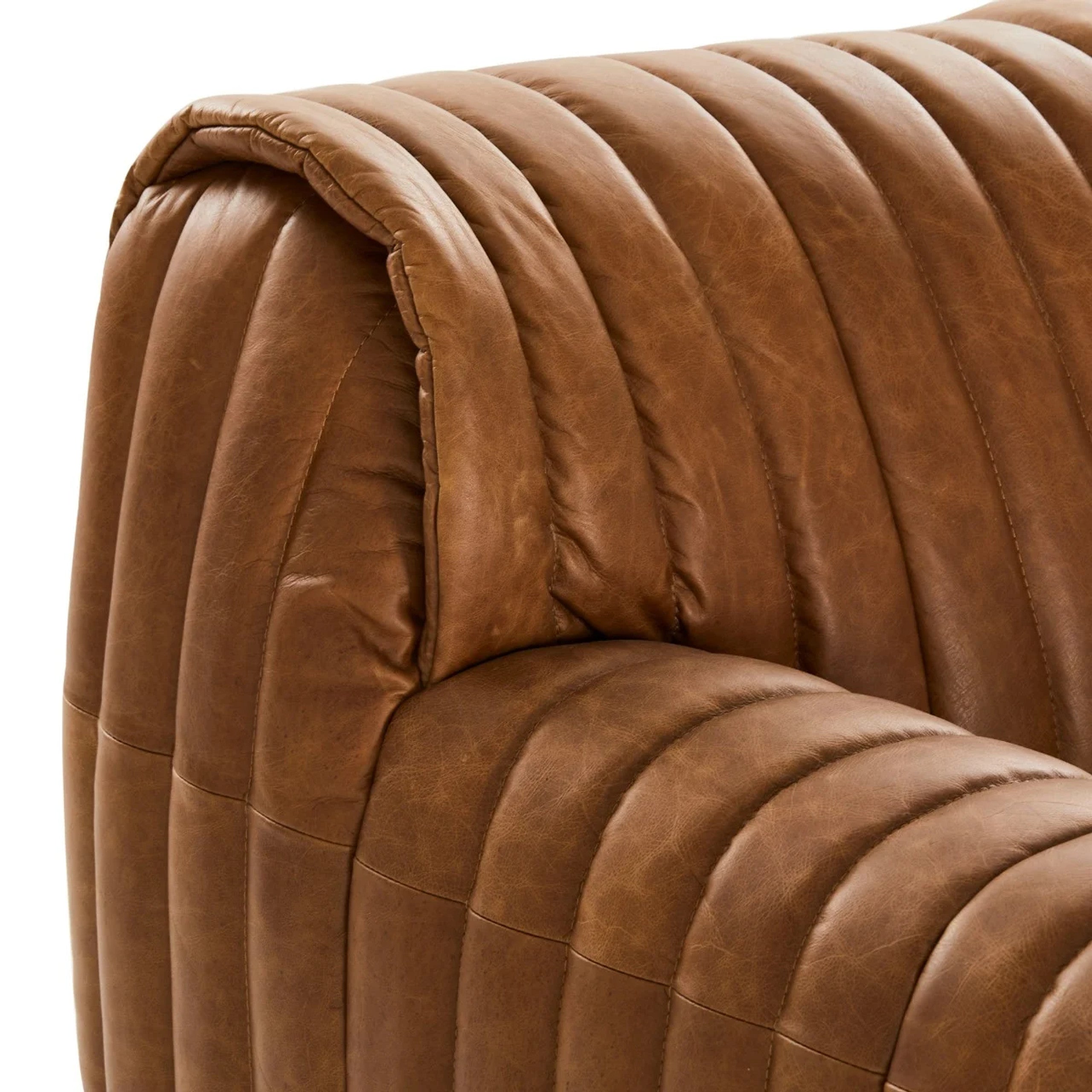 Vintage inspired channeled design in top grain leather.|The Aspen Channel Leather Occasional Chair is a vintage inspired design with a monolithic silhouette and narrow channel detailing. Tightly upholstered in top grain leather in either sleek black or classic tan leather. As comfortable as it is cool the Aspen Channel range is a contemporary take on a vintage 1970's vibe.
