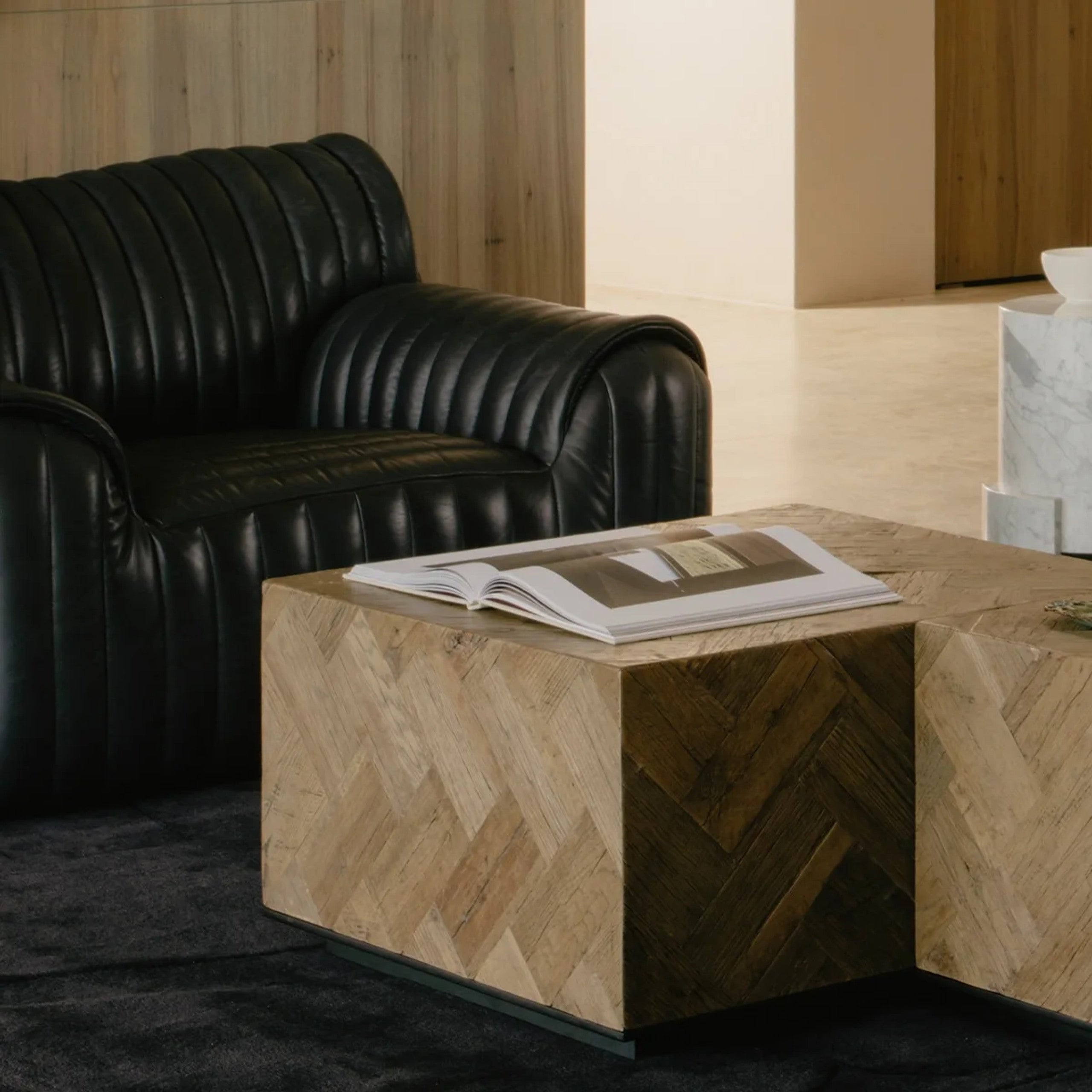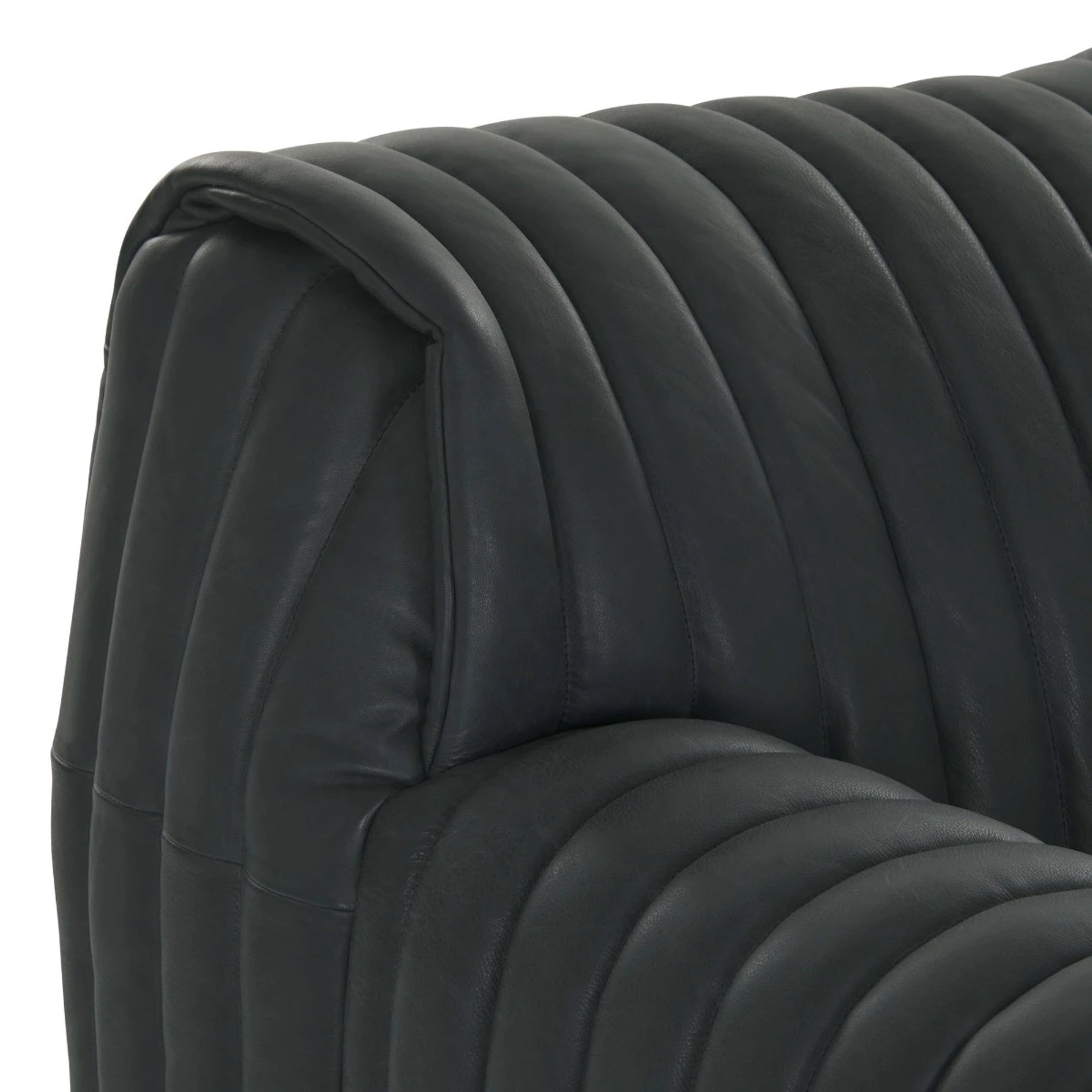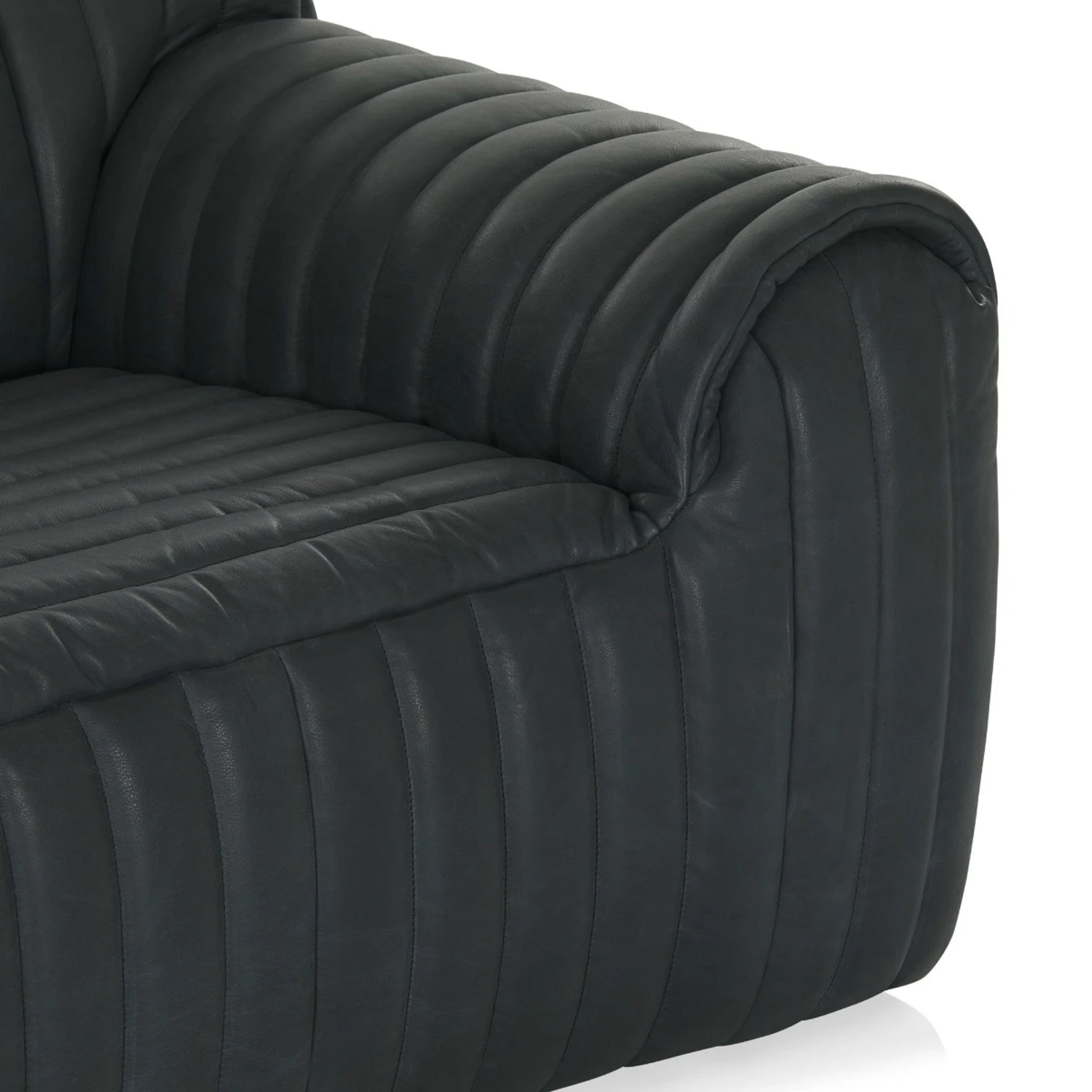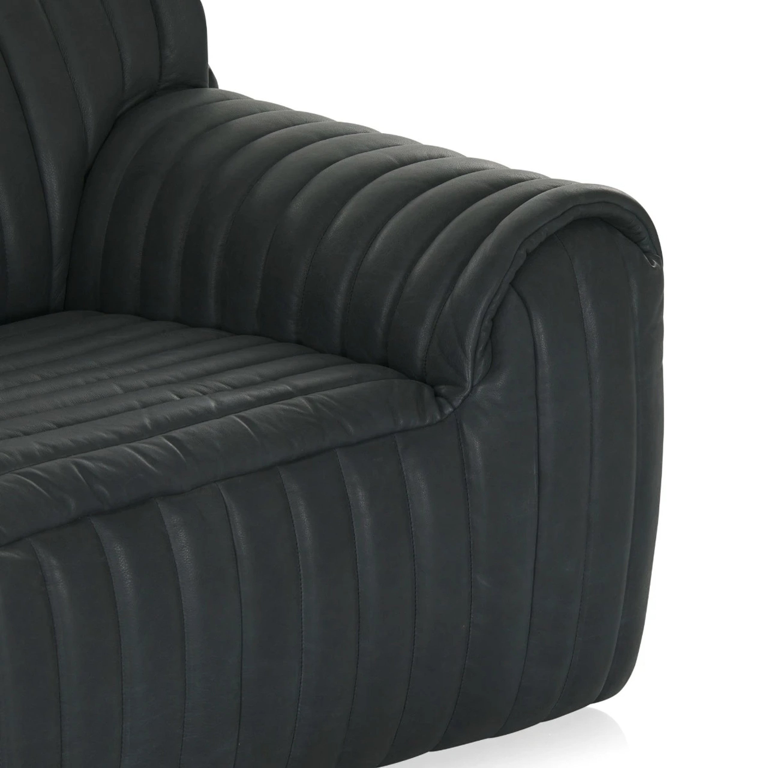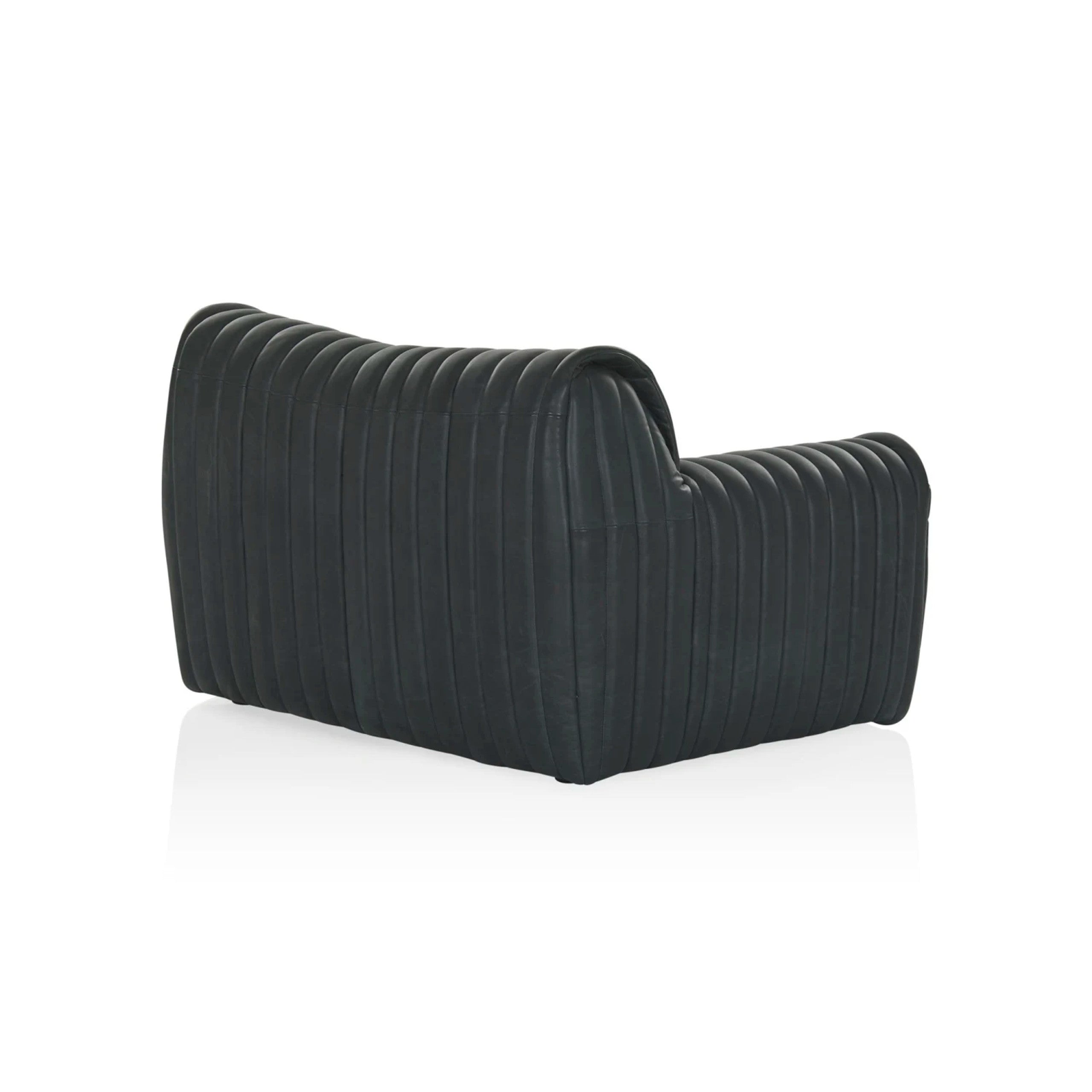 Vintage inspired channeled design in top grain leather.|The Aspen Channel Leather Occasional Chair is a vintage inspired design with a monolithic silhouette and narrow channel detailing. Tightly upholstered in top grain leather in either sleek black or classic tan leather. As comfortable as it is cool the Aspen Channel range is a contemporary take on a vintage 1970's vibe.