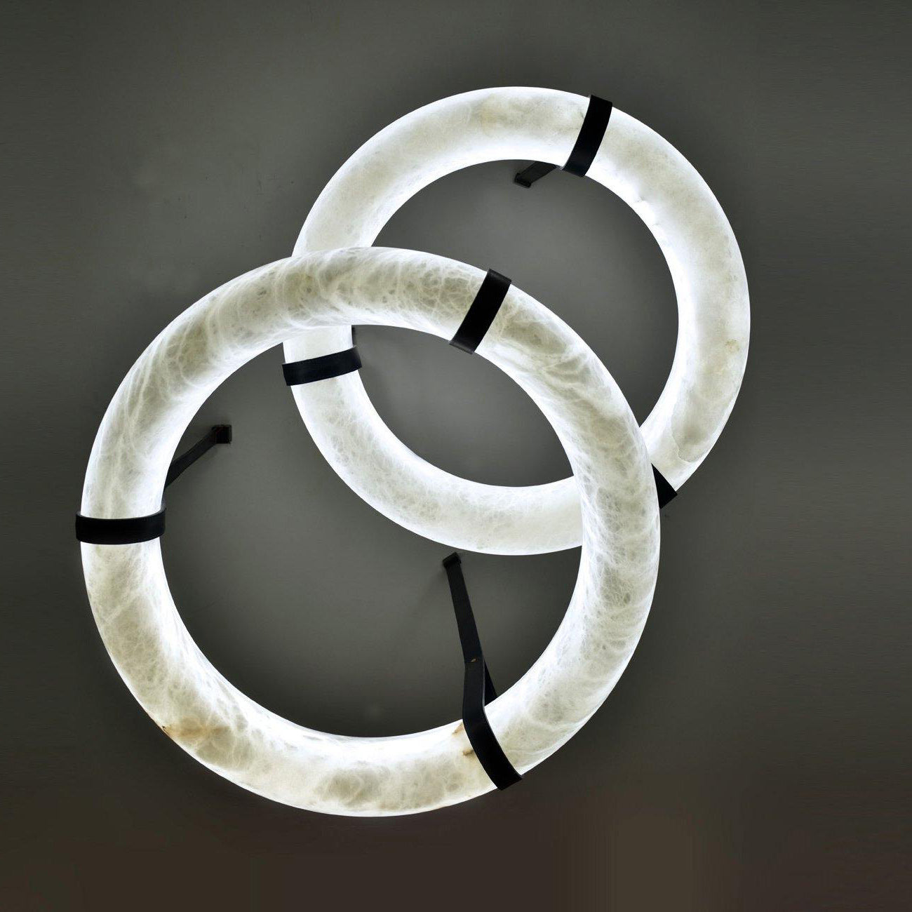 Expertly crafted, the Astrid Alabaster Halo Pendant Chandelier showcases exquisite alabaster shades that cast a warm and inviting glow, creating a serene ambiance in any room. The addition of a leather hook accent adds a touch of distinctive style and charm, elevating the chandelier's visual appeal.