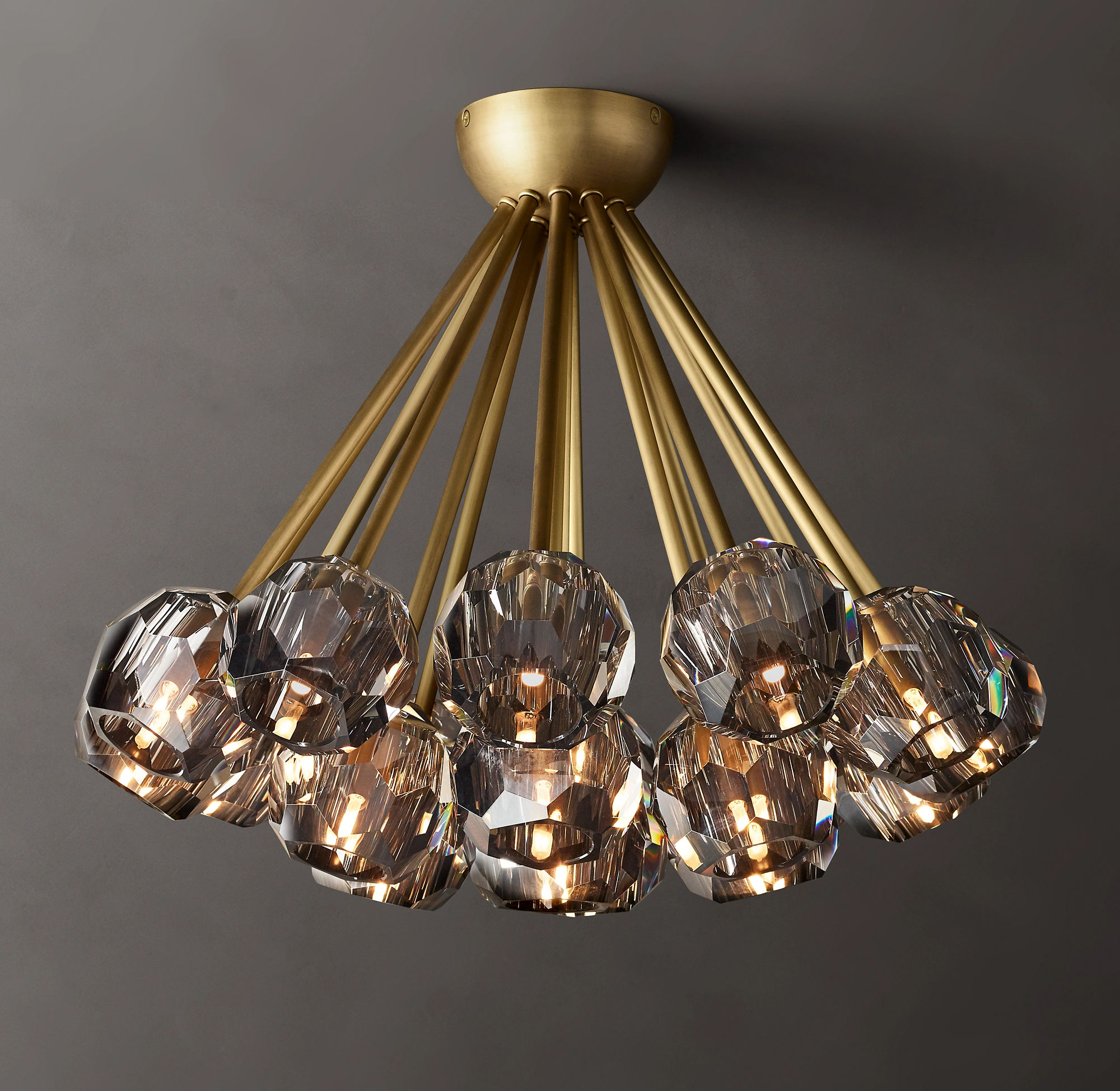 Each exquisite K9 crystal ball combines high-quality copper elements to show luxury. Each K9 crystal ball is carefully cut by workers with many years of manual experience. Ceilings and fittings are made of solid brass. The irregular cut surface of the crystal ball reflects a lot of warm light. It highlights the elegance and temperament of this chandelier.