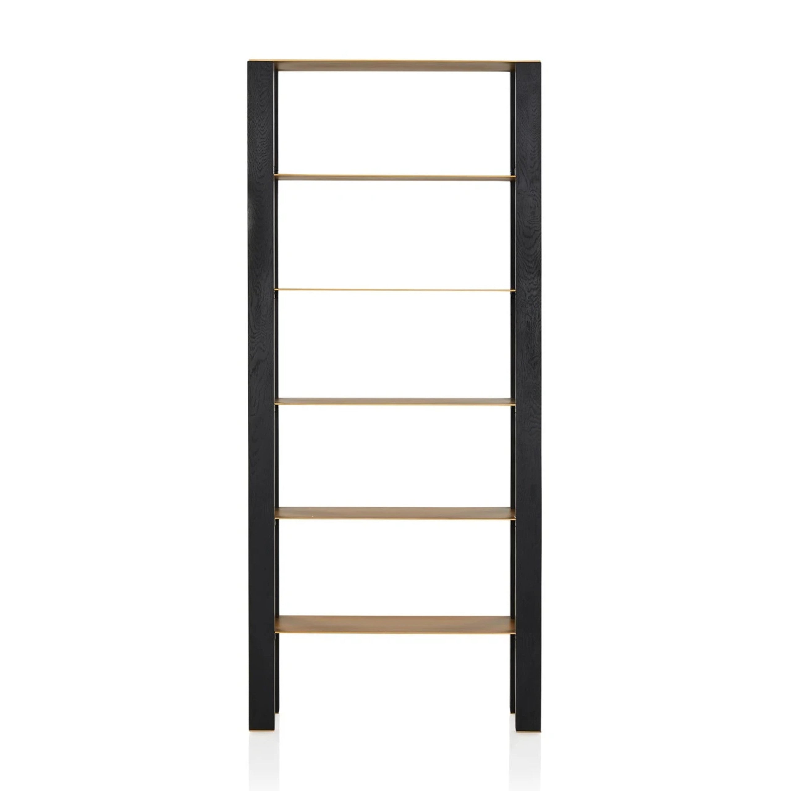 A bold geometric shelving unit featuring high contrast materials such as brass and brass painted steel.|Referencing artistic heritage with its high contrast materials of brushed brass and solid timber the Bleeker collection will make a statement in any contemporary setting. The Bleeker Shelving unit offers ample display possibilities for your living or study areas.