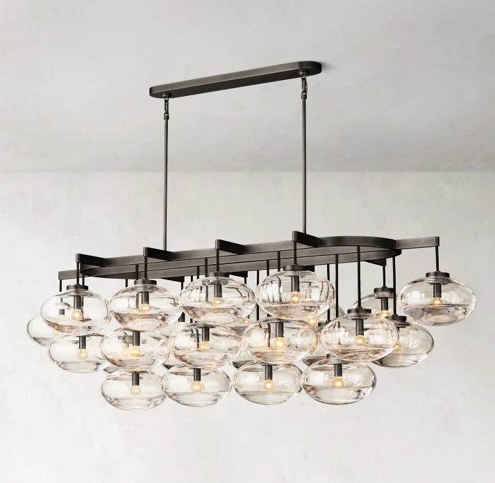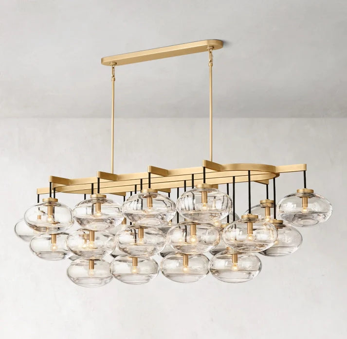 This exquisite linear chandelier features a stunning design with clear glass accents, adding a touch of elegance and refinement to any space. At 72 inches, it provides ample lighting and creates a luxurious ambiance. Perfect for adding a touch of sophistication to your home decor.