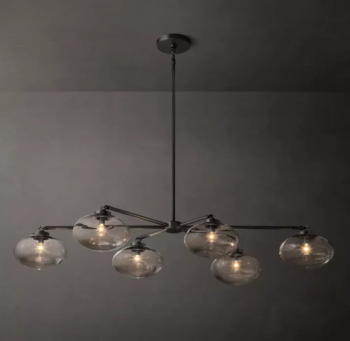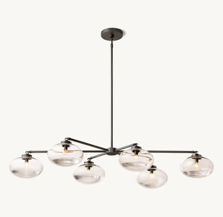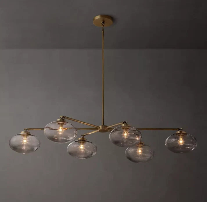 Introducing the Cabrette Clear Glass Mobile Linear Chandelier, elevate your home with this luxurious and sophisticated piece. Crafted with stunning clear glass, its 60" 72" size creates a dramatic and exclusive atmosphere. Add a touch of elegance and style to any room with this exquisite chandelier.