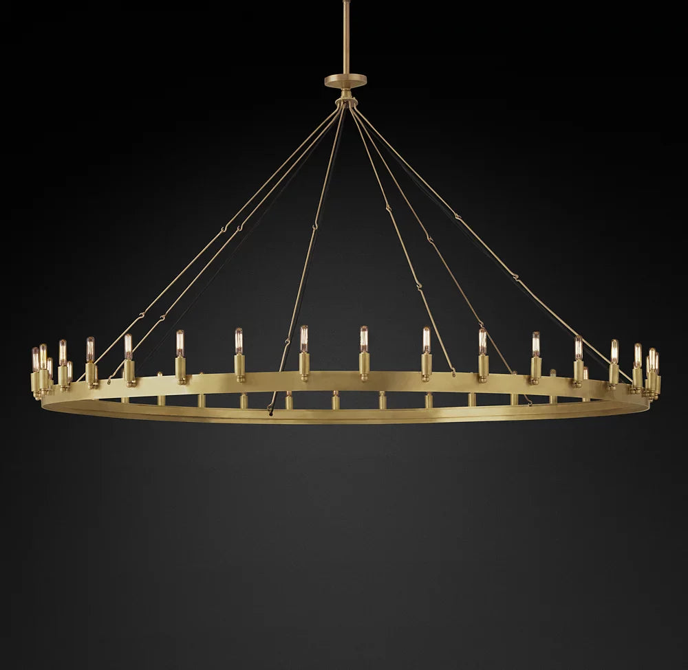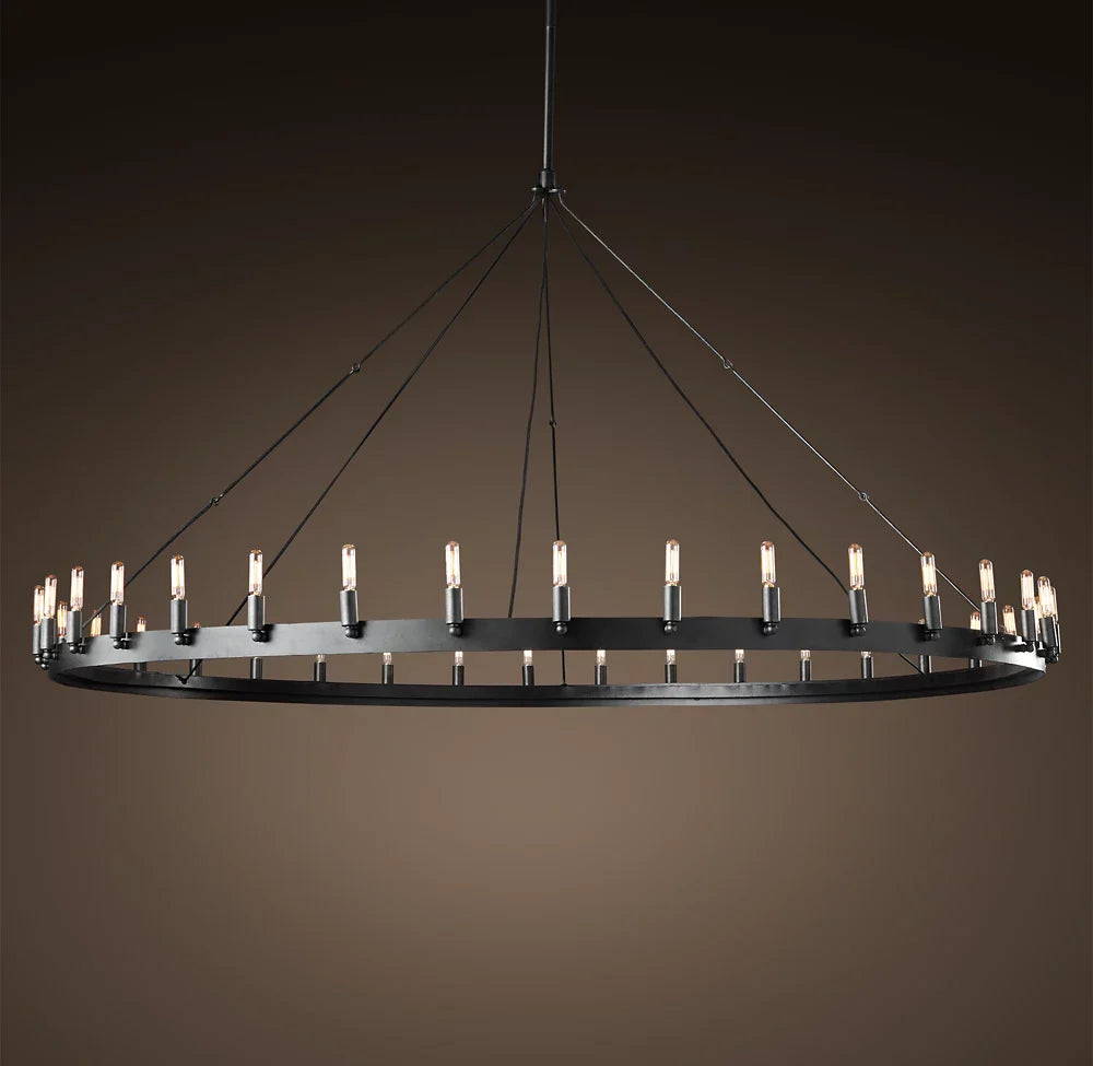 Rustic in style, simple in form and grand in size, this is an elegant statement. It draws inspiration from early 20th century industrial fixtures and is made of sturdy angle iron.