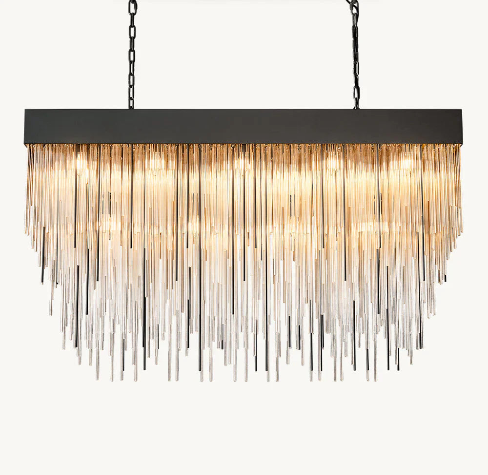 Indulge in opulence with our CASCADA RECTANGULAR CHANDELIER. Elegantly designed and expertly crafted in a 54" size, this chandelier will add a touch of sophistication and luxury to any space. With its cascading design, it will illuminate your room with a stunning display of light and style. Upgrade your home with this exclusive piece.