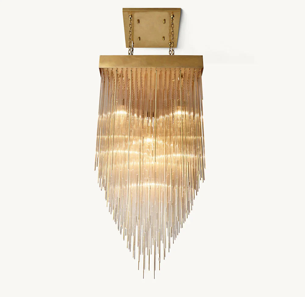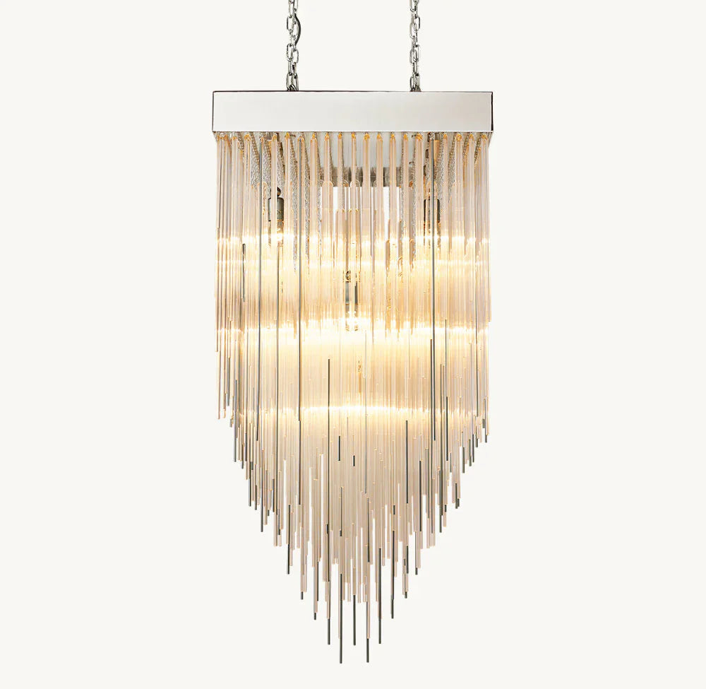 Illuminate your space with the sophisticated CASCADA SQUARE CHANDELIER 30". Its clean lines and modern design exude luxury, creating a tasteful and exclusive atmosphere. The cascading crystal squares add an artistic touch, making this chandelier a statement piece in any room.