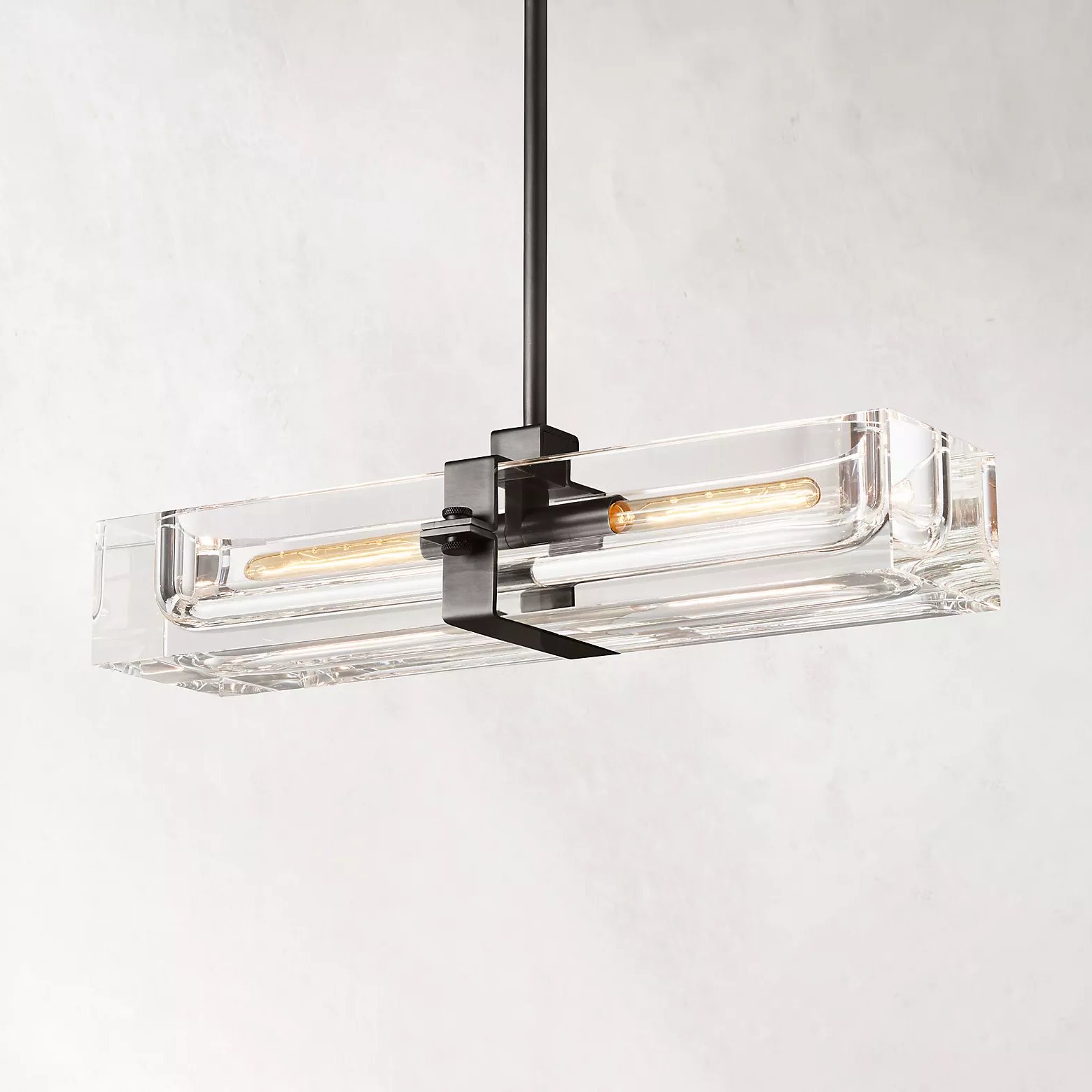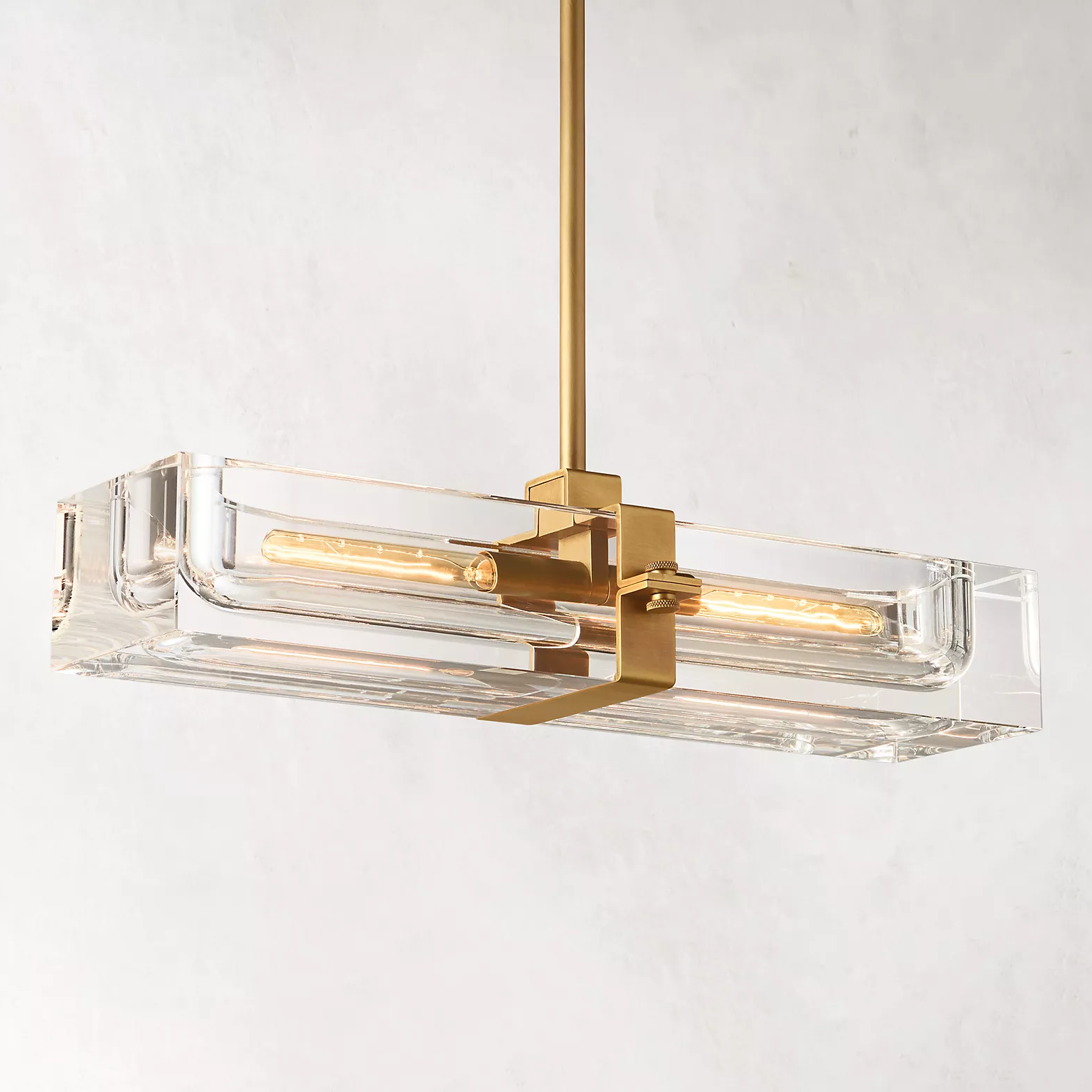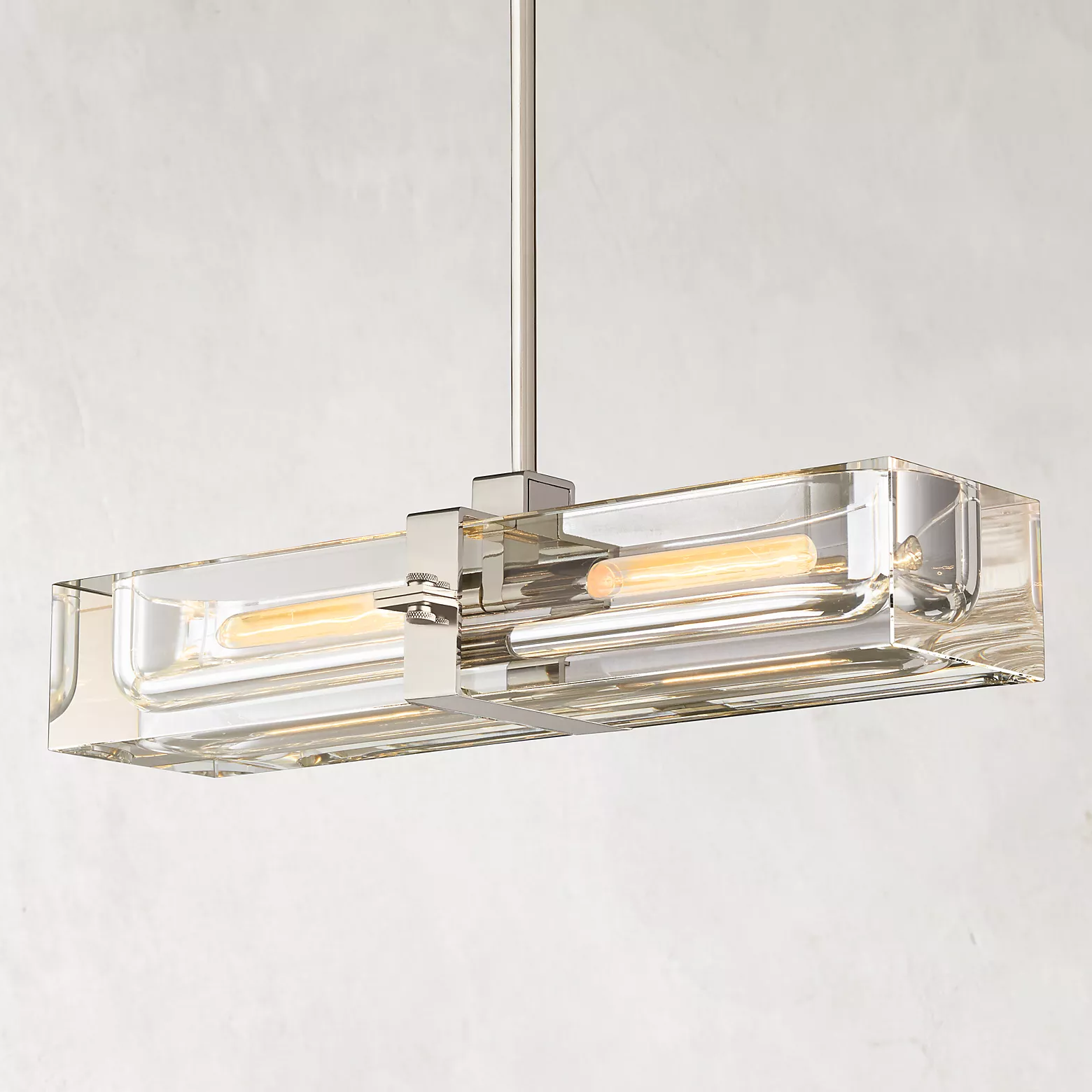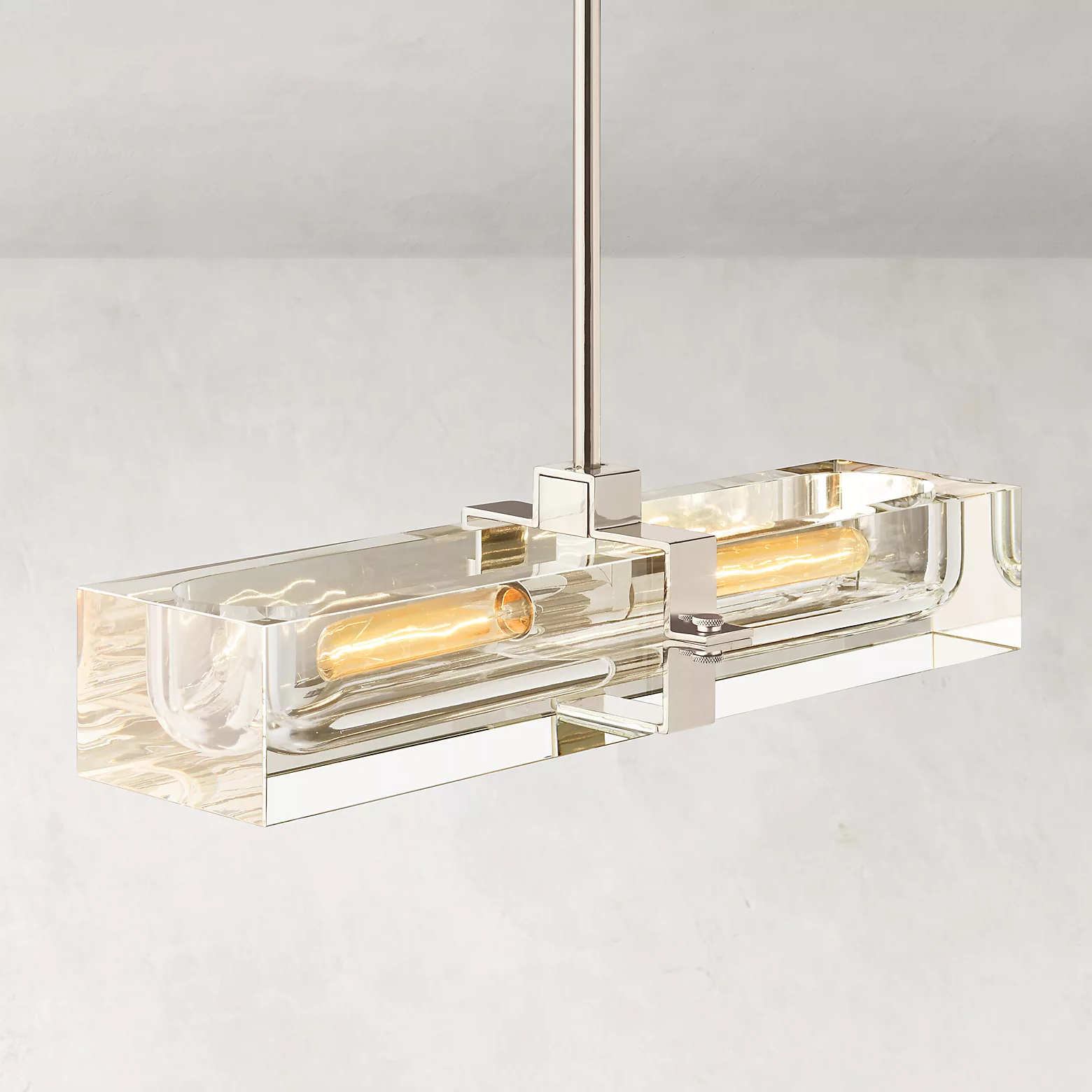A massive piece of crystal is carved into a recessed channel to accommodate an Edison bulb set in a solid brass frame. The crystal shows its solidity when illuminated, refracting and reflecting the light bulb inside, yet exhibiting a weightless transparency in the dark.