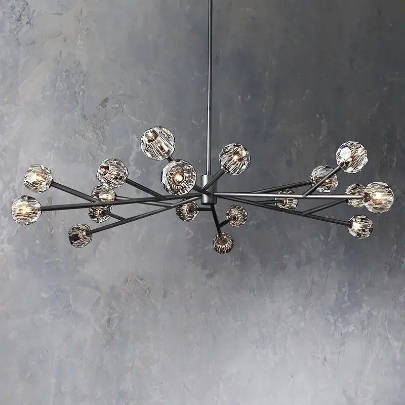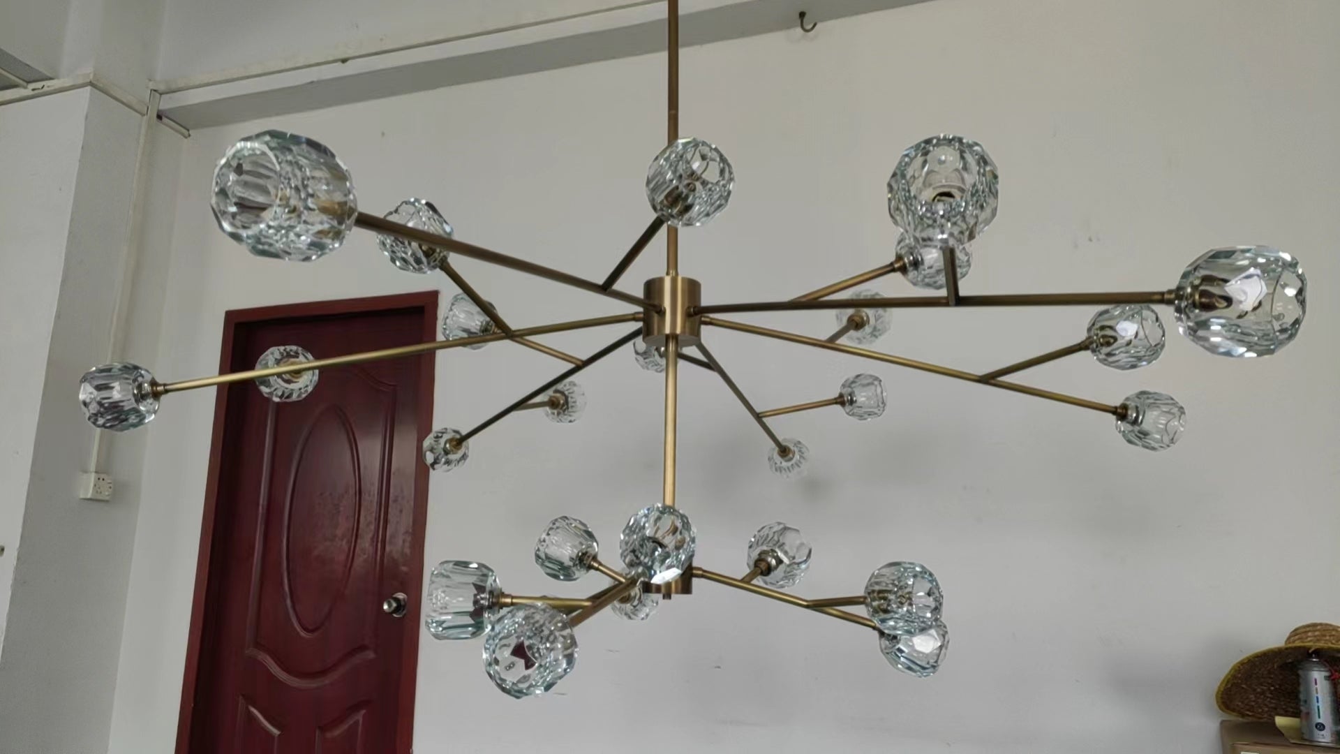 Each exquisite K9 crystal ball combines high-quality copper elements to show luxury. Each K9 crystal ball is carefully cut by workers with many years of manual experience. Ceilings and fittings are made of solid brass. The irregular cut surface of the crystal ball reflects a lot of warm light. It highlights the elegance and temperament of this chandelier.