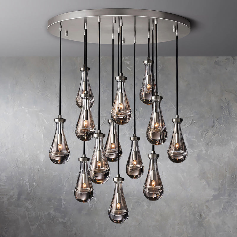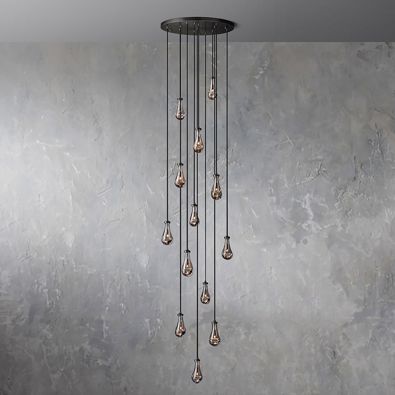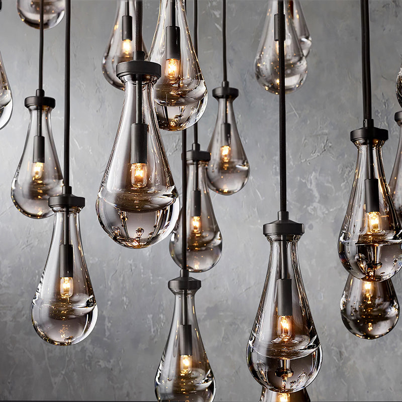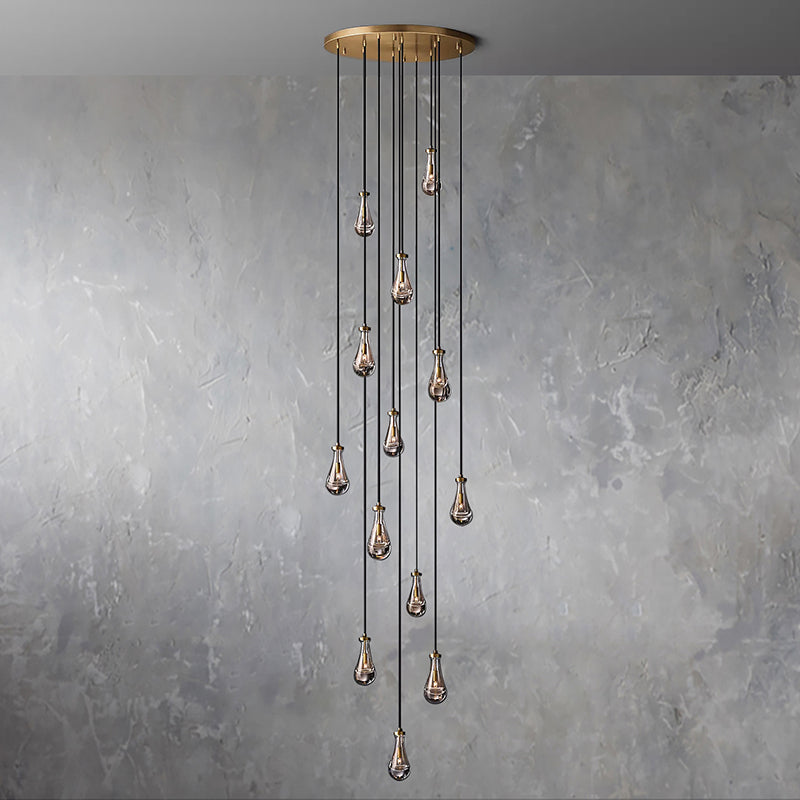 Each exquisite raindrop glass pendant combines high-quality copper elements to show luxury. Each raindrop pendant is carefully blown by workers with many years of manual experience. Ceilings, ceilings and fittings are made of solid brass. The transparent raindrop pendant reflects the warm light. It highlights the elegance and temperament of this chandelier.