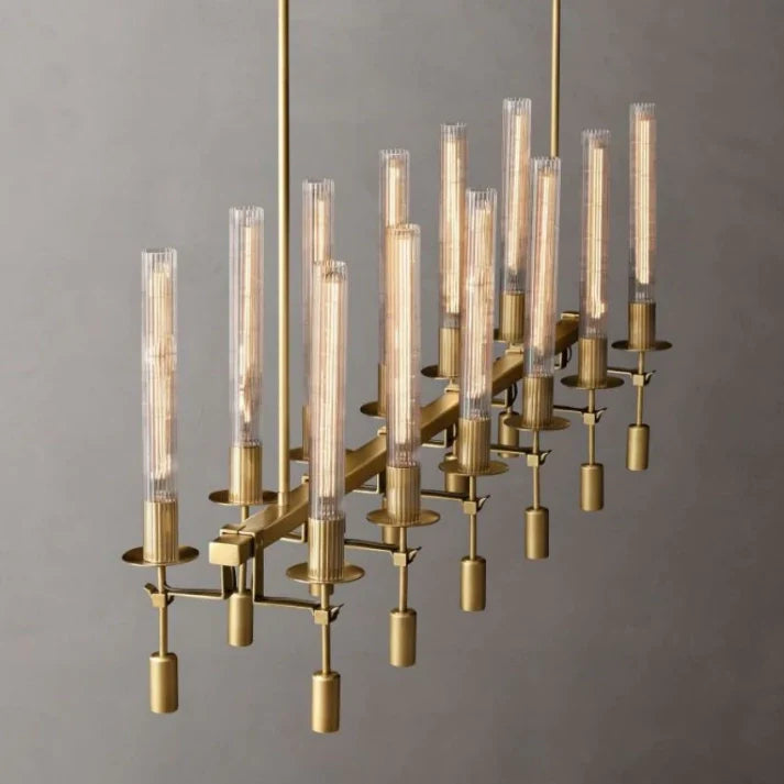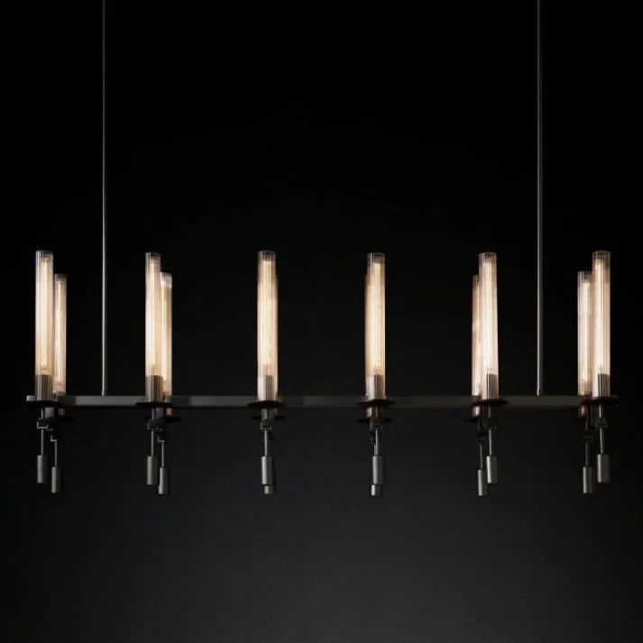 Illuminate your space with the luxurious and sophisticated Fontanellee Linear Chandelier. Measuring at an impressive 54", this chandelier will add an elegant touch to any room. Its sleek design and high-quality materials make it a timeless addition to your home, perfect for those with a taste for exclusivity.