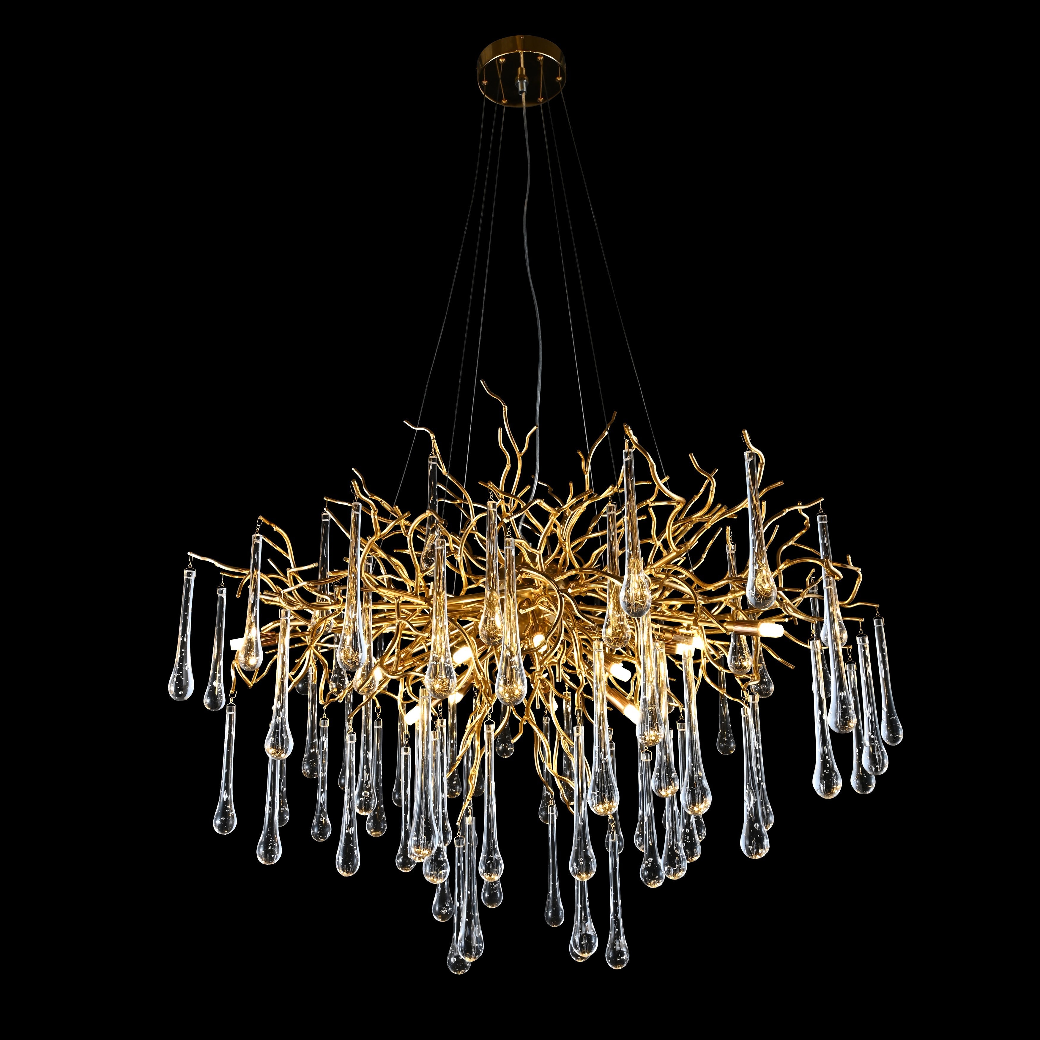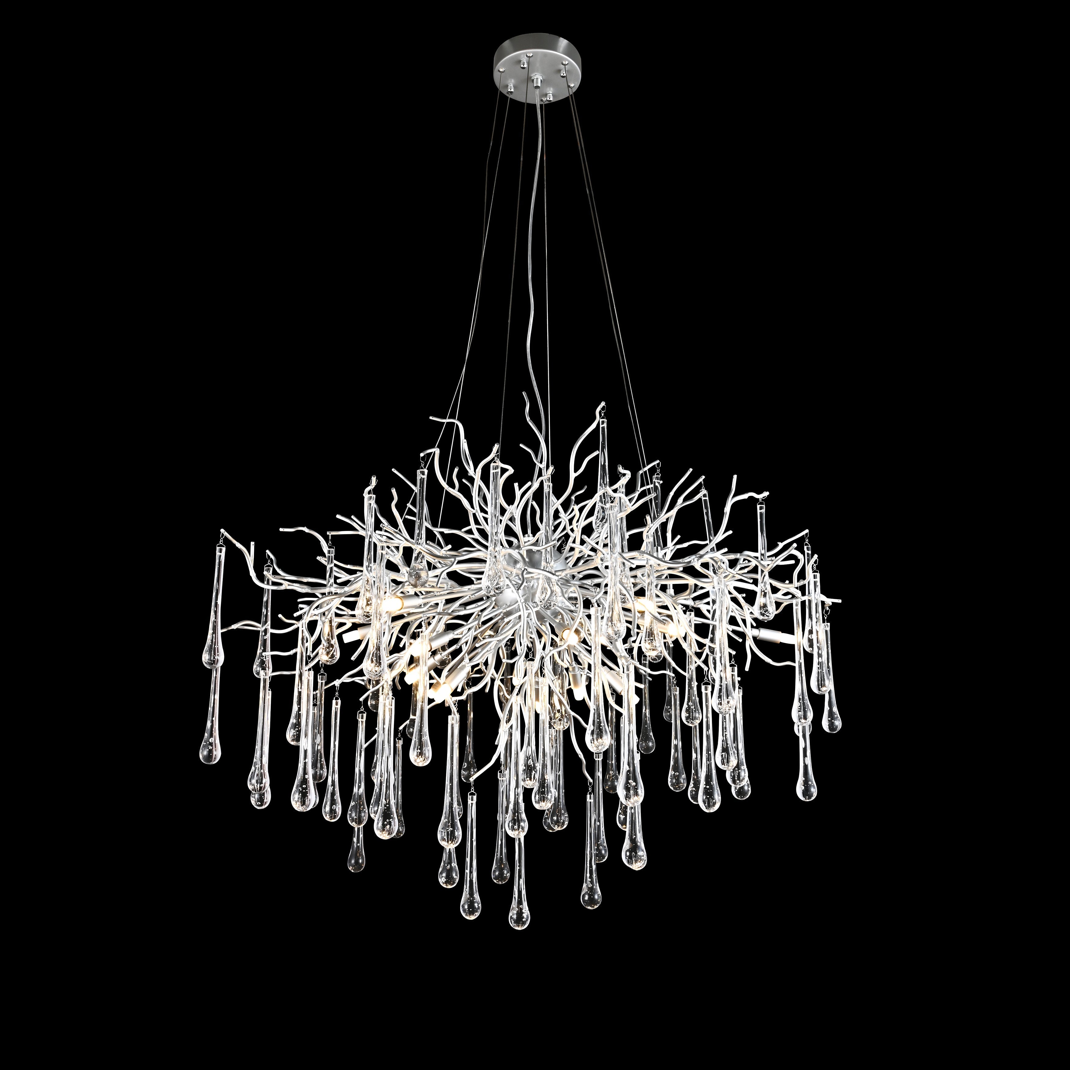 44" diameter x 27" height, weighs 45 lbs. 15 lights.