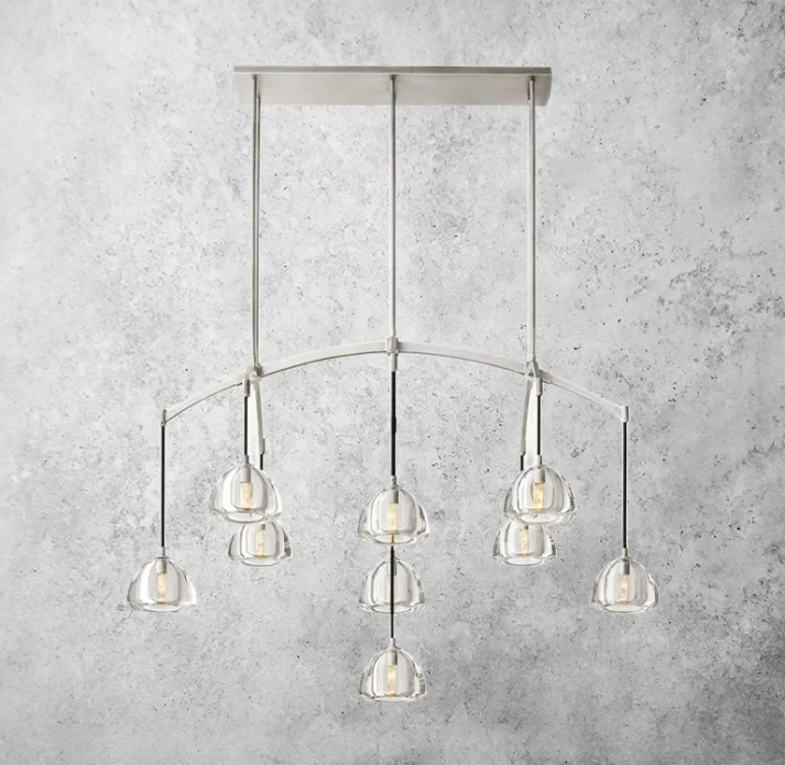 Add a touch of sophistication to your space with the Hemisophere Linear Chandelier 54". With its elegant design and sturdy construction, this chandelier creates a warm and inviting ambiance. Illuminate your room in style while elevating the overall aesthetic. Perfect for dining rooms, foyers, or living areas.