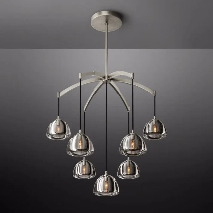 Transform your space into an elegant oasis with our Hemisophere Round Chandelier. Measuring at 36", this stunning fixture will add a touch of sophistication and style to any room. Illuminate your life with the perfect blend of simplicity and luxury.