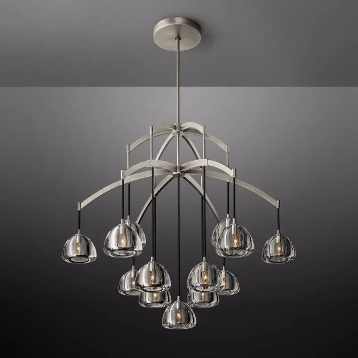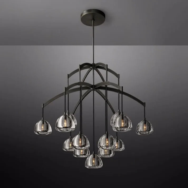 Create an ambience of luxury and sophistication with our Hemisophere Round Chandelier. This 48" chandelier is elegantly designed to add a touch of glamour to any space. Its unique hemispherical shape and sleek design will elevate your decor and provide soft, ambient lighting. Elevate your space with our Hemisophere Round Chandelier.