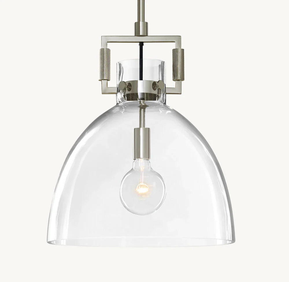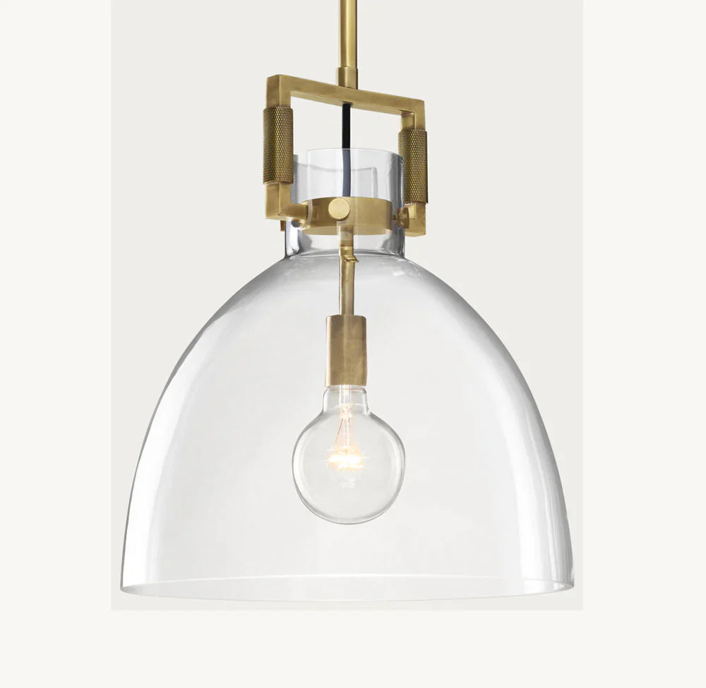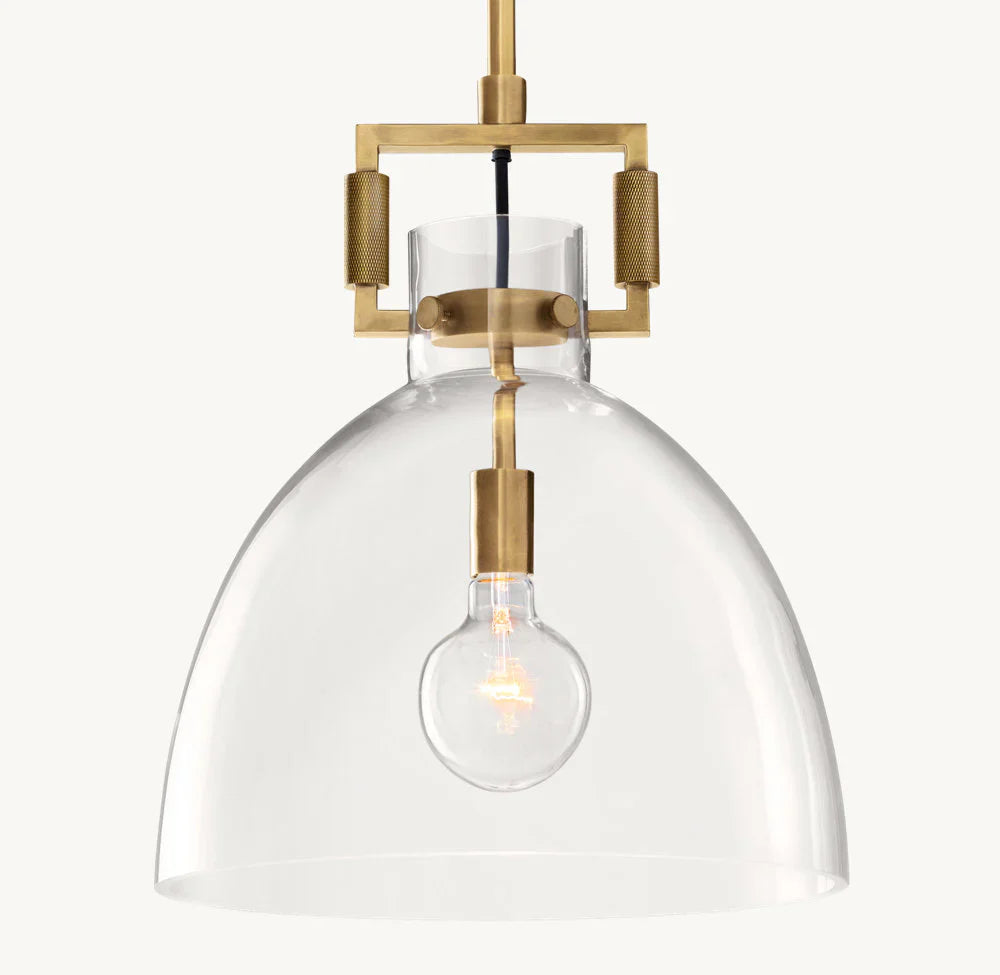 Introducing our luxurious MACHINIST GLASS CLOCHE PENDANT - a perfect blend of industrial and artistic design. The hand-blown glass cloche encases the vintage-inspired brass hardware, creating a unique and timeless piece. Elevate your space with this sophisticated and exclusive pendant.