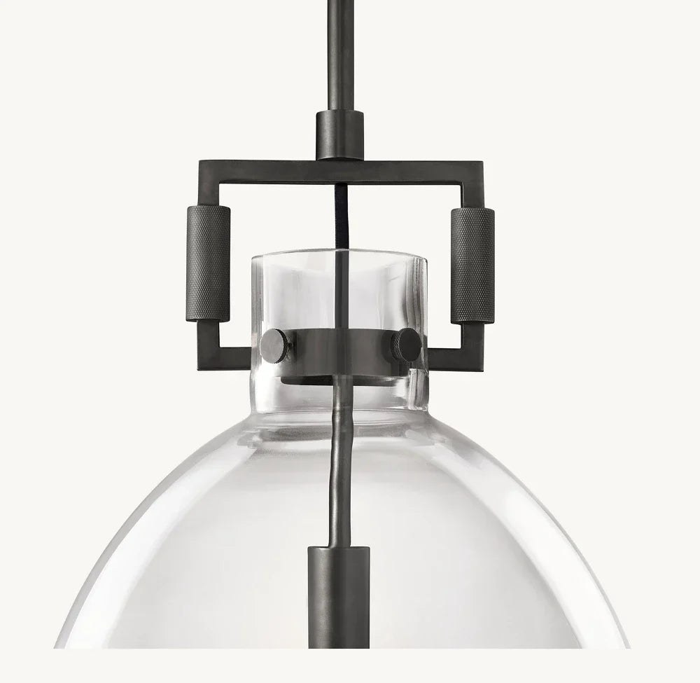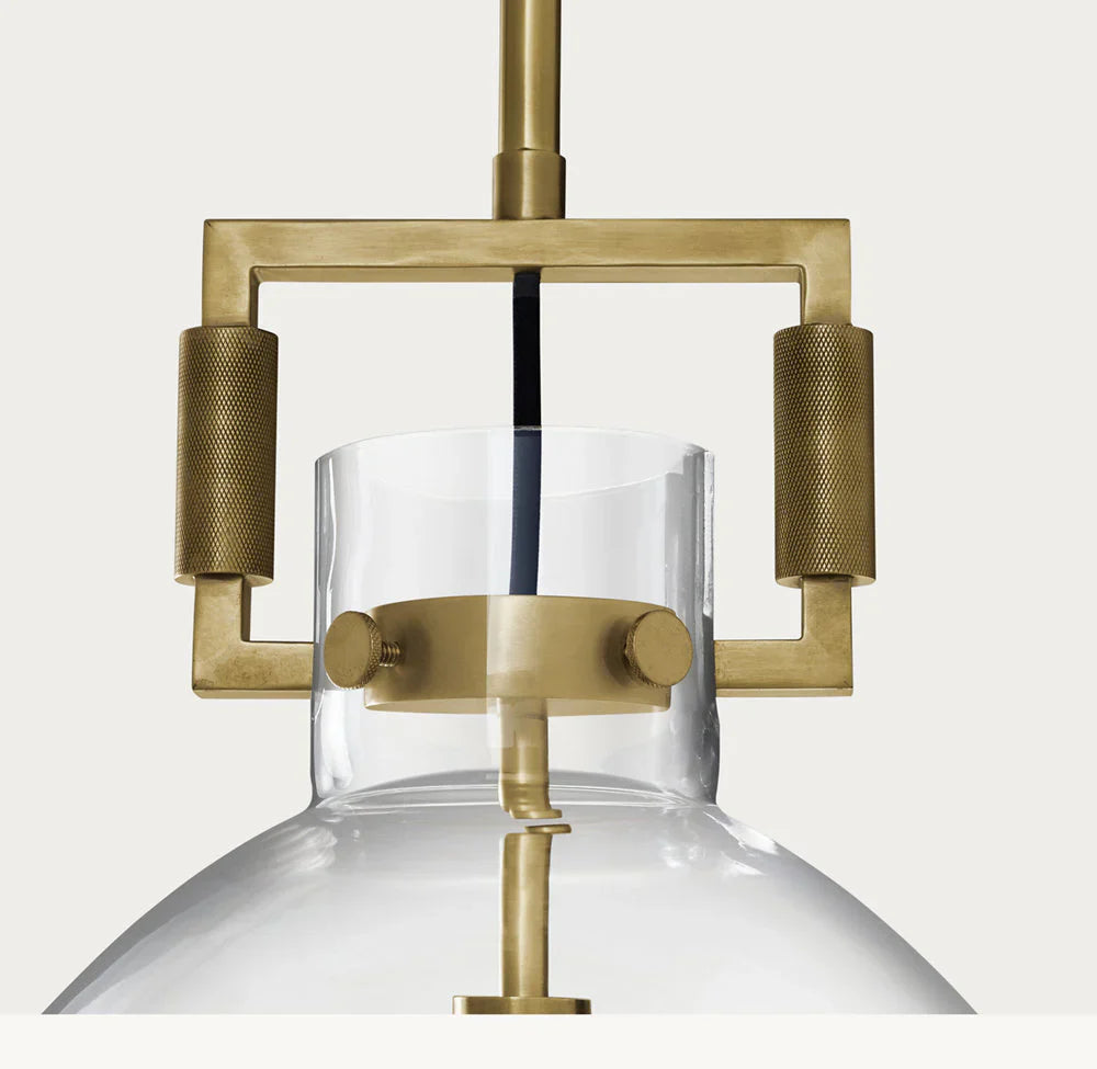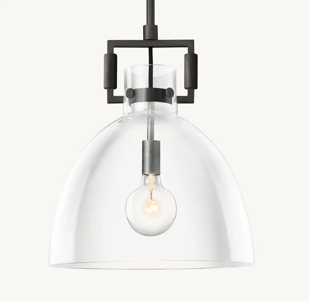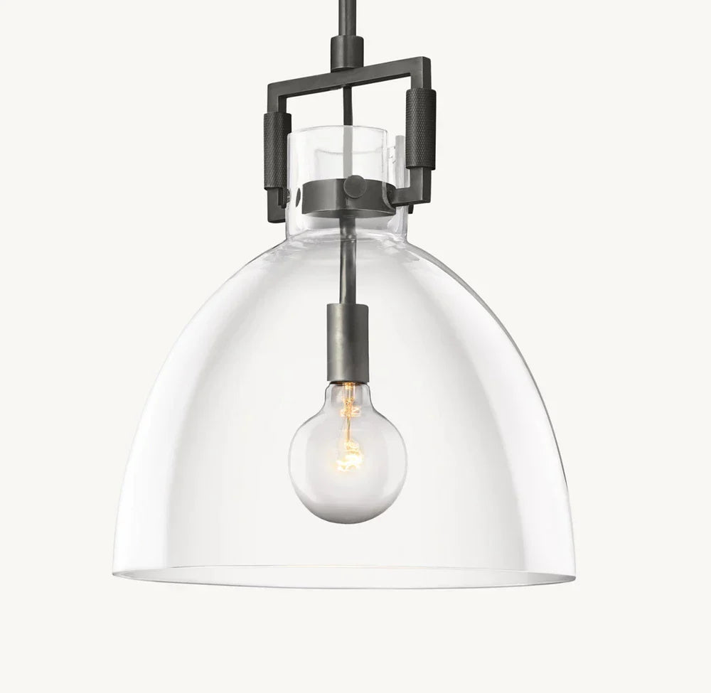 Introducing our luxurious MACHINIST GLASS CLOCHE PENDANT - a perfect blend of industrial and artistic design. The hand-blown glass cloche encases the vintage-inspired brass hardware, creating a unique and timeless piece. Elevate your space with this sophisticated and exclusive pendant.