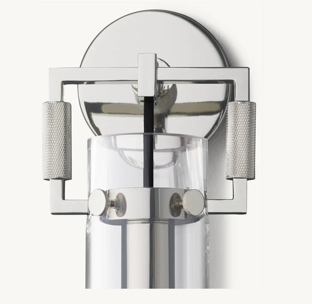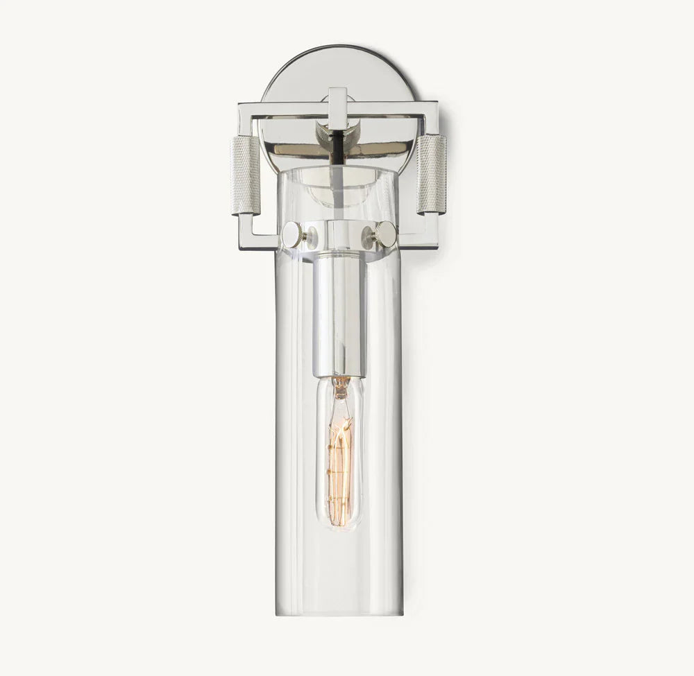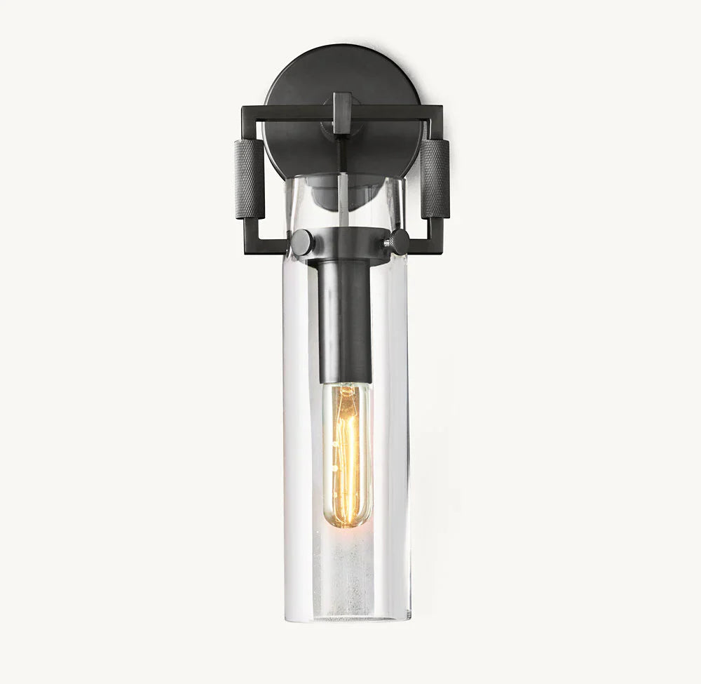 Introducing our MACHINIST GLASS CYLINDER SCONCE, a sophisticated lighting solution that adds a touch of elegance to any space. Crafted with care, its 12" glass cylinder and sleek design provide the perfect balance of form and function. Illuminate your home in style.