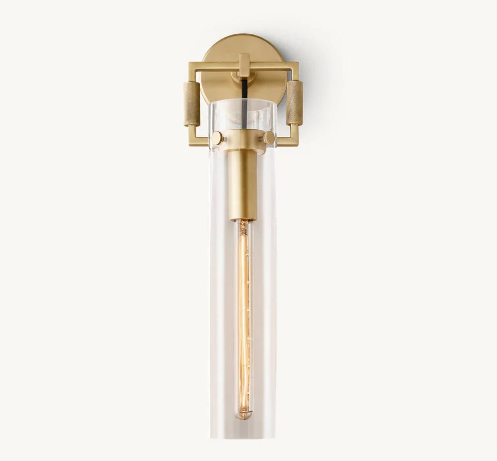 Introducing the MACHINIST GLASS CYLINDER SCONCE 16", the perfect blend of industrial design and refined elegance. With its sleek glass cylinder, this sconce adds a touch of sophistication to any room. Enhance your space with this premium product and elevate your home decor.