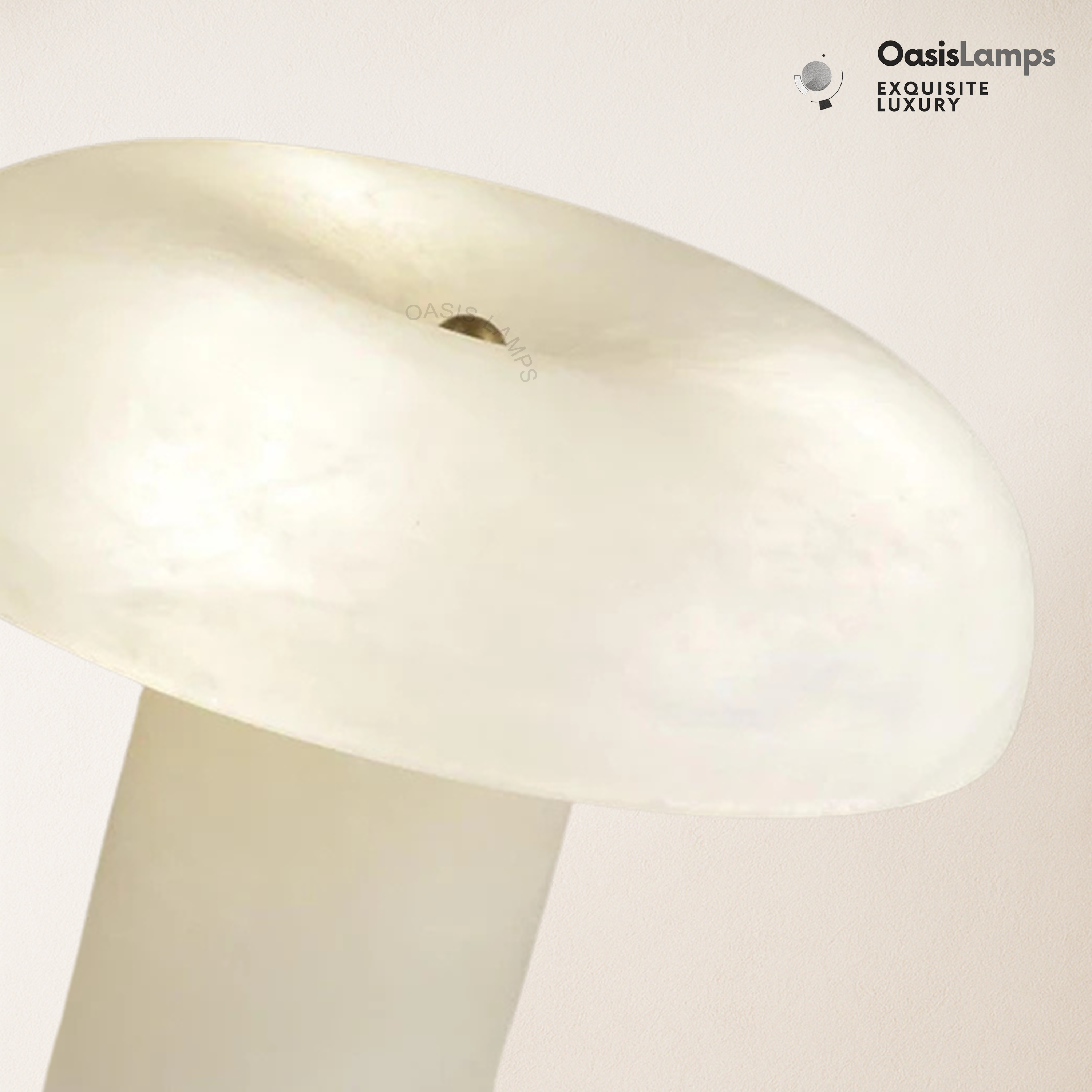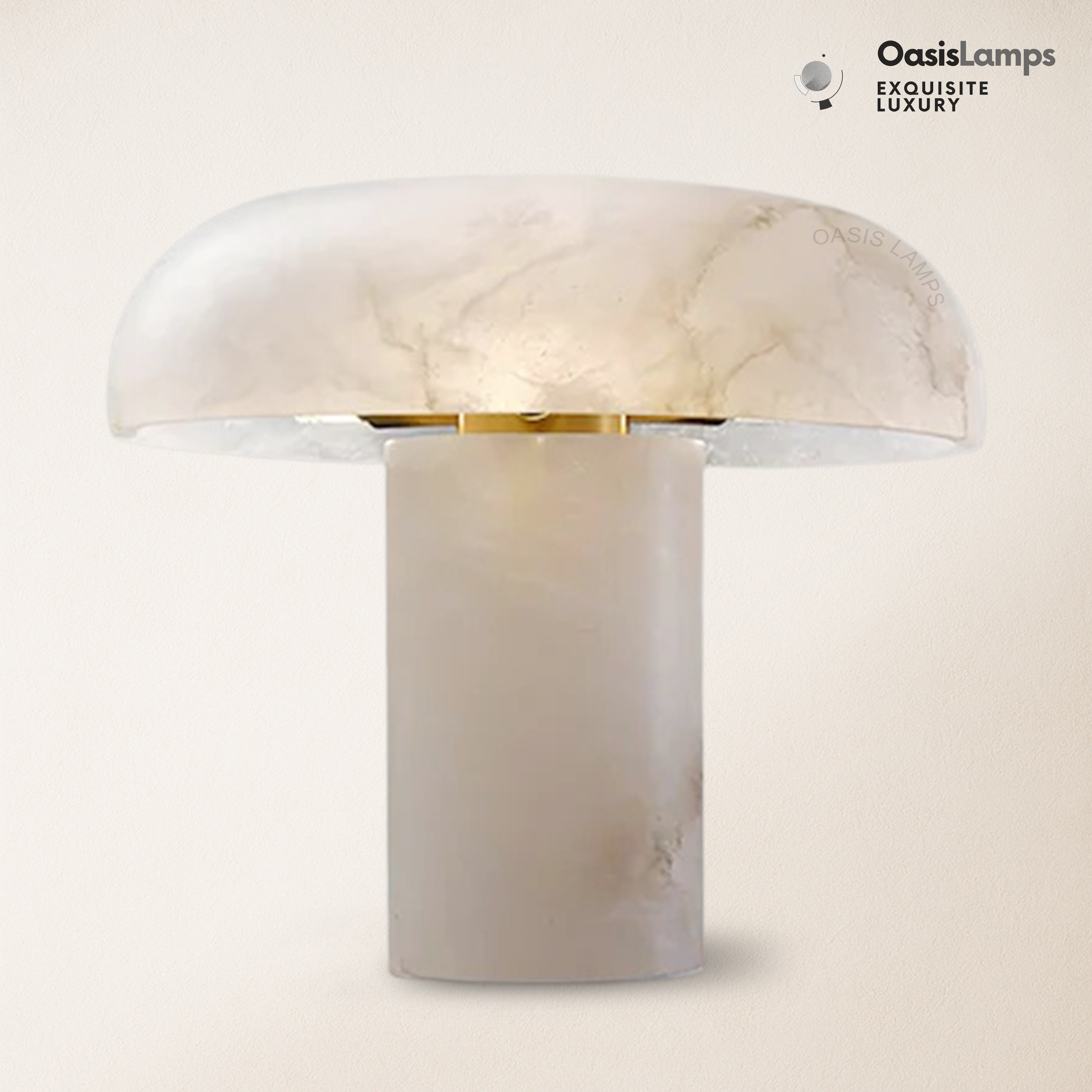 Modern Alabaster Mushroom Table Lamp is made of natural alabaster cubic with the natural look, with the warm white light color gives a soft and warm effect, a great choice for the bedside lamp.