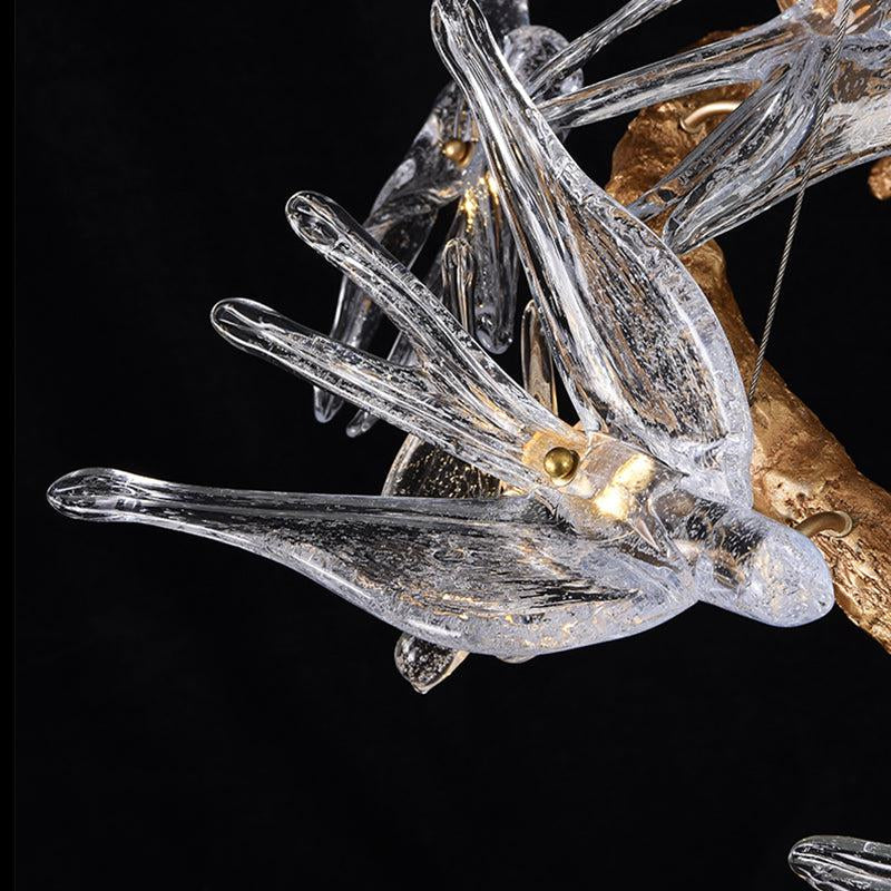 Crafted from handmade brass and bird-shaped glass, the Modern Bird Glass Tree Branch Circle Round Chandelier features a brass frame inspired by the organic texture of trees, with delicate glass birds perched on the branches. Ideal for spaces like the bedroom or living room, this chandelier brings a modern touch, seamlessly blending nature-inspired design with artistic craftsmanship.