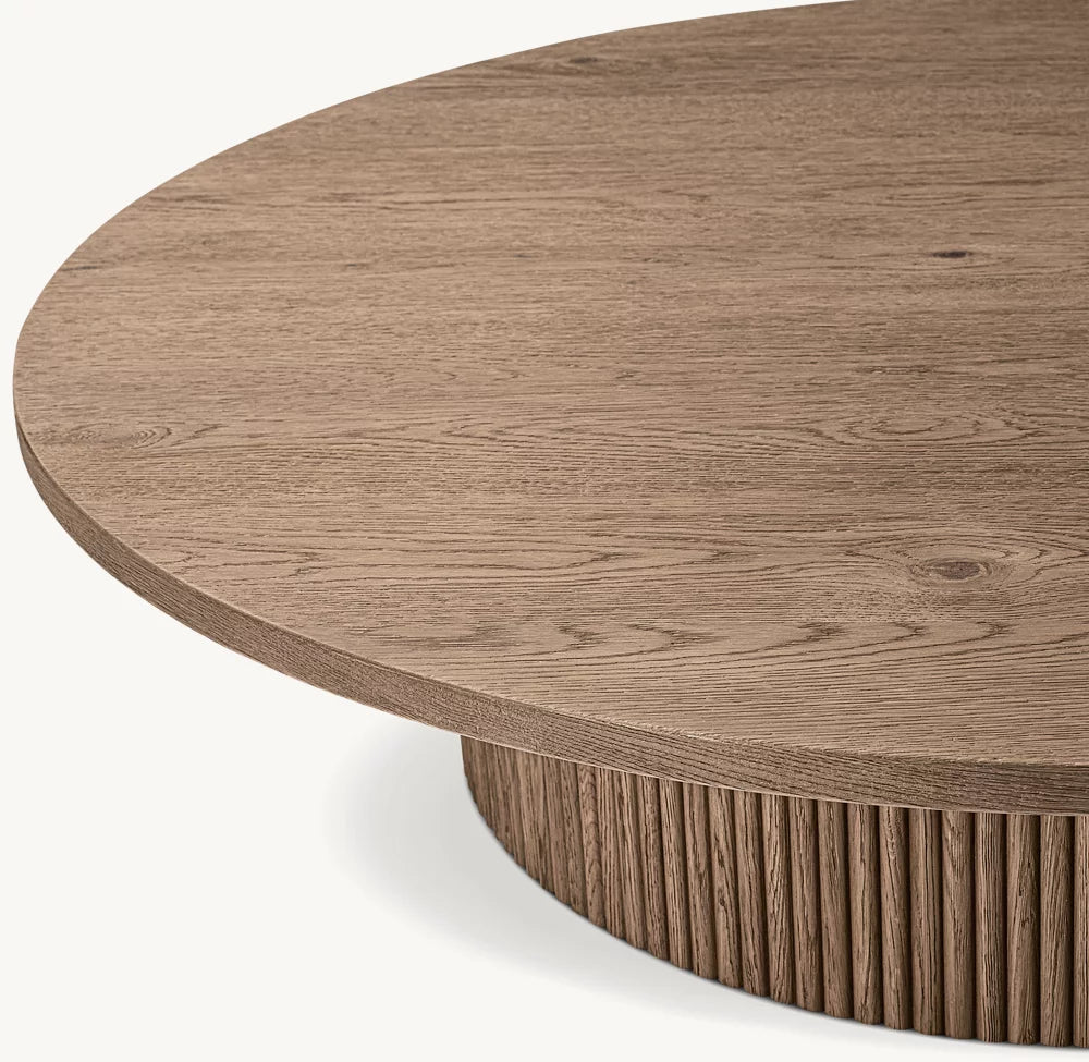 | CONSTRUCTION & MATERIALS | - The table is meticulously crafted from kiln-dried solid wood and engineered wood, adorned with American oak veneers, ensuring durability and a high-quality finish. - The vertical surfaces showcase solid oak reeding, adding a distinct, tactile element to the piece. - An intensive multistep finishing process gives the table a matte surface that highlights the natural grain of the wood, adding character and depth. |
