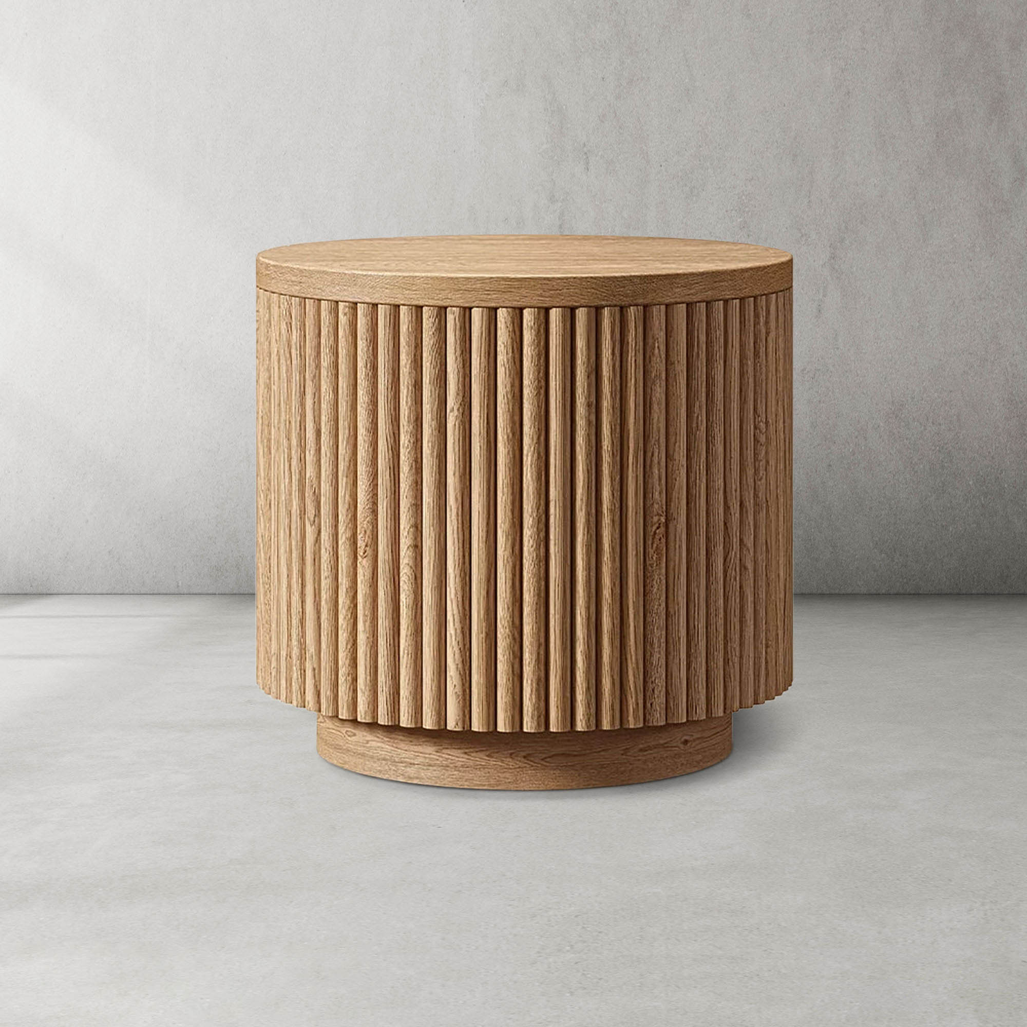 | Construction & Materials | - Meticulously crafted from kiln-dried solid wood and engineered wood, adorned with American oak veneers, ensuring durability and a high-quality finish. - Vertical surfaces feature solid oak reeding, adding a distinct, tactile element to the piece. - Intensive multistep finishing process results in a matte surface that highlights the natural grain of the wood, adding character and depth. |