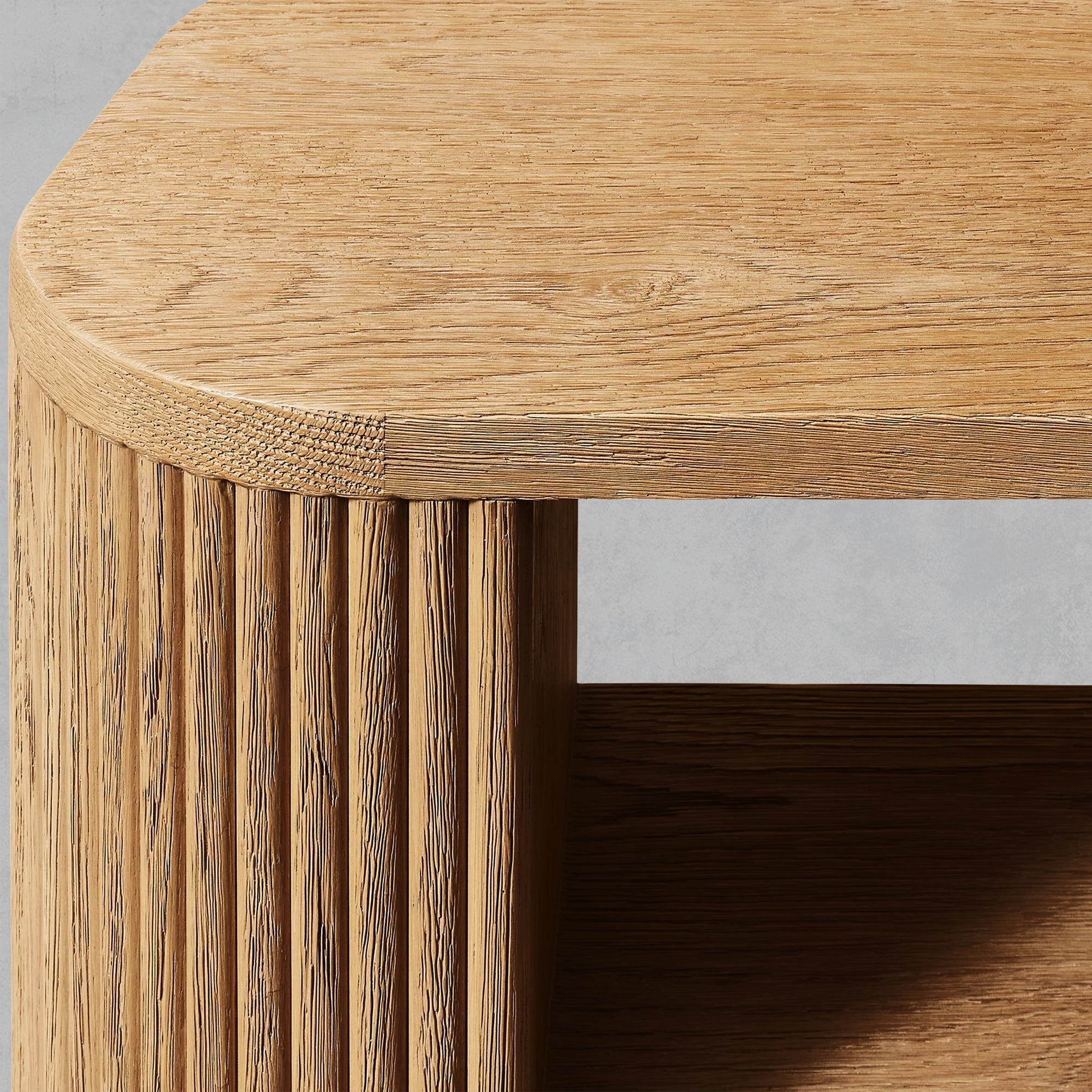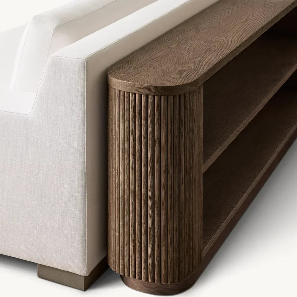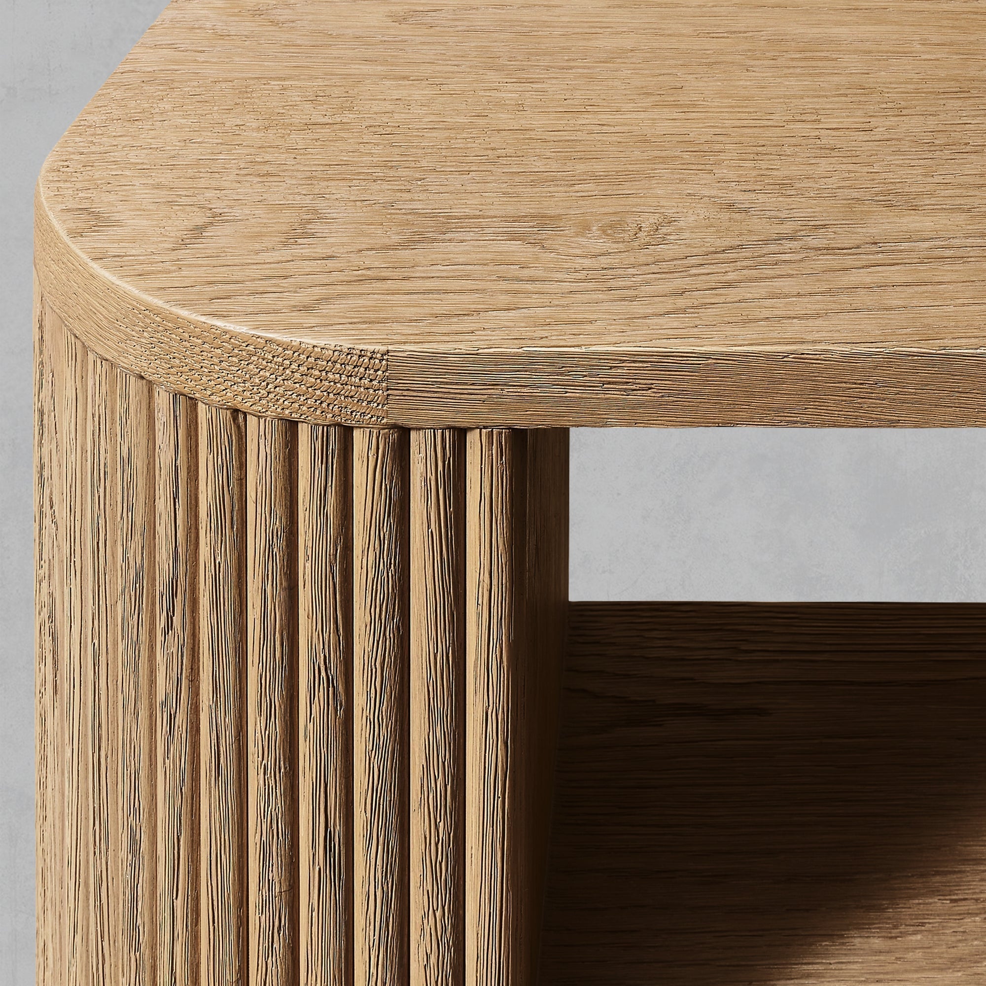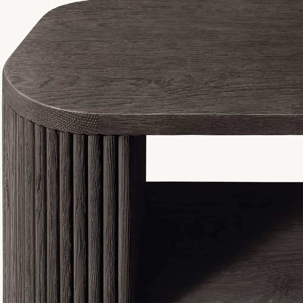 | Construction & Materials | - The table is meticulously crafted from kiln-dried solid wood and engineered wood, adorned with American oak veneers, ensuring durability and a high-quality finish. - The vertical surfaces showcase solid oak reeding, adding a distinct, tactile element to the piece. - An intensive multistep finishing process gives the table a matte surface that highlights the natural grain of the wood, adding character and depth. |