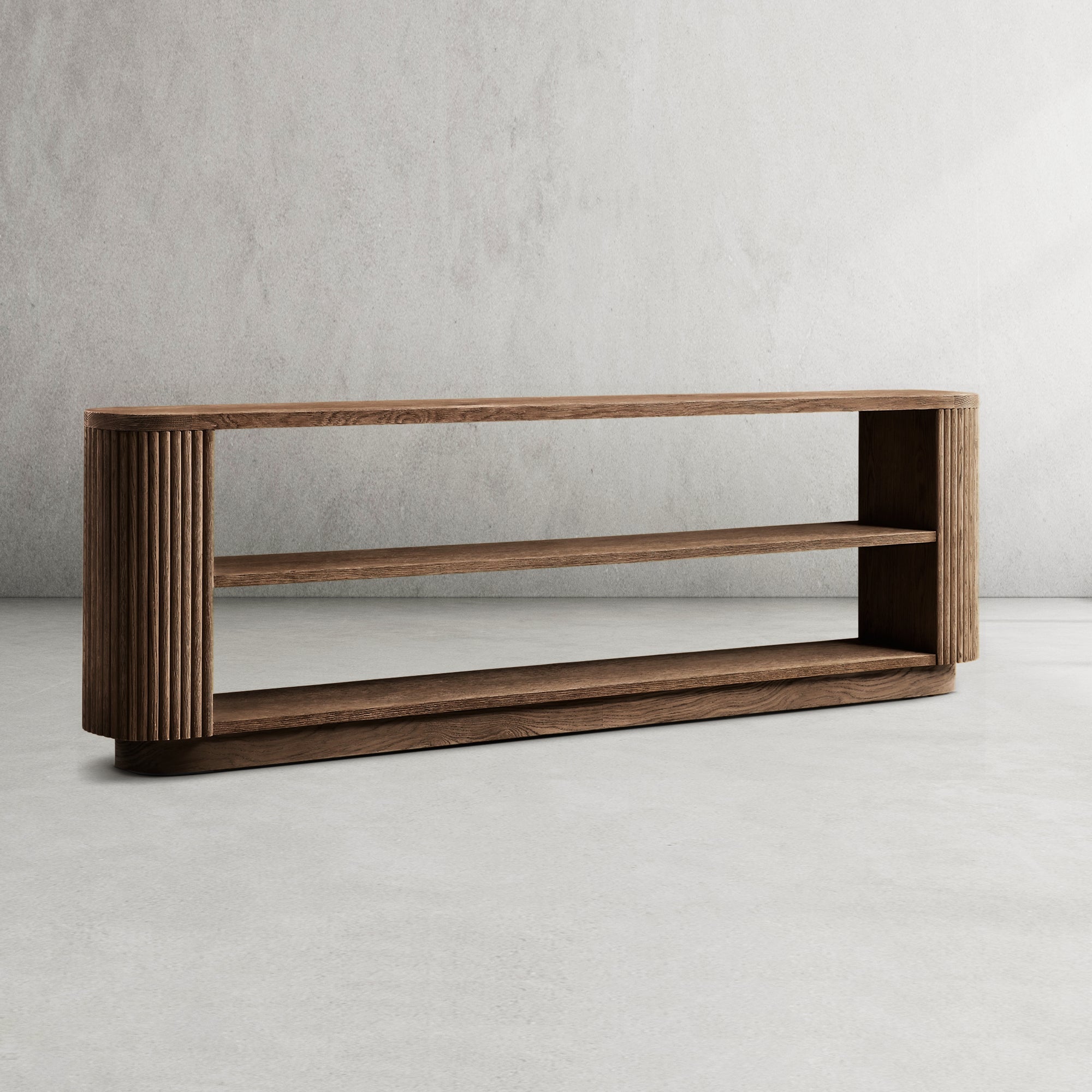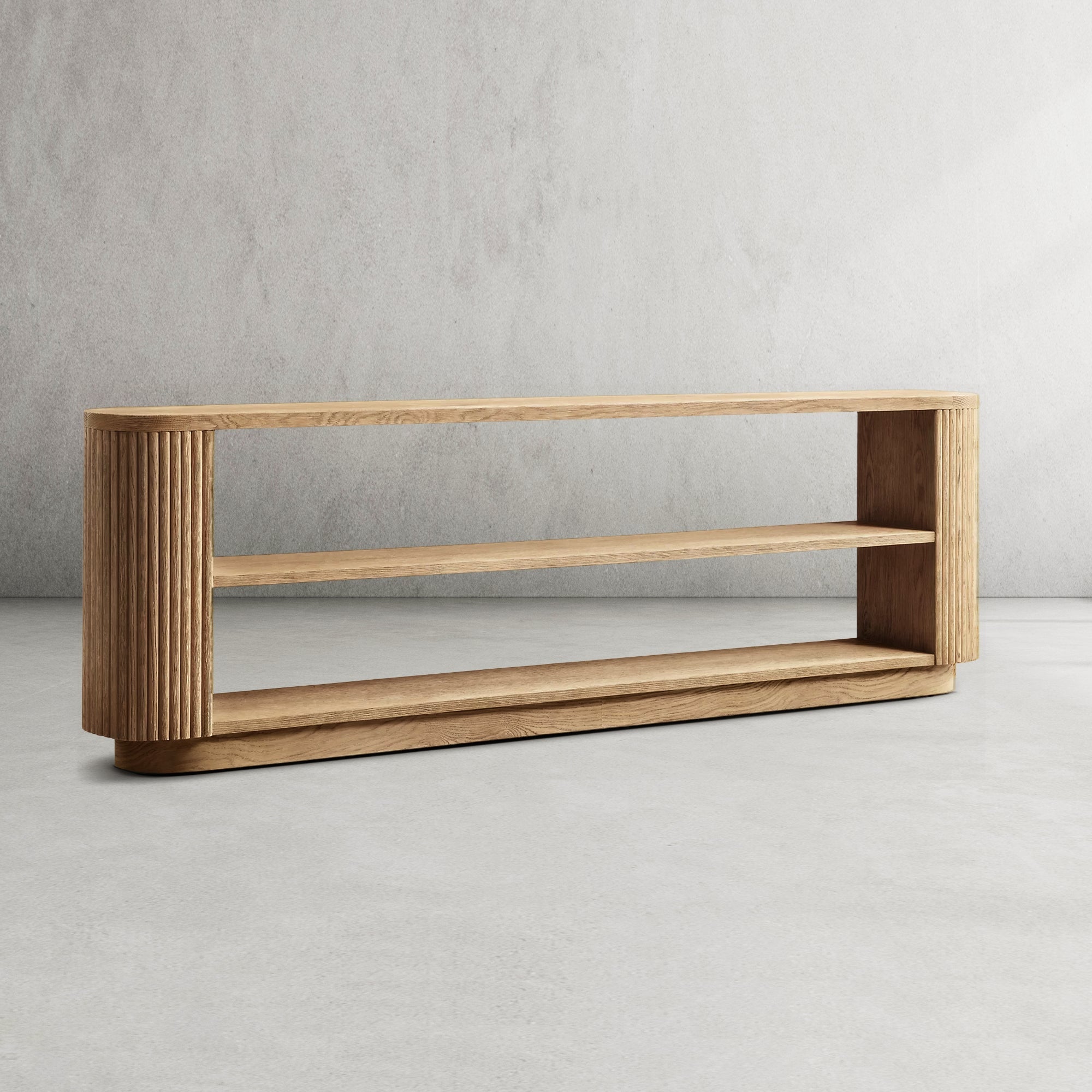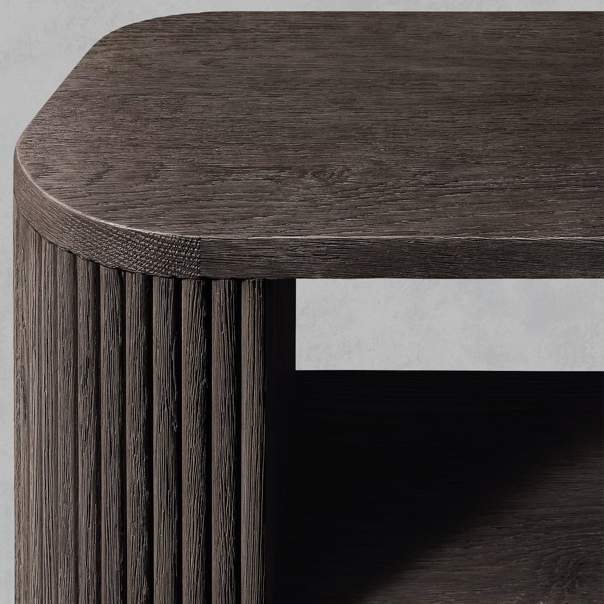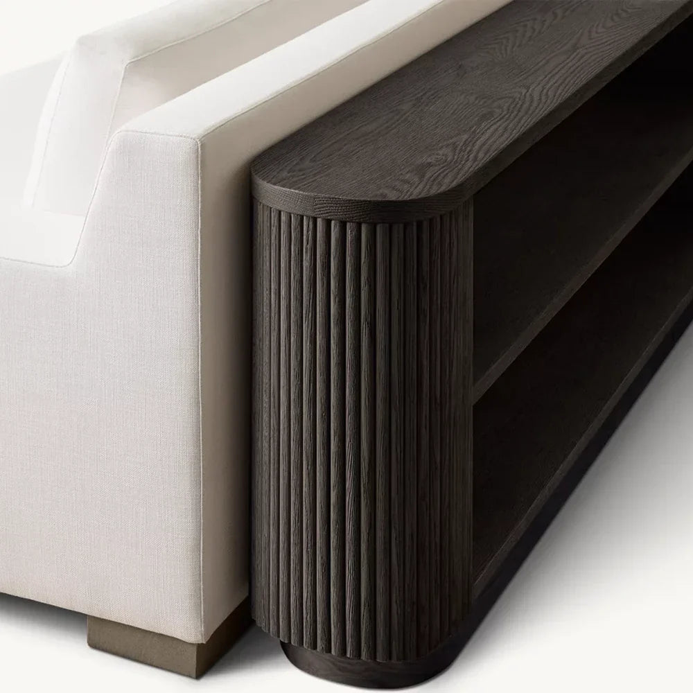 | Construction & Materials | - The table is meticulously crafted from kiln-dried solid wood and engineered wood, adorned with American oak veneers, ensuring durability and a high-quality finish. - The vertical surfaces showcase solid oak reeding, adding a distinct, tactile element to the piece. - An intensive multistep finishing process gives the table a matte surface that highlights the natural grain of the wood, adding character and depth. |