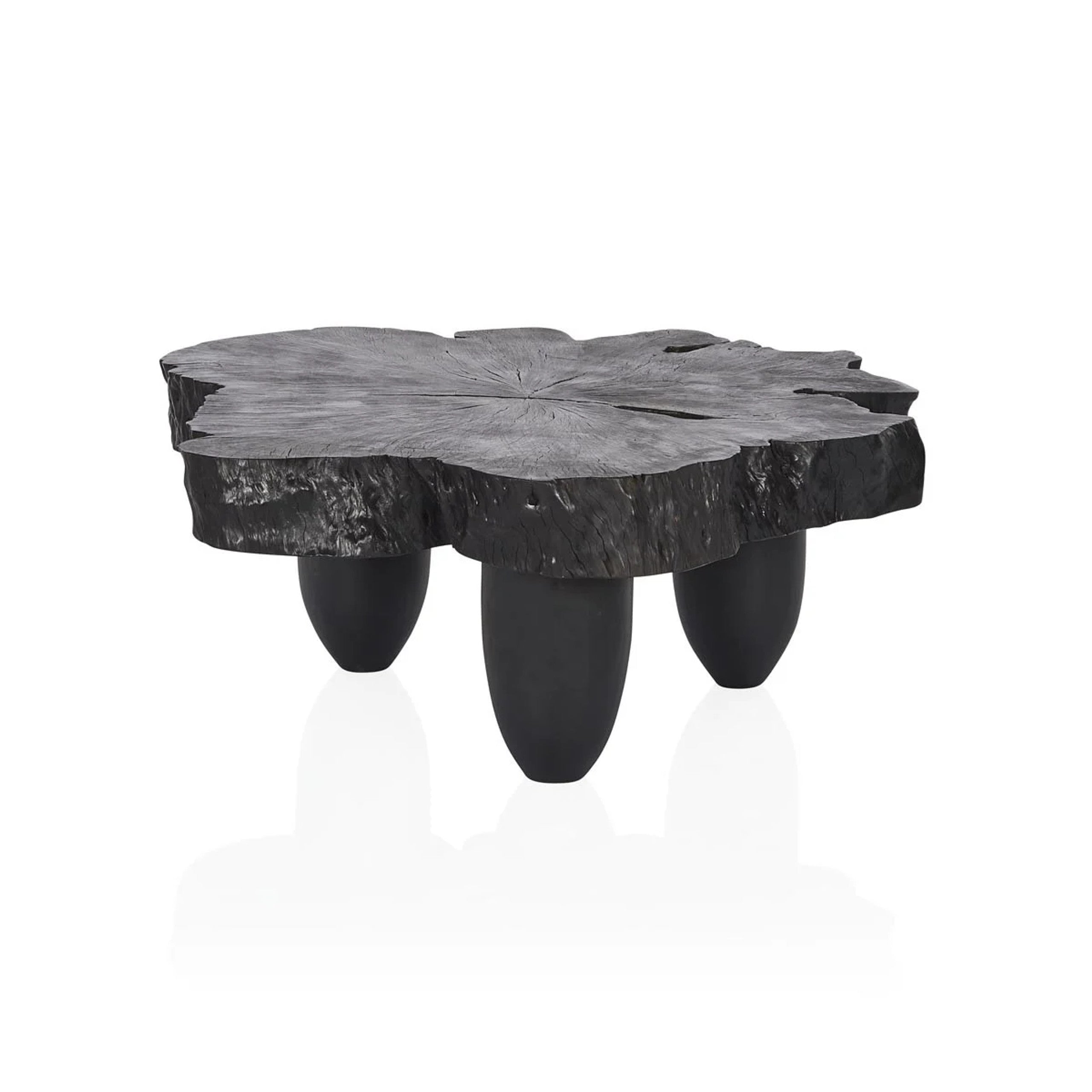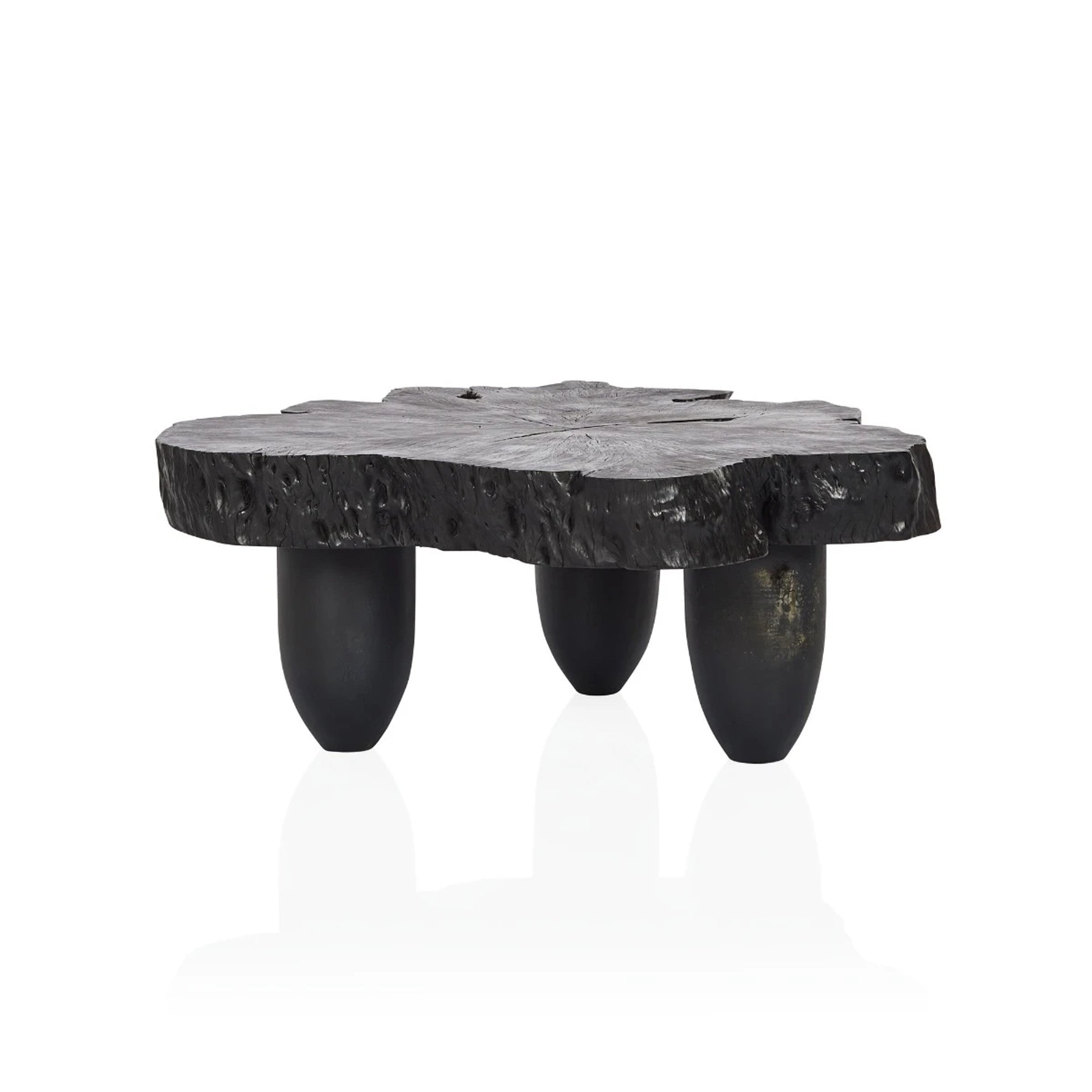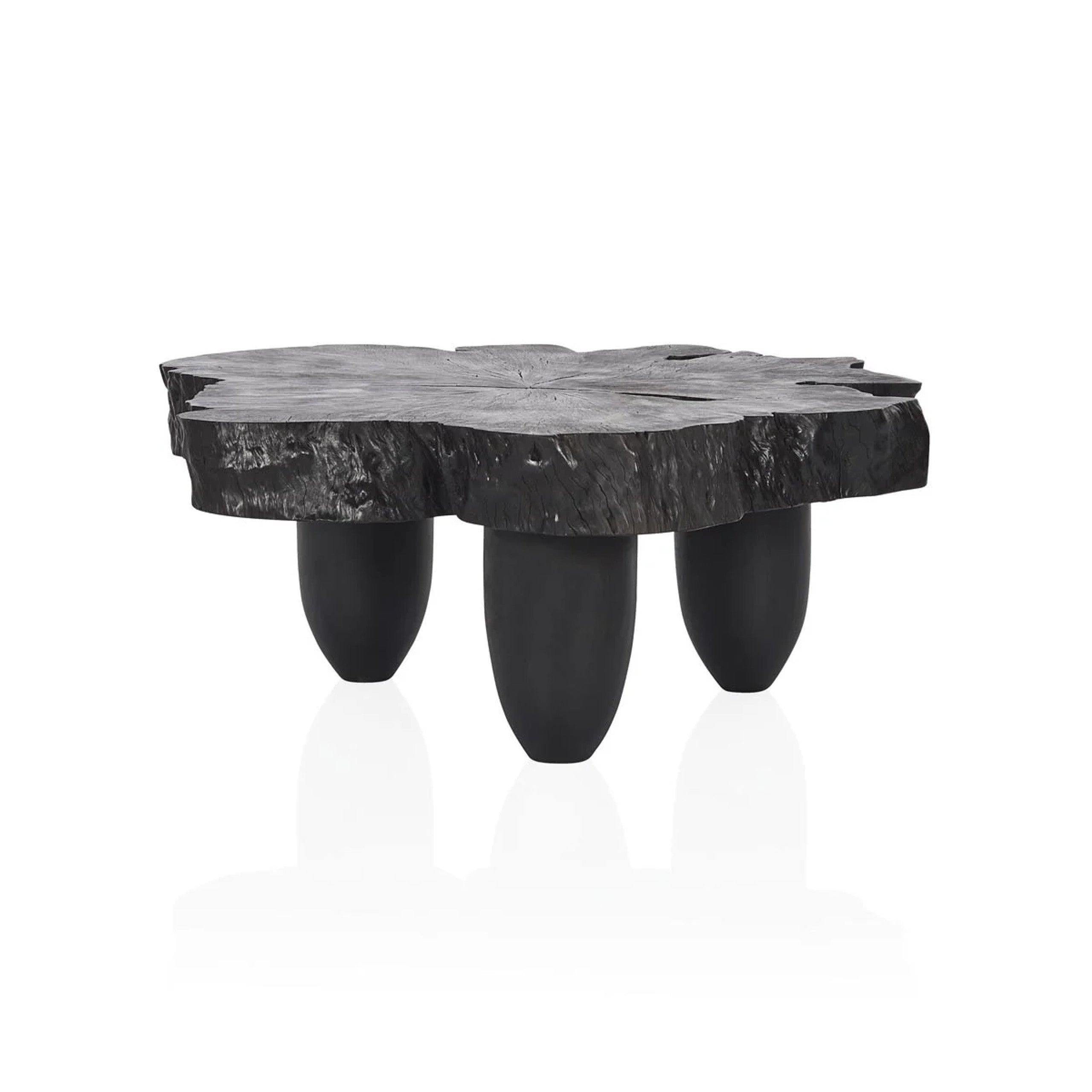 Organic-shaped coffee table in burnt timber finish to add designer-flair to your interior.|Inject standout style into your interior with the Nobu Coffee table showcasing the natural characteristics of rustic timber in an organic shape. Slight irregularities in shape colour or finish should be expected. Due to the hardness of the timbers and moisture level variation in Australia and New Zealand over time natural splitting cracking and loss of natural oils may also occur. We do not view these imperfections as faults but rather as a testament to the natural life and beauty of timber.