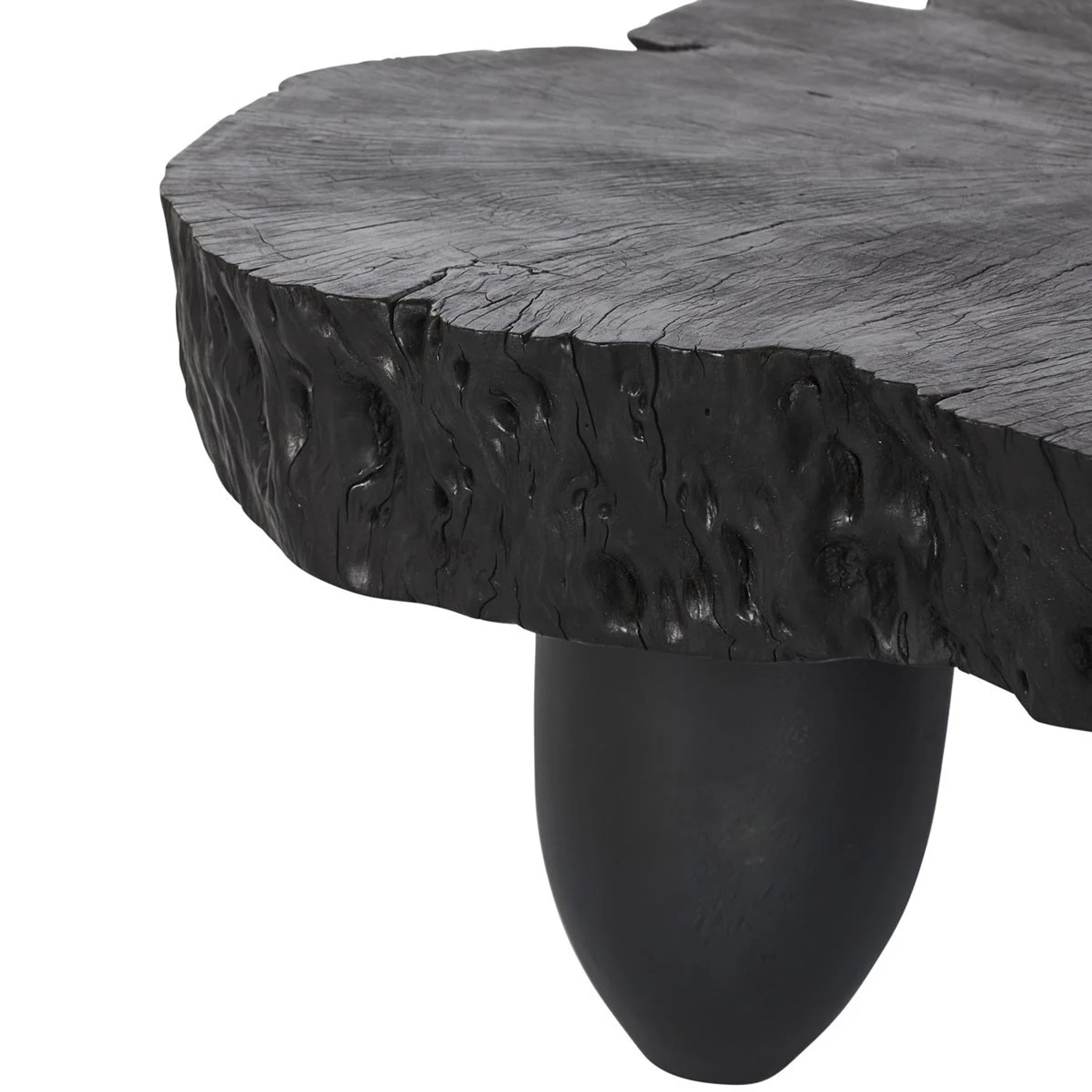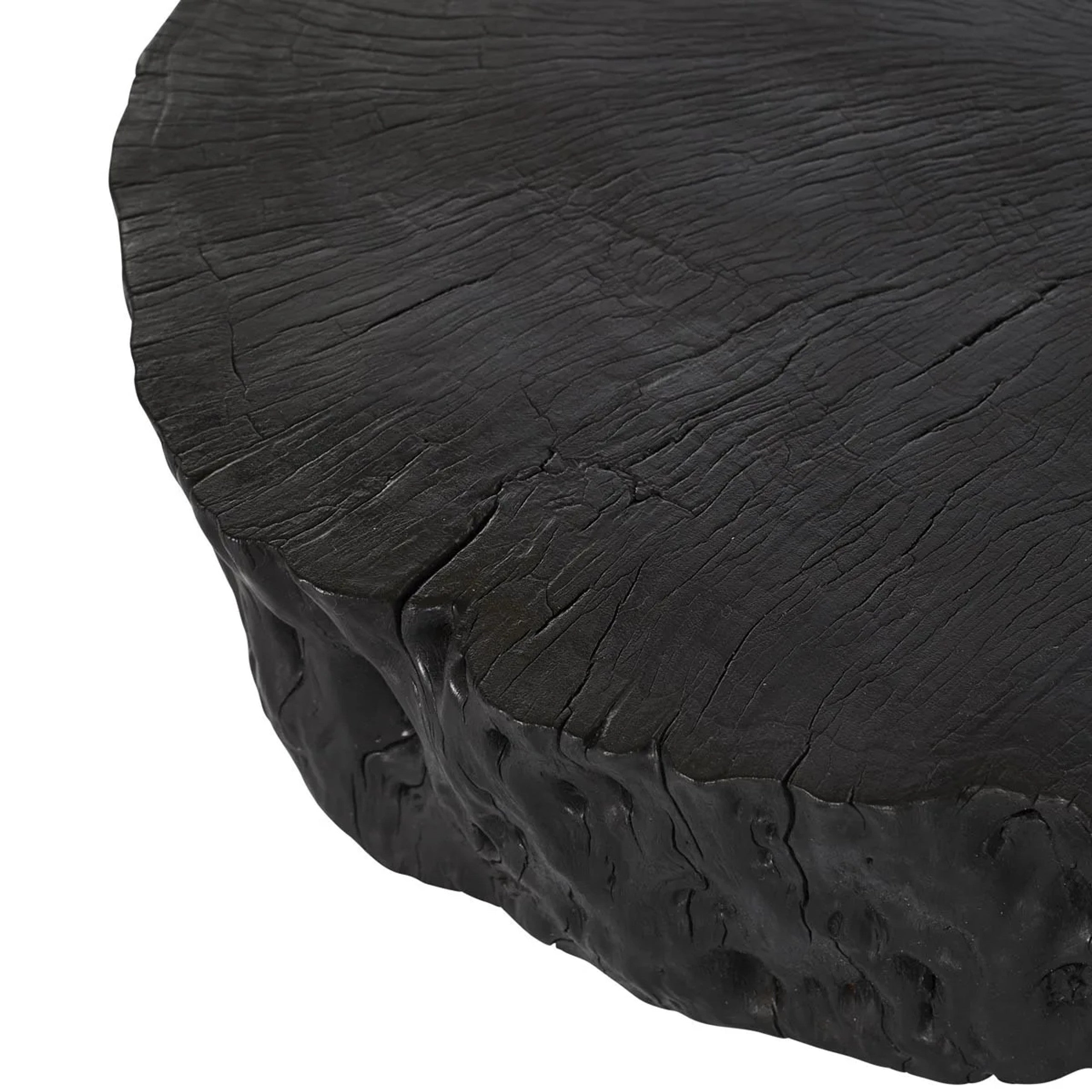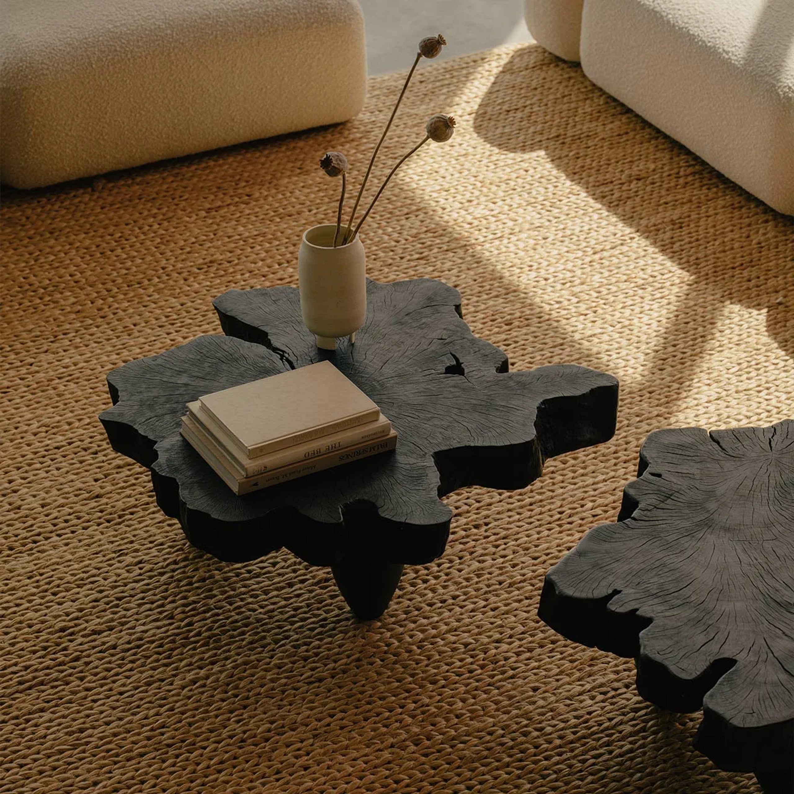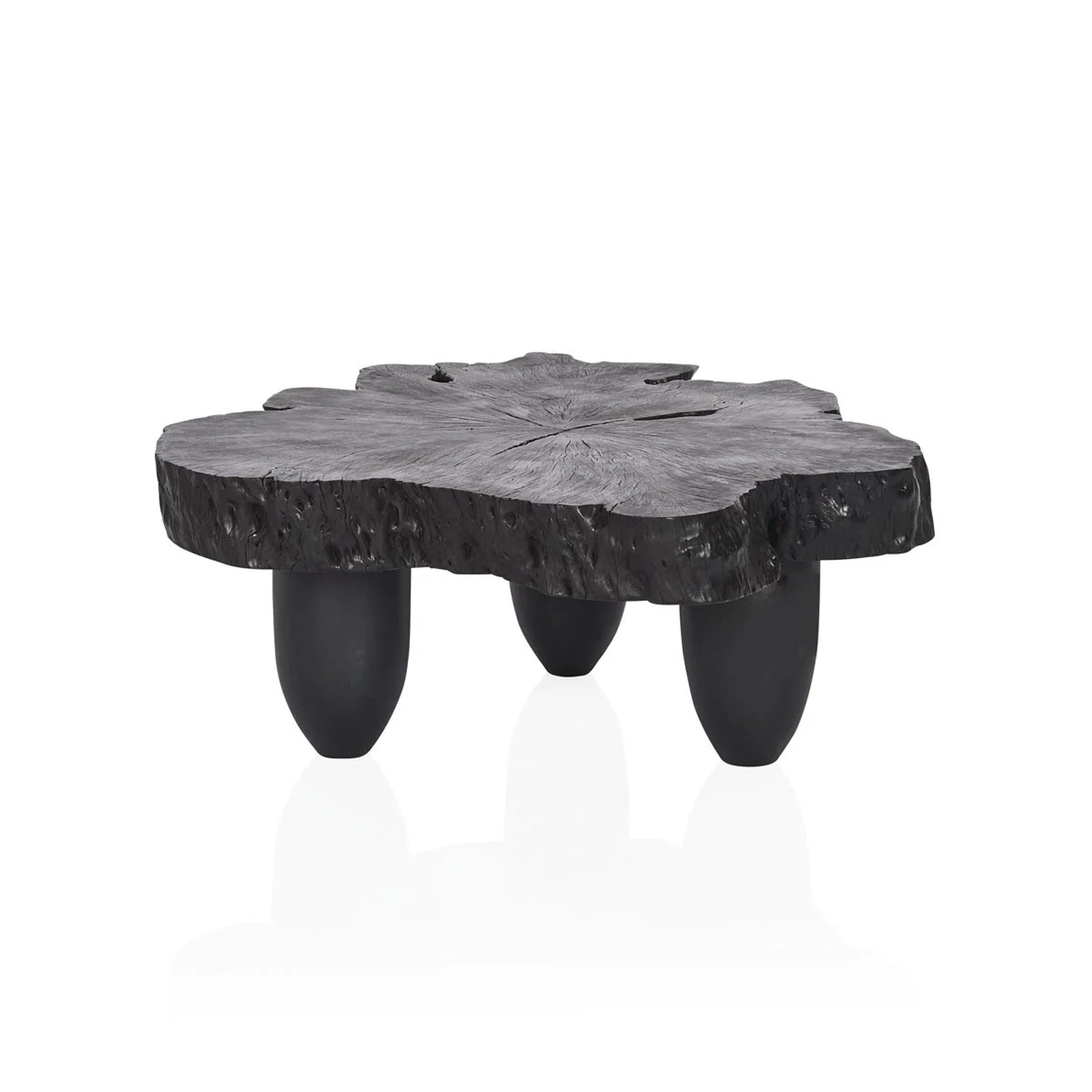 Organic-shaped coffee table in burnt timber finish to add designer-flair to your interior.|Inject standout style into your interior with the Nobu Coffee table showcasing the natural characteristics of rustic timber in an organic shape. Slight irregularities in shape colour or finish should be expected. Due to the hardness of the timbers and moisture level variation in Australia and New Zealand over time natural splitting cracking and loss of natural oils may also occur. We do not view these imperfections as faults but rather as a testament to the natural life and beauty of timber.