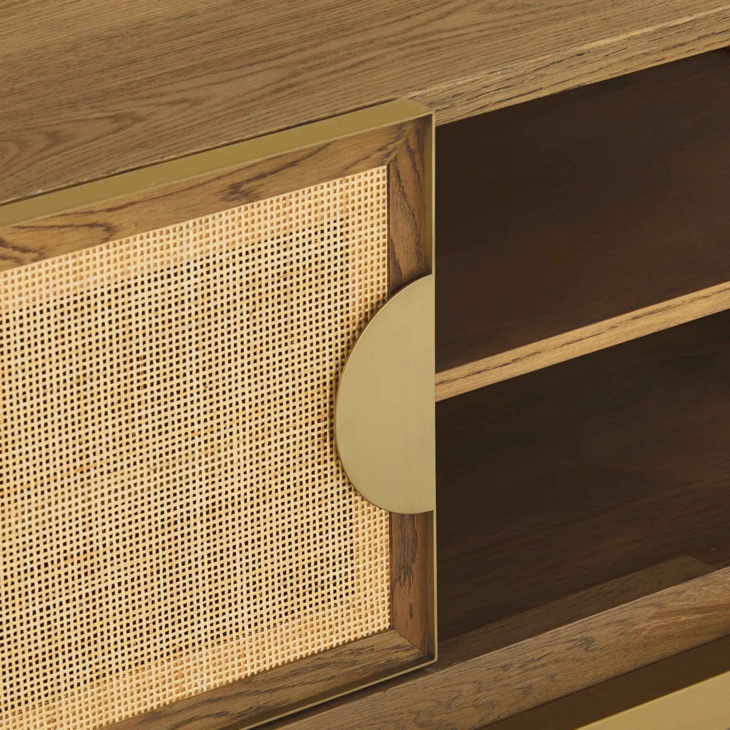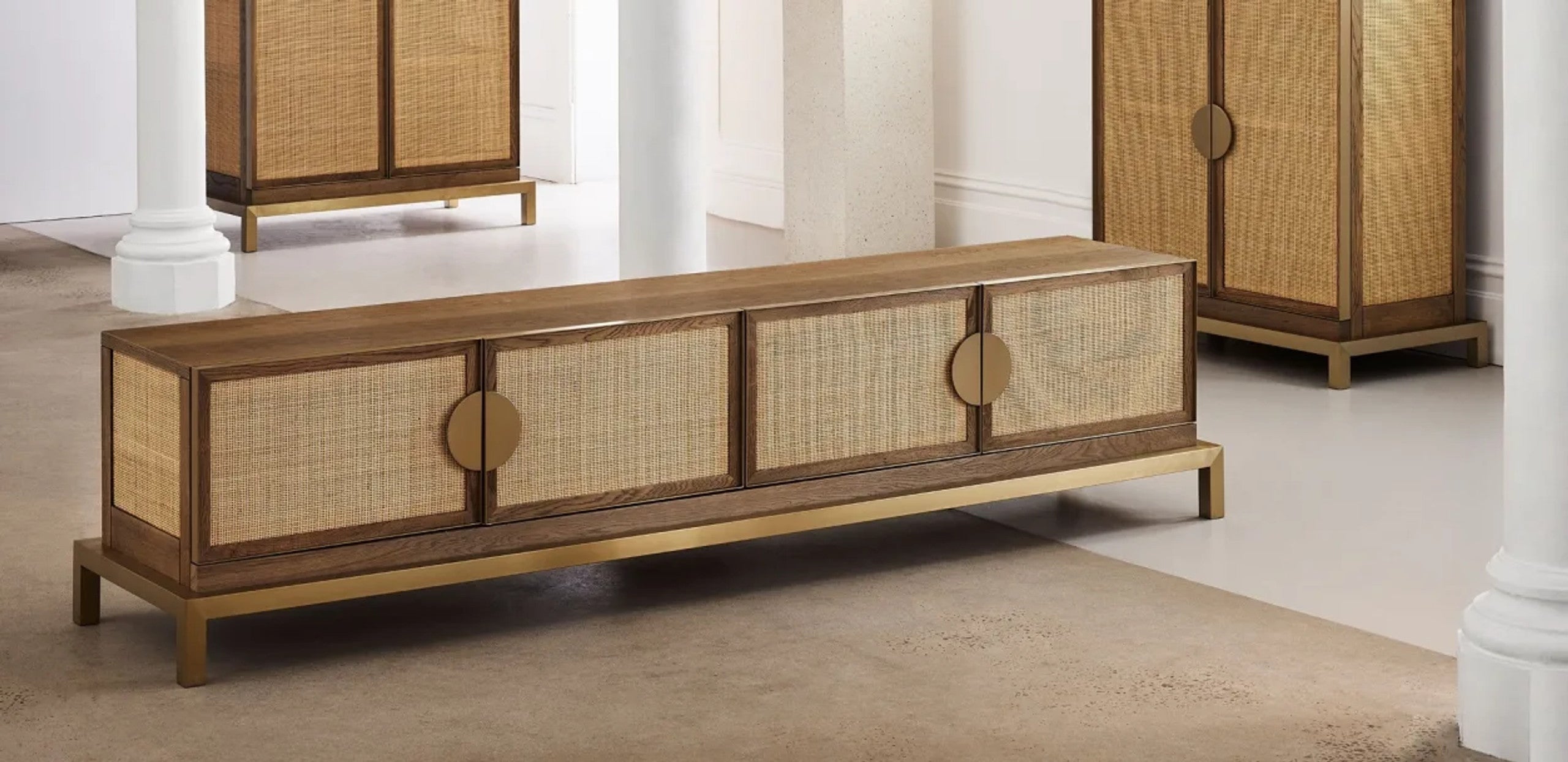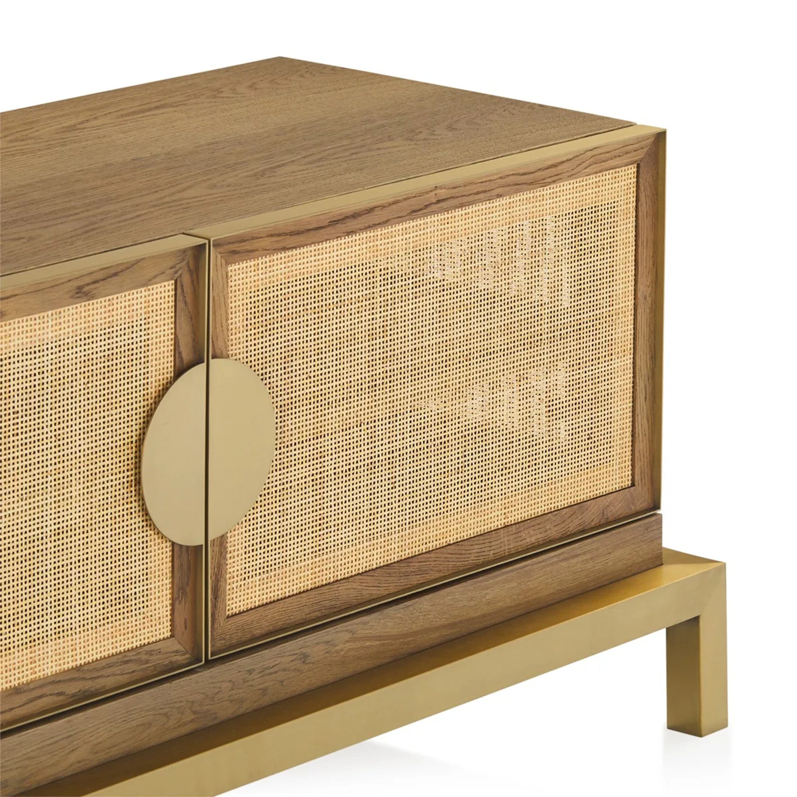 Striking design combining mixed natural materials that enhance its dimensionality.|The Paloma range celebrates a harmonious juxtaposition of scale and texture to deliver timeless allure and palpable cool. Combining the delicate texture of natural rattan framed by solid oak and burnished brass accents in geometric form the range captures the spirit of California in iconic style.