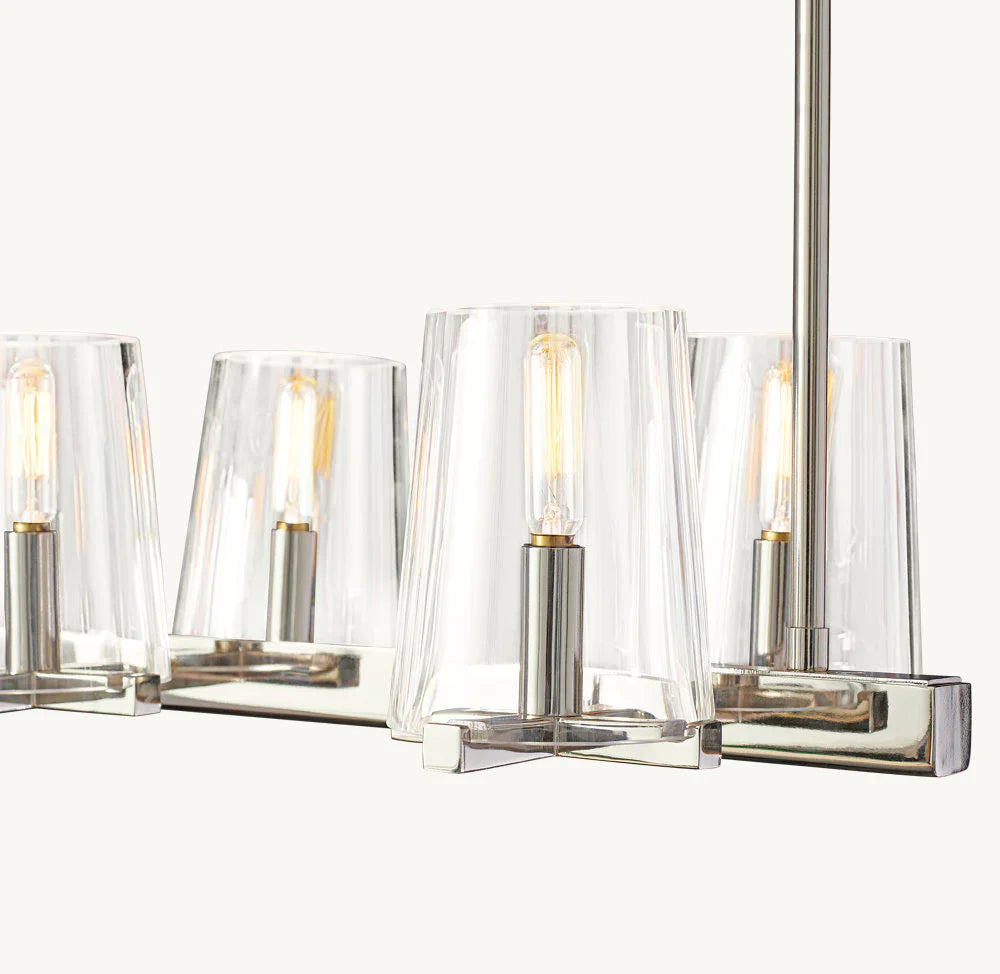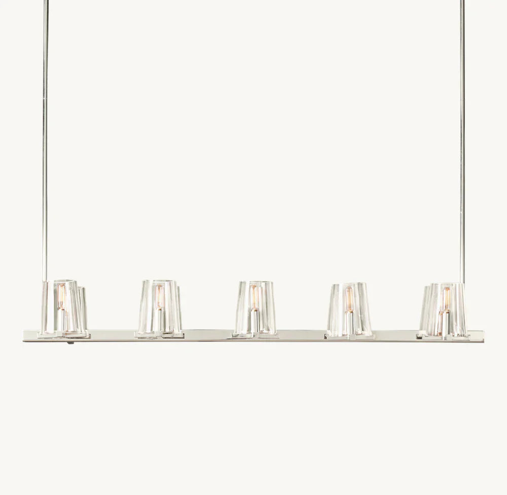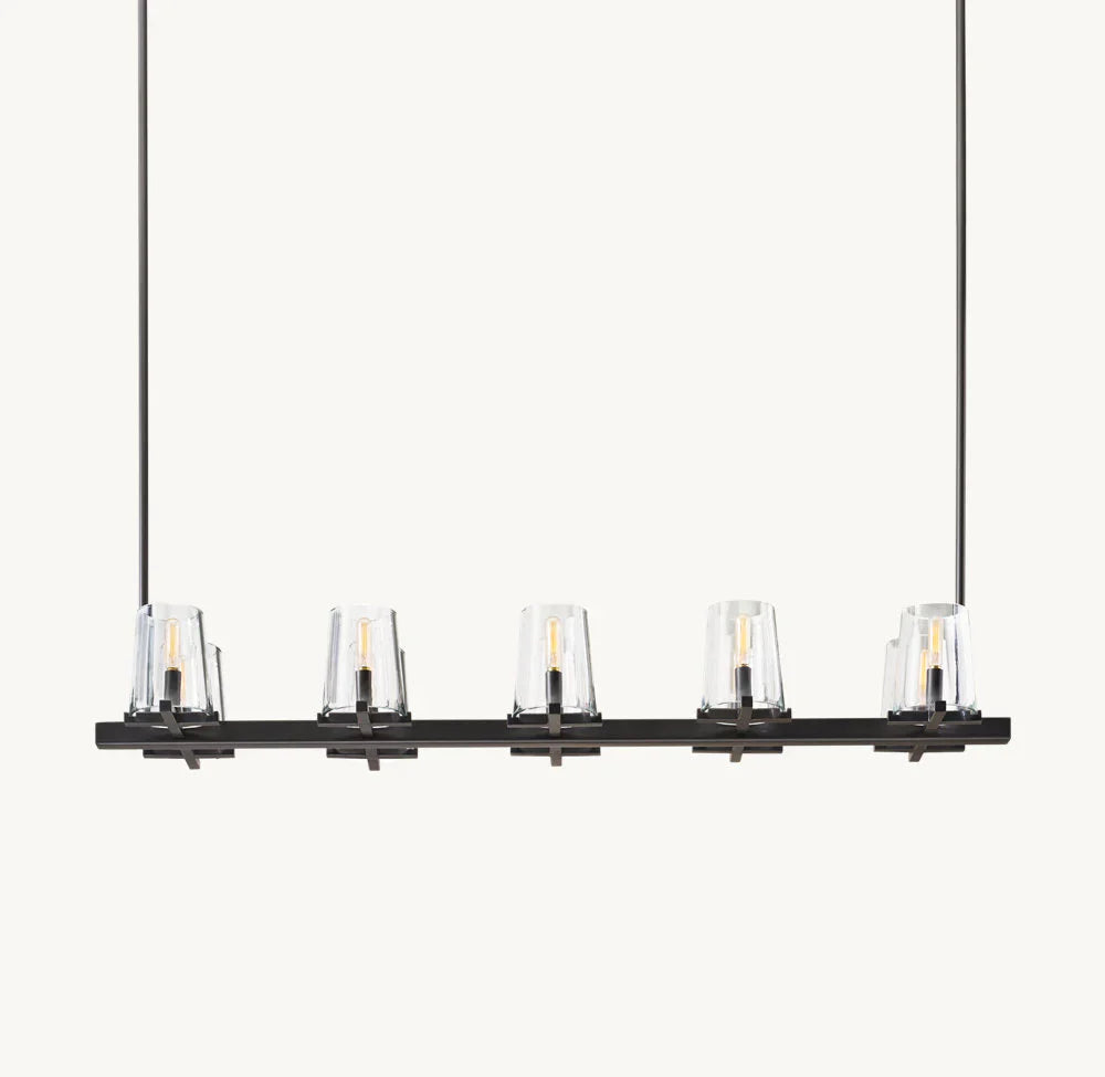 Elevate your space with our PAUILLAC LINEAR CHANDELIER 49". Featuring a sleek design and 49" length, this chandelier adds a touch of sophistication and luxury to any room. Its linear shape creates a captivating visual display, making it a perfect centerpiece for your home.