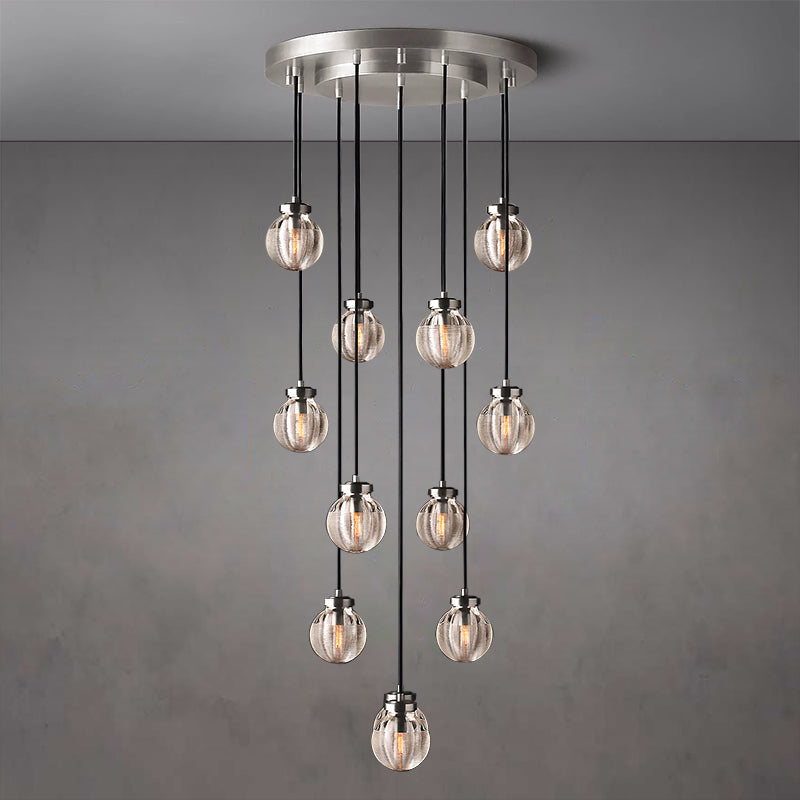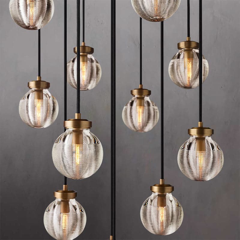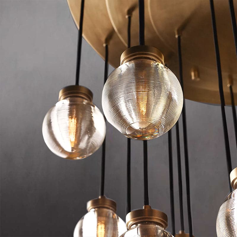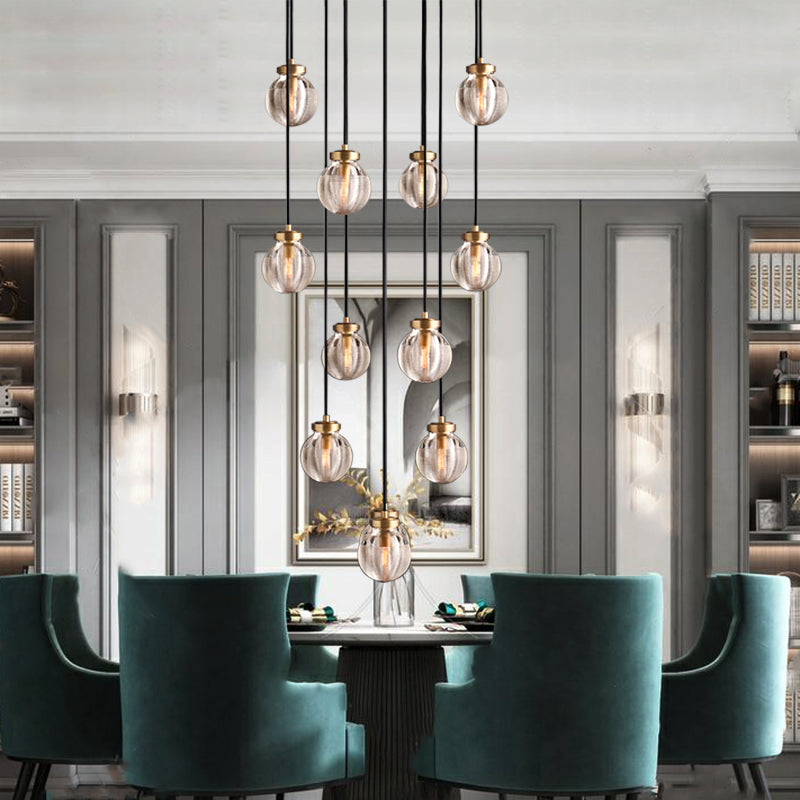 Each exquisite crystal pearl pendant combines high-quality copper to show luxury. Each crystal pearl is carefully polished by workers with many years of manual experience. Ceiling canopy and fittings are crafted from solid brass.A linear horizontal texture surrounds and superimposes on the surface of the crystal pearl pendant.Highlights the elegance and temperament of this chandelier.