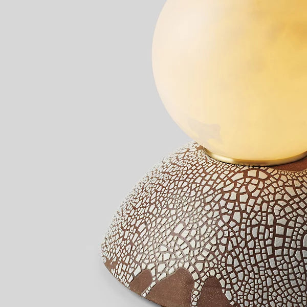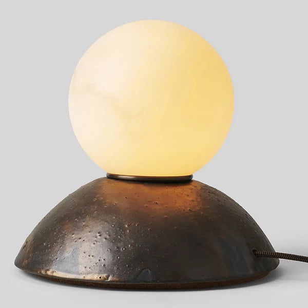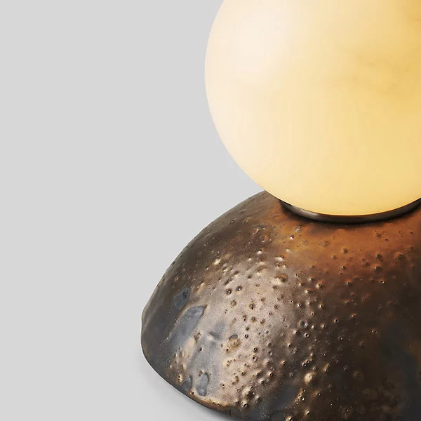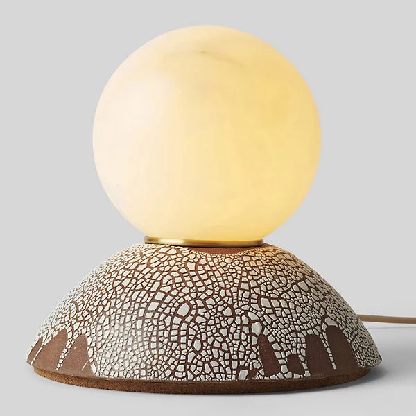 From designer Rosie Li comes the artful, texture-rich design of the Petra Alabaster Table Lamp by Rosie Li Studio. This table lamp showcases a beautiful, globe-shaped shade that houses a vibrant LED array. The body of your lamp is composed of a rich blend of cork and brass. The lamp's base takes on the shape of a dome, allowing for easy placement on tables while showcasing a generous amount of artisanal detail. The Petra Table Lamp is versatile in scale, adding a punch of light and decoration across various rooms.