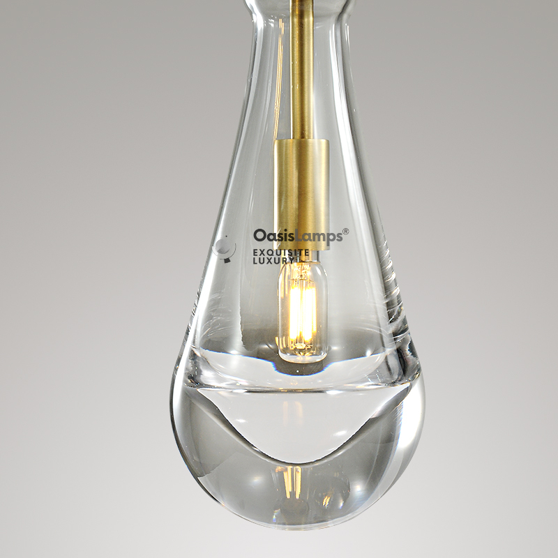 | Each weighty, solid glass raindrop is individually hand blown by a skilled artisan,Ceiling canopy and fittings are crafted from solid brass Handblown glass may reveal the artisan's touch in the form of small air bubbles or a slightly asymmetrical form. These are typical of a one-of-a-kind, handcrafted work of art. |