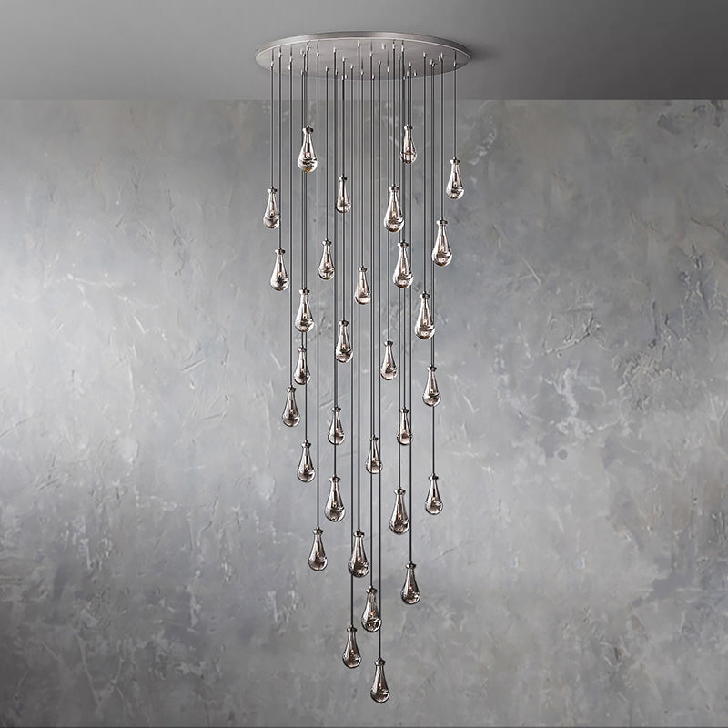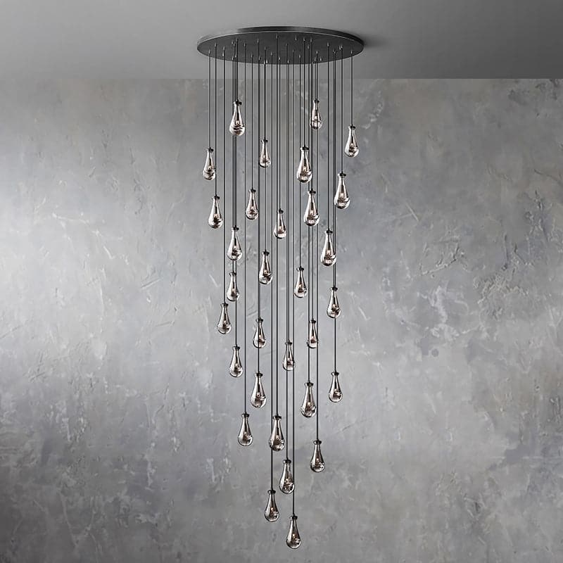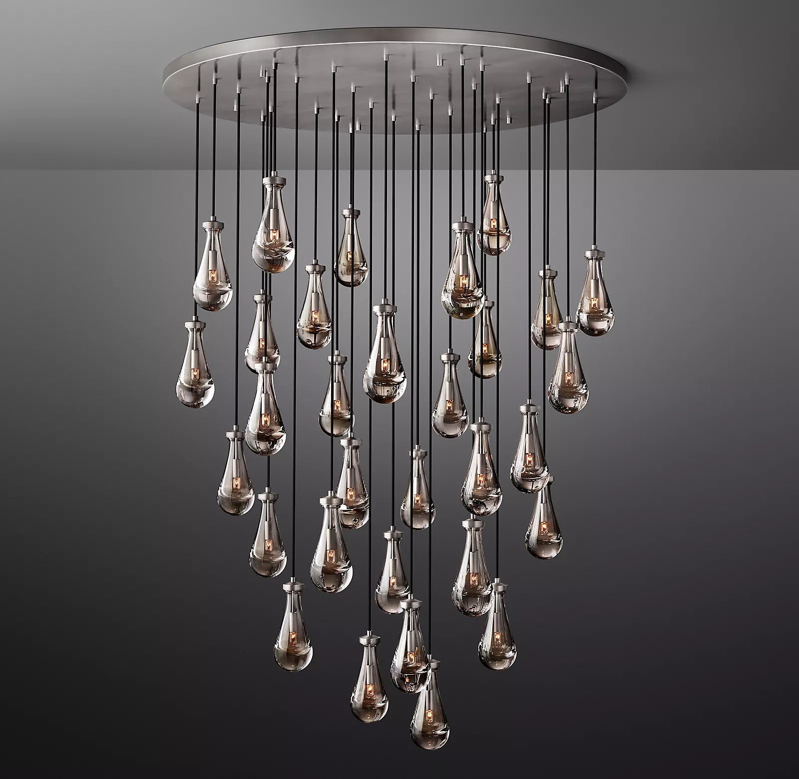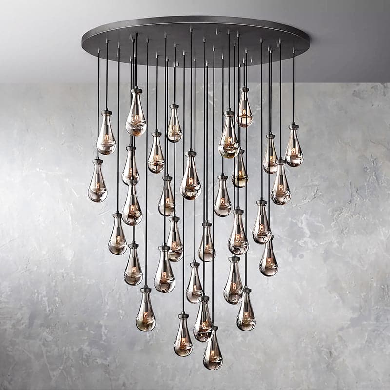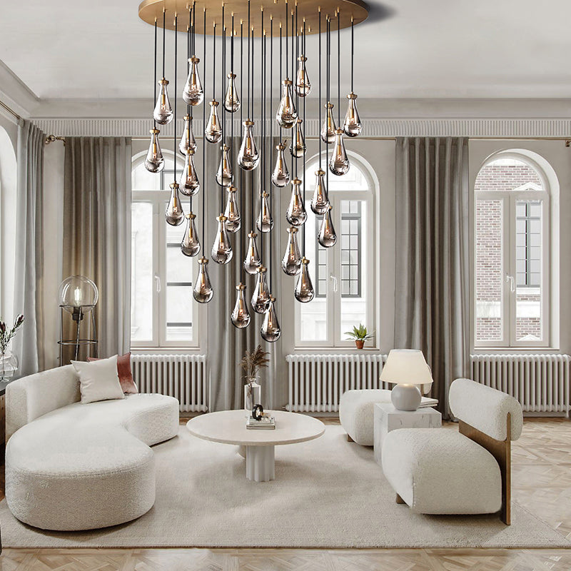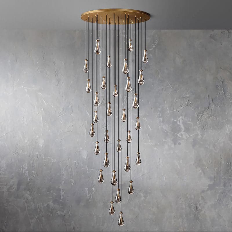 Each exquisite raindrop glass pendant combines high-quality copper elements to show luxury. Each raindrop pendant is carefully blown by workers with many years of manual experience. Ceilings, ceilings and fittings are made of solid brass. The transparent raindrop pendant reflects the warm light. It highlights the elegance and temperament of this chandelier.