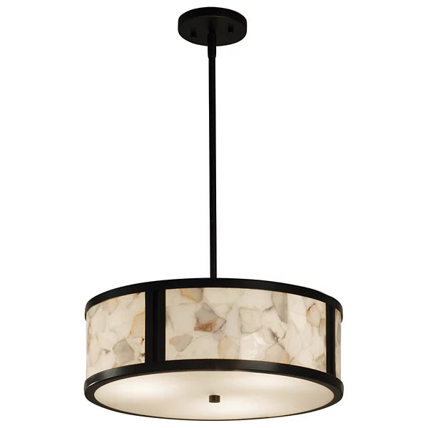Drum roll, please! With its authentic Alabaster Stone shade and sophisticated design, the Alabaster Rocks Tribeca Drum Pendant deserves star treatment. Give it a solo performance above the dining room table, kitchen nook or in the foyer. Dimmable to create the perfect ambience in your living spaces.
