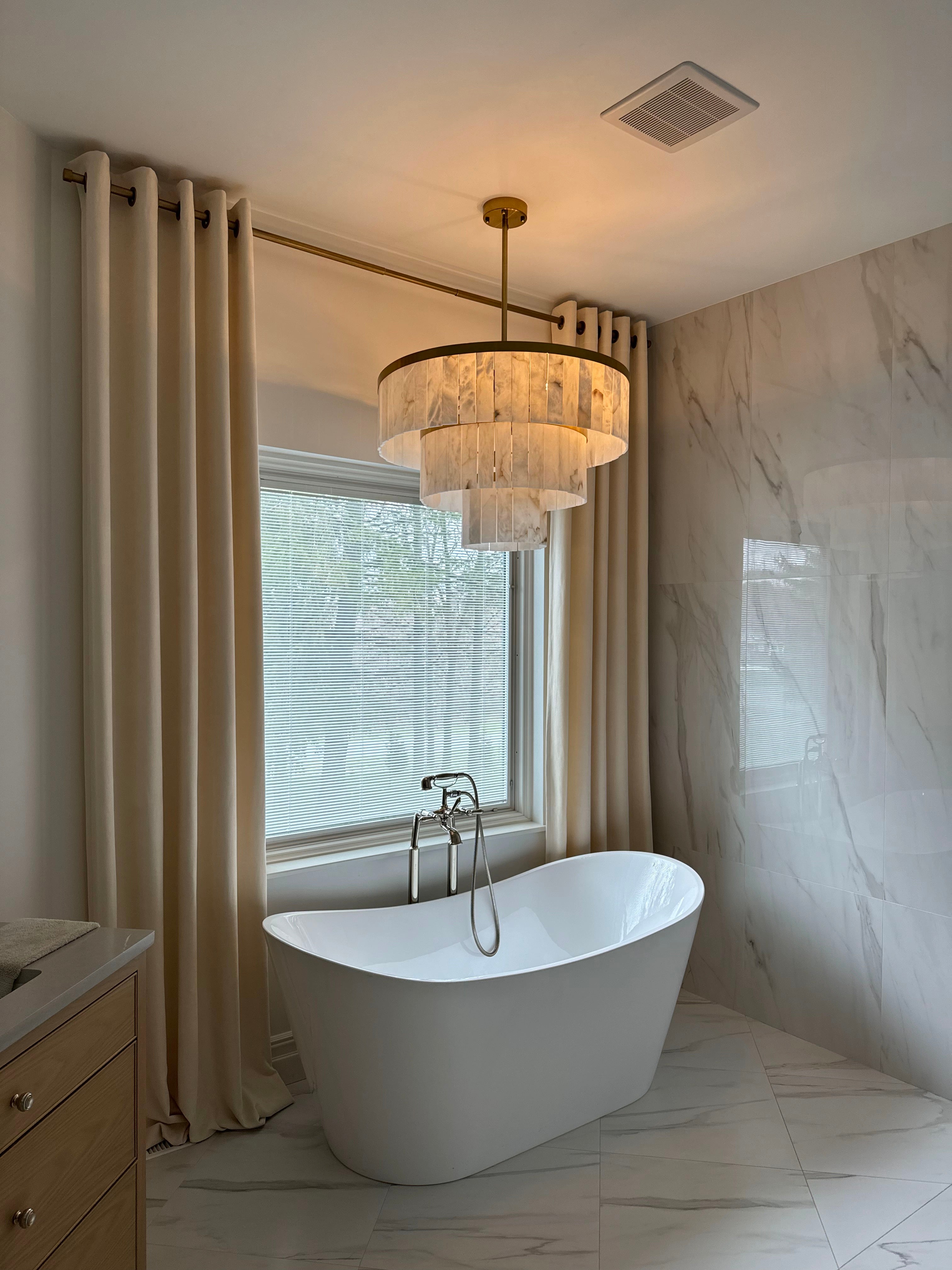 The round chandeliers for bathroom is made of natural marble, each piece of which is imported from Spain.
