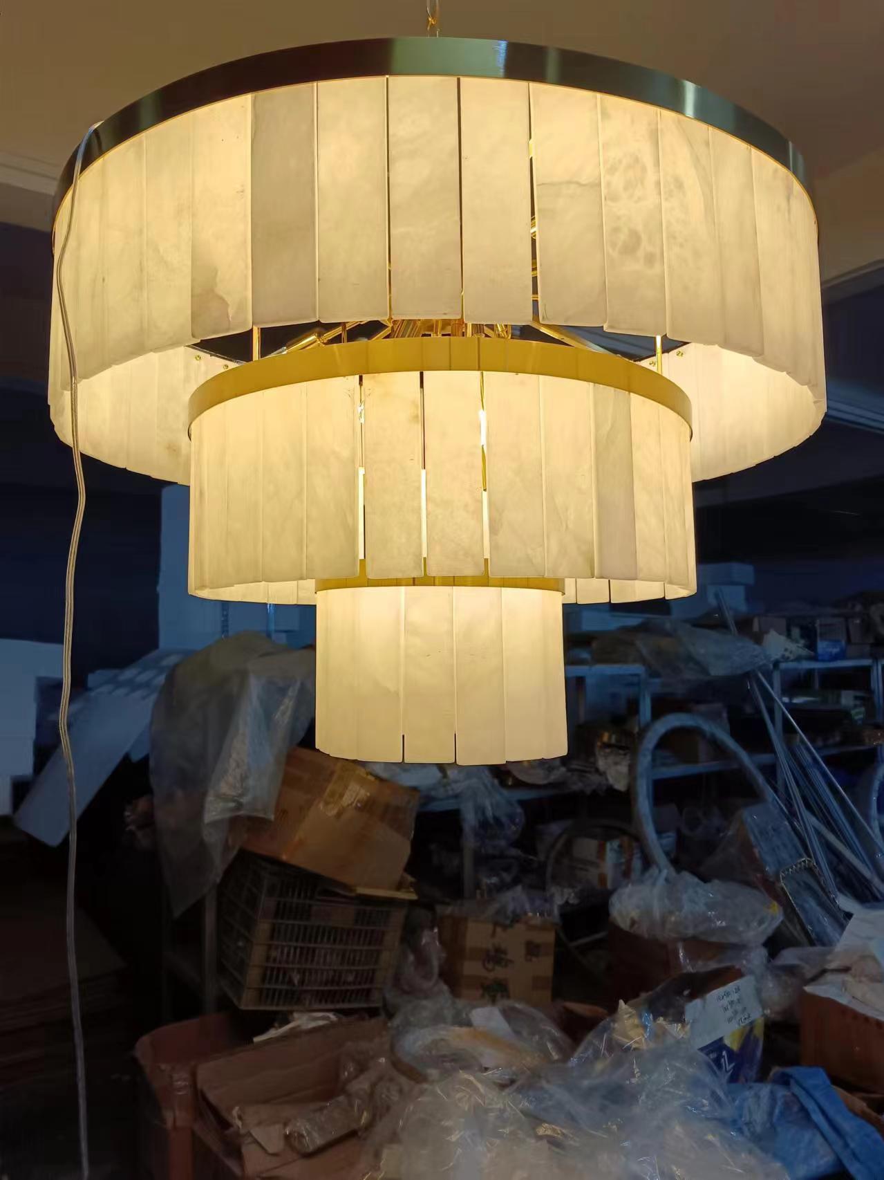 The alabaster dining room chandelier is designed with 3 layers of round marble, simple and exquisite.