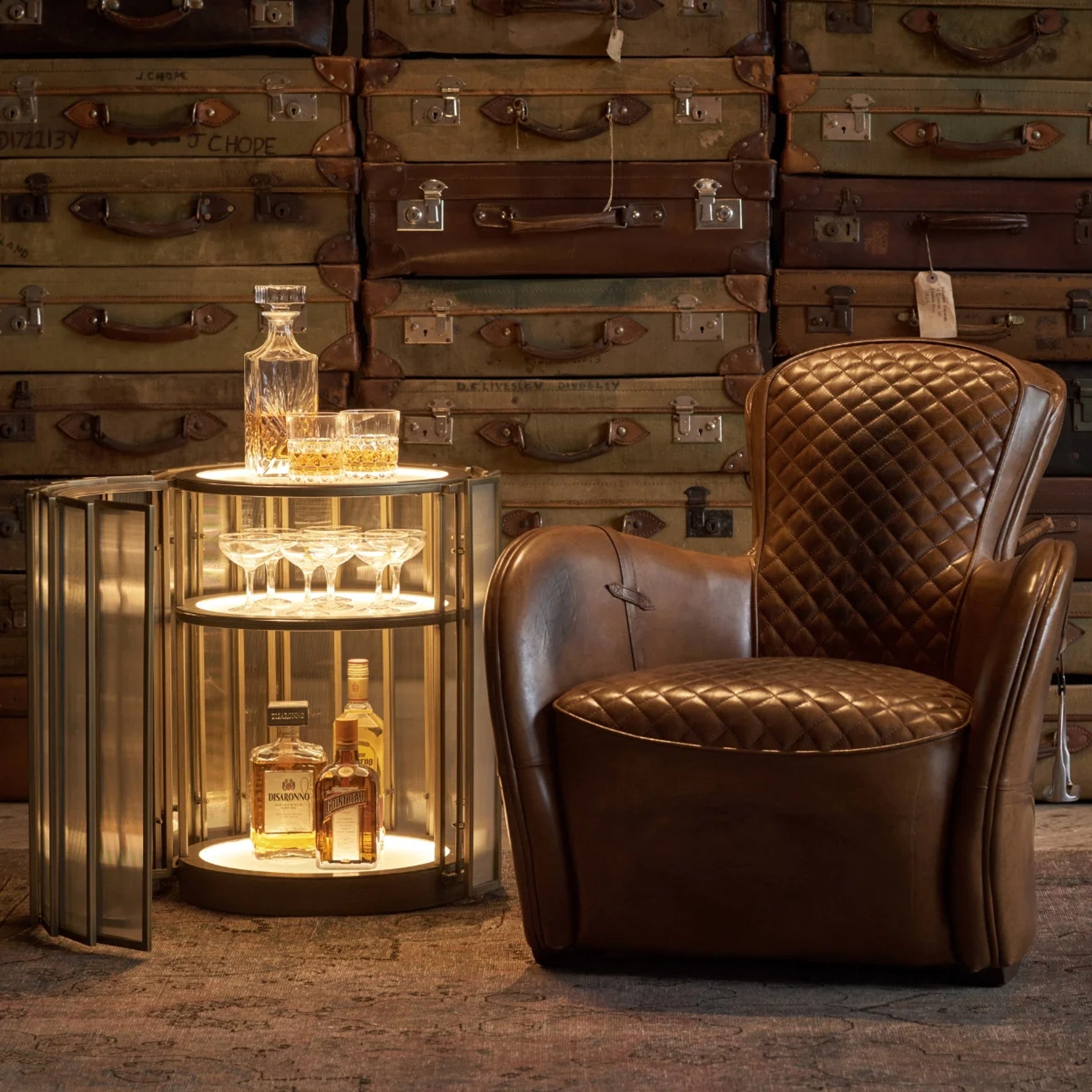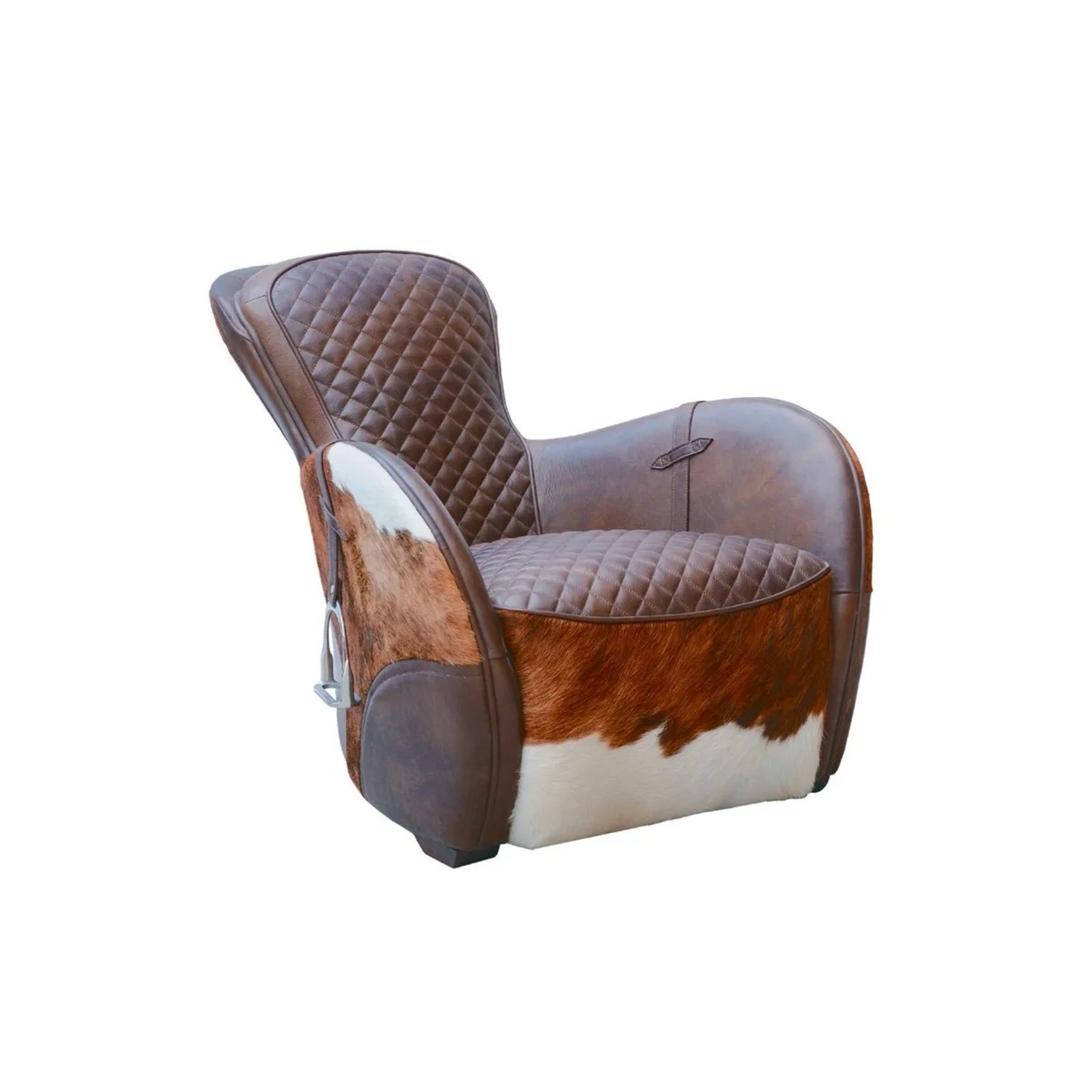 Designed with luxurious quilting and actual stirrups on each side, this leather chair is truly one-of-a-kind.| Inspired by the heritage of equestrian pursuits, the Saddle Chair captures the spirit of freedom and the strength embodied by a saddle. Complete with actual stirrups on each side, the sleek, dynamic shape is made with a fibreglass frame and the chair's back is contoured to mimic the silhouette of a real saddle. Upholstered in Timothy Oulton's hand-distressed aniline leather, it has quilted detailing on the seat and back for added comfort and a plush finish.