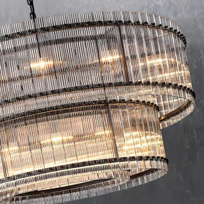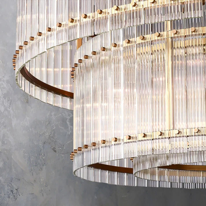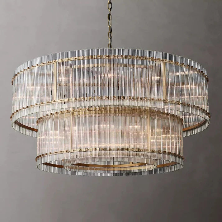 Introducing the San Marco Handmade Glass 2-Tier Round Chandelier, a luxurious centerpiece for any room. Handcrafted with exquisite attention to detail, this 60" chandelier features stunning San Marco glass and a two-tier design for a truly elegant display. Illuminate your space with this exclusive and sophisticated piece.