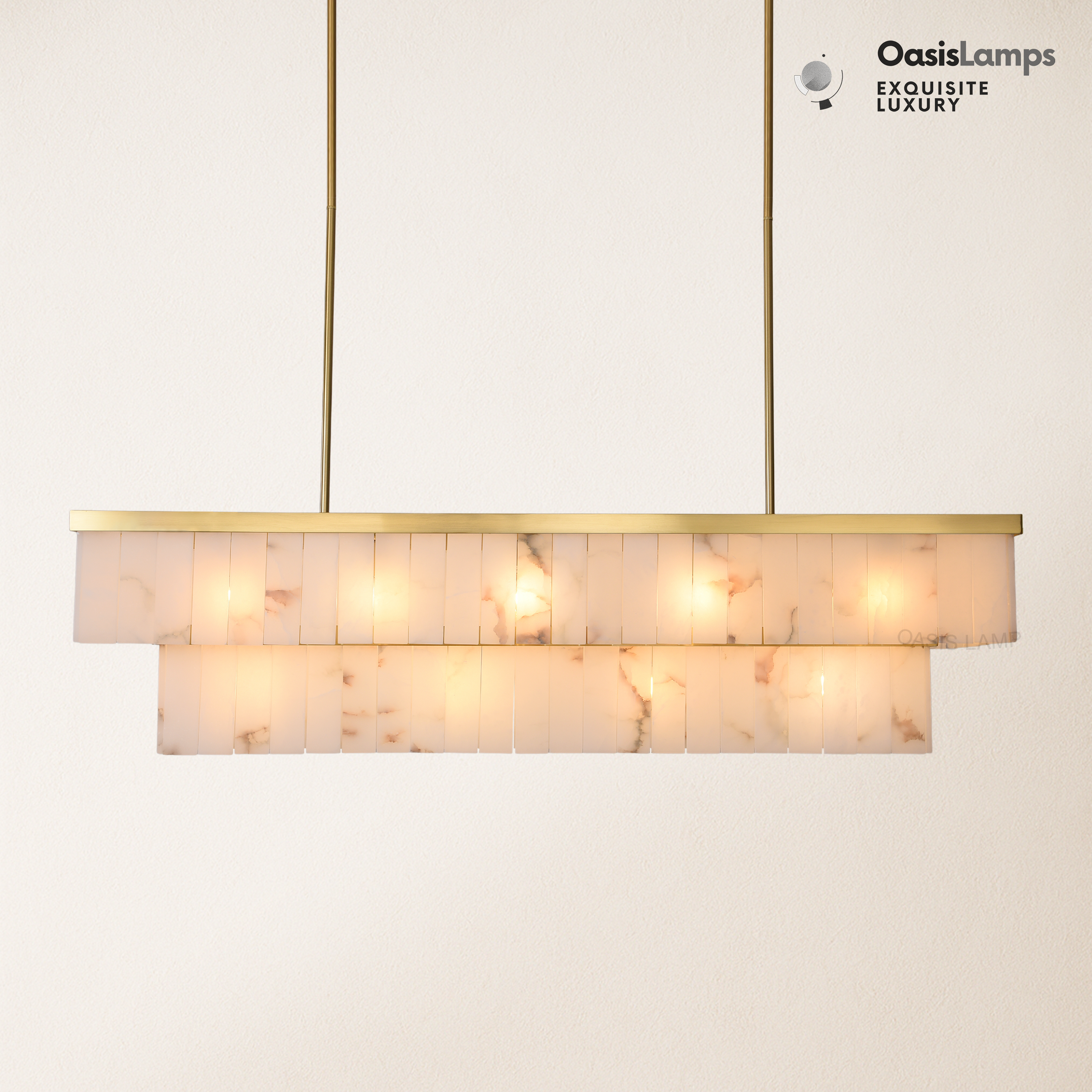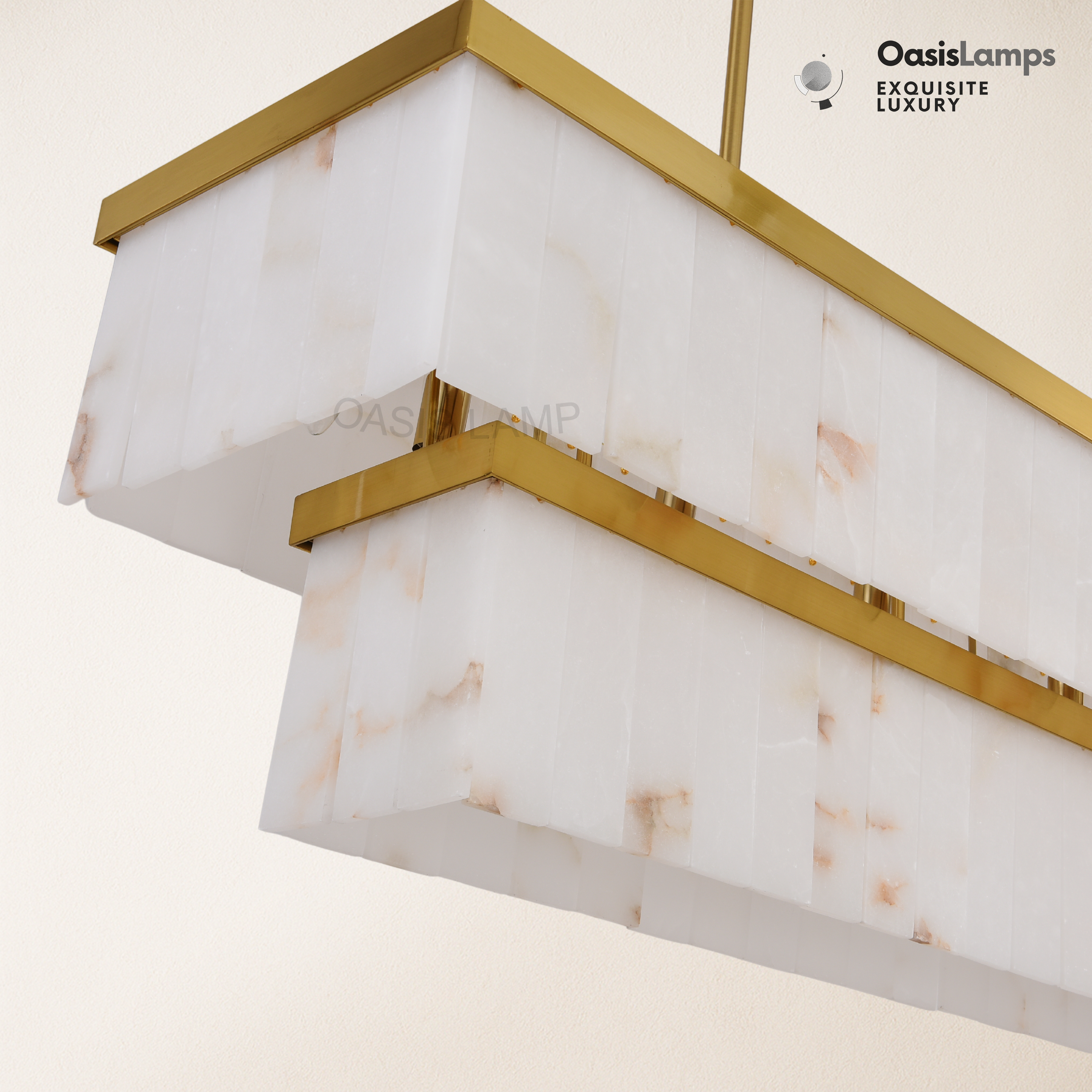 The alabaster dining room chandelier is designed with 3 layers of round marble, simple and exquisite.
