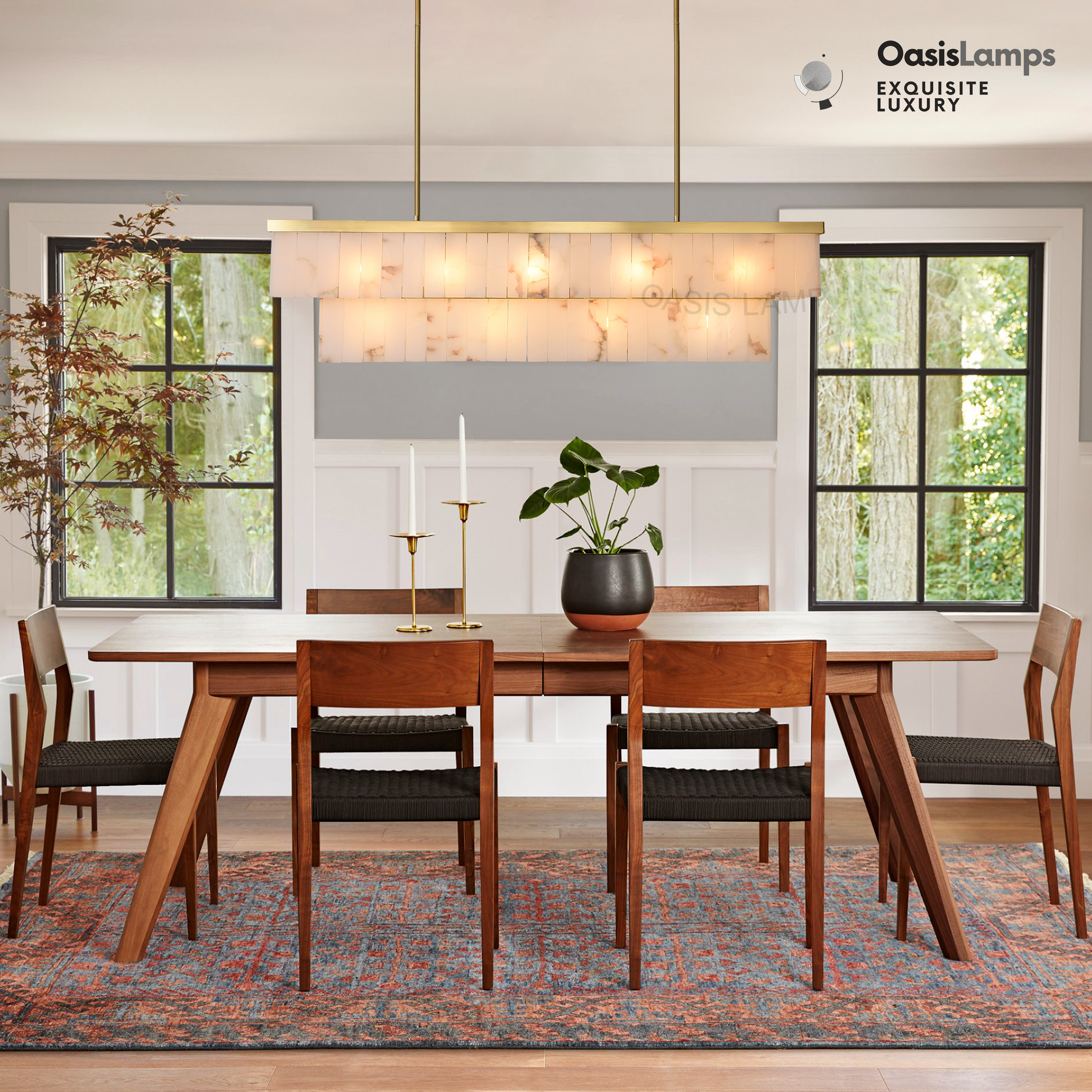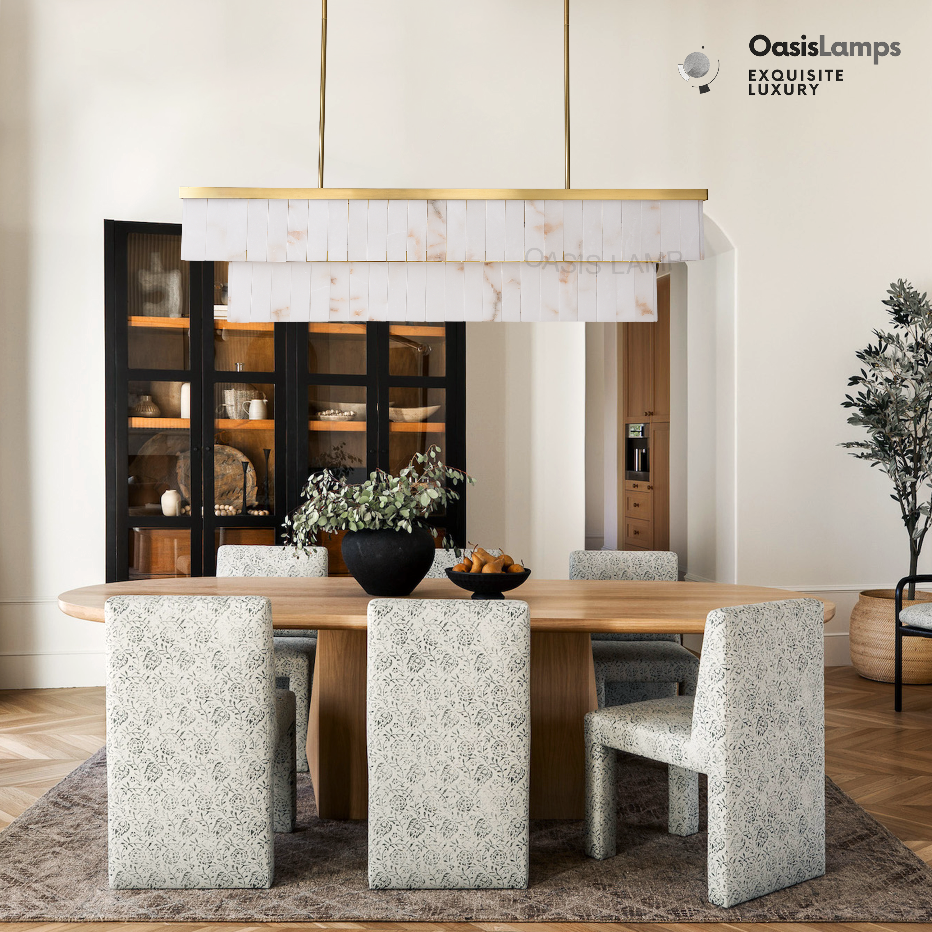 The gold alabaster chandelier for Dining Room is dimmable and can be infinitely dimmed from 0-100% with a dimmer (not included).