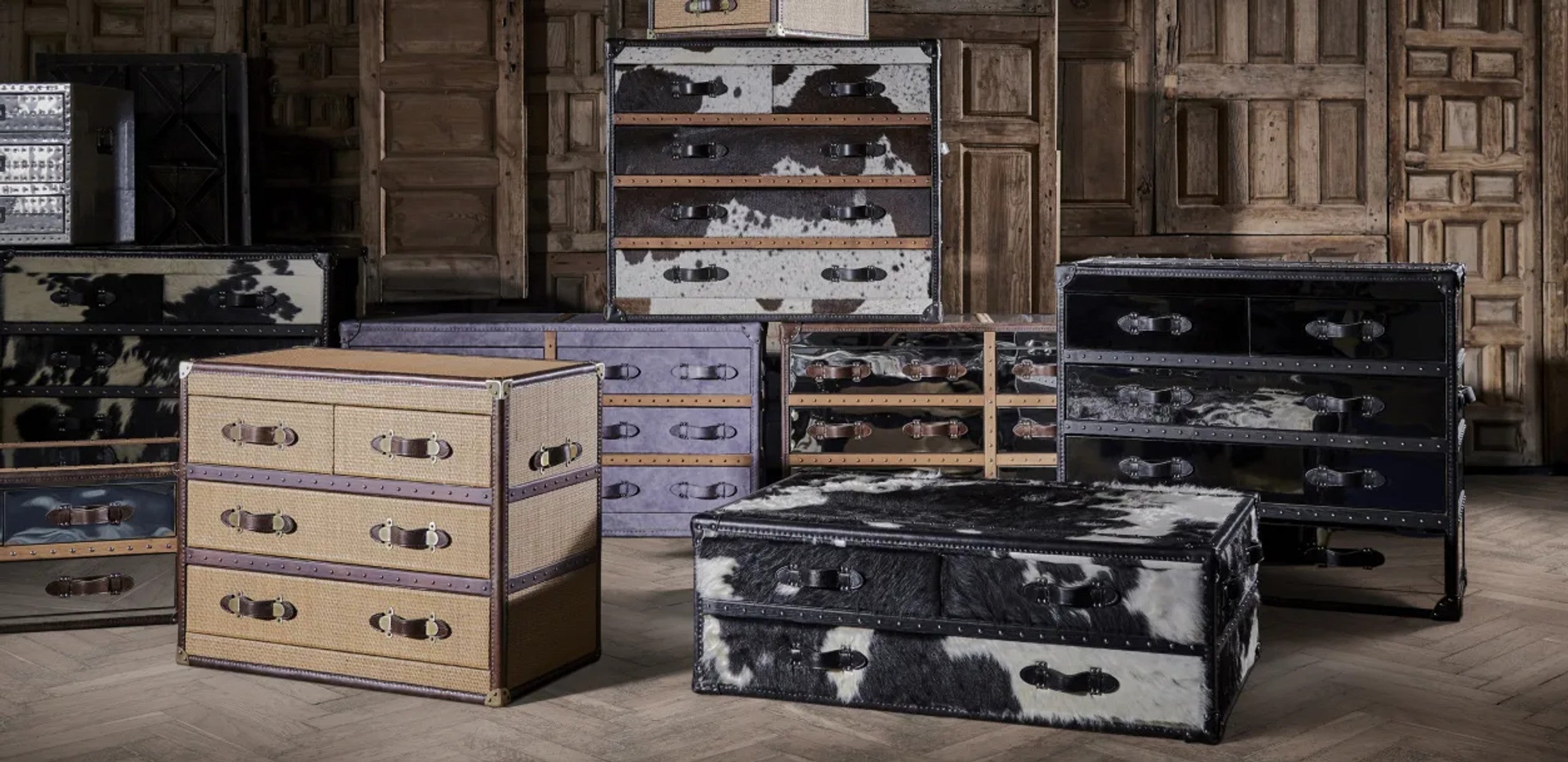 Stonyhurst College was founded in 1593 and remains one of the UK's most prestigious boarding schools. An adaptation of the Ampleforth collection, Stonyhurst similarly transforms Timothy Oulton's travel-inspired trunks into functional furniture. While preserving all the hallmarks of traditional craftsmanship in its construction and detailing, the collection experiments with a range of innovative finishes, including the celebrated Spitfire finish. Unlike the Ampleforth, the Stonyhurst does not include a lift-up lid. All leather finishes plus the Shiny and Black Steel options and Oxidized Solid Brass all come with wooden banding. Both the Spitfire and Aero finishes come without any banding.